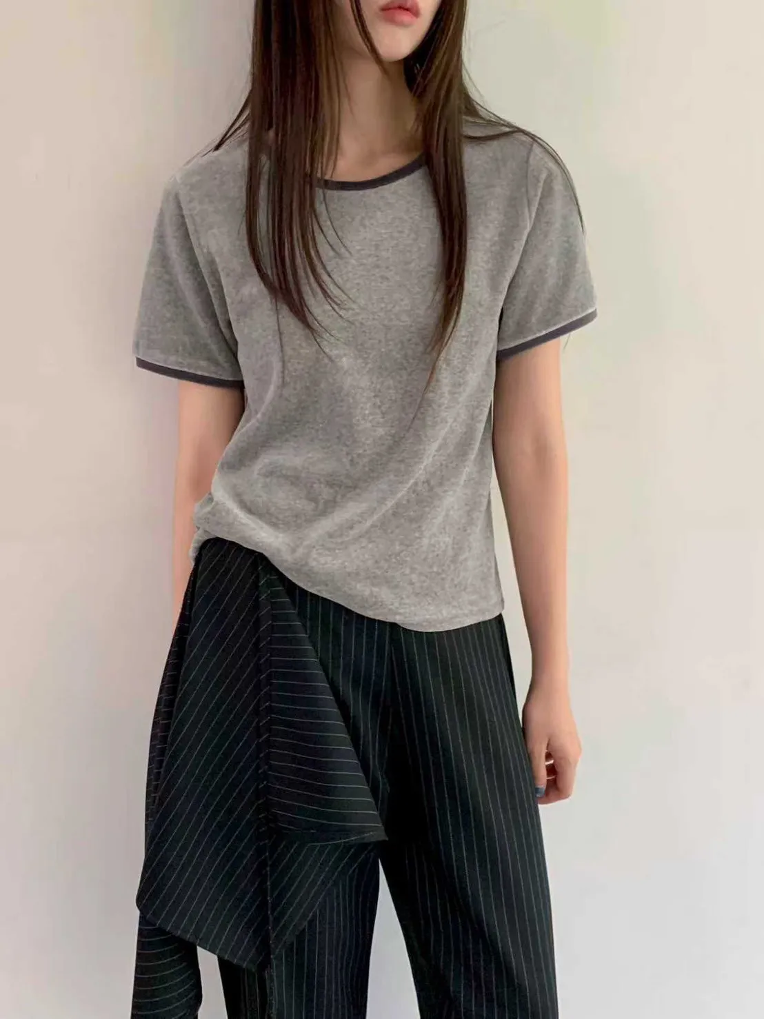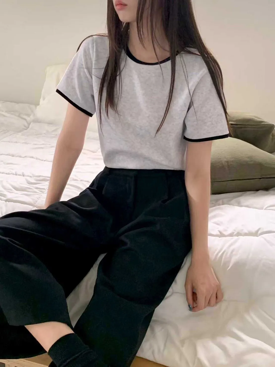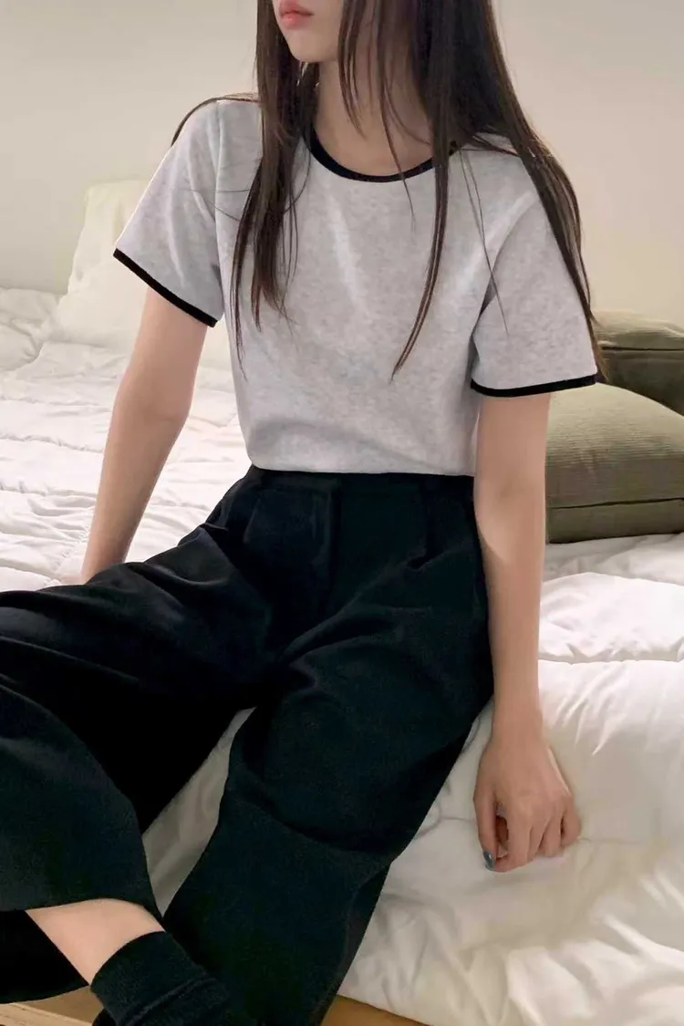 CY269滾邊跳色短袖Tshirt(滾邊分色) 灰 黑 奶茶 官網價$360 線上價$330
