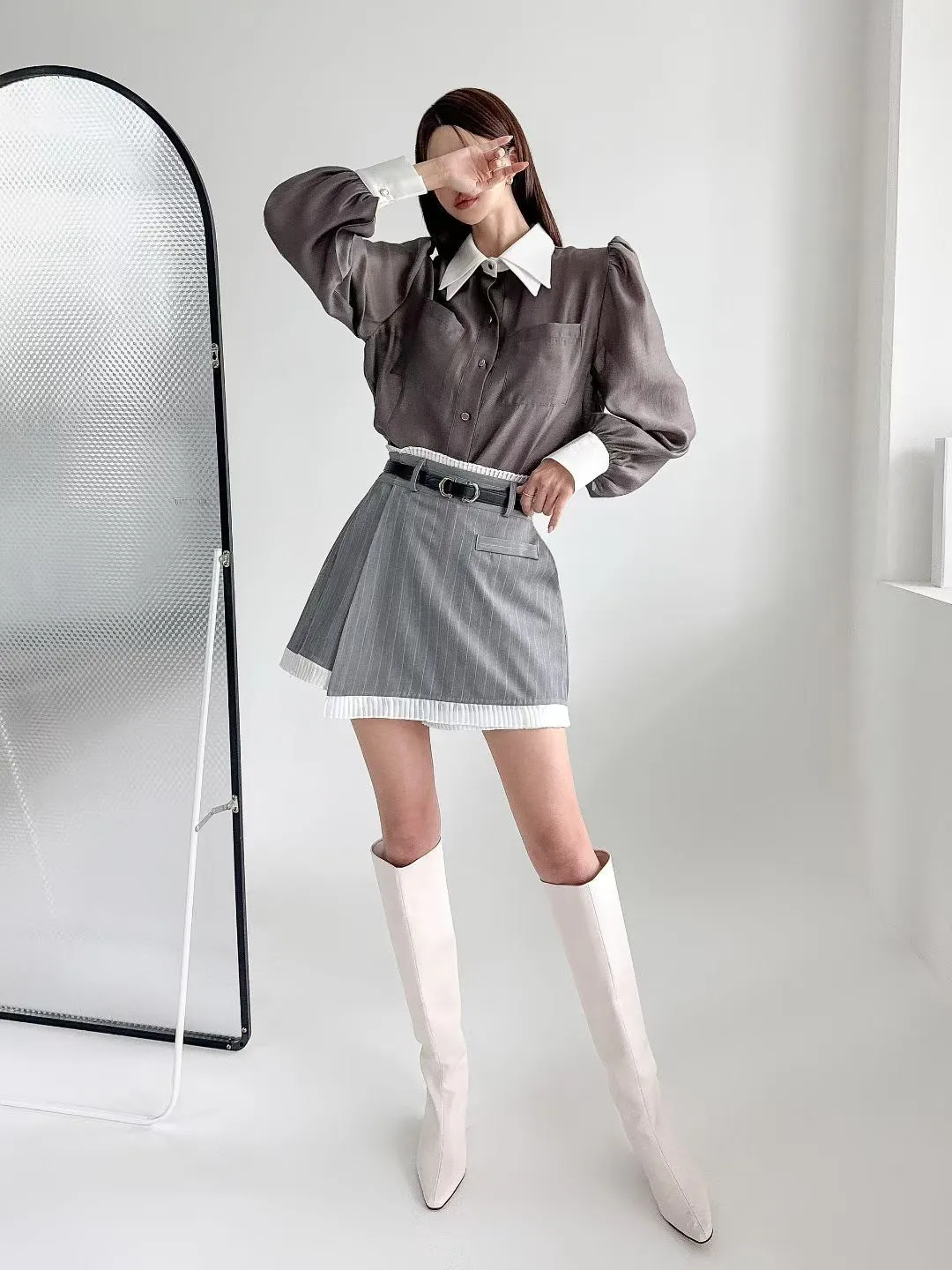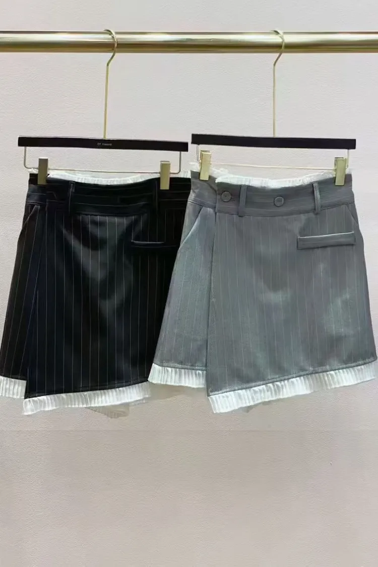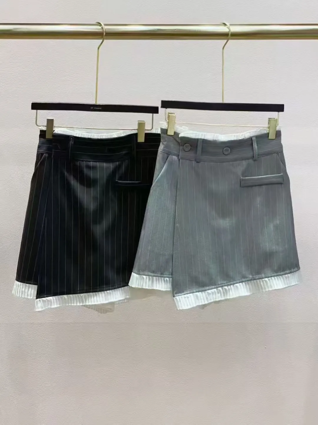 西裝面料 涼感舒適 後腰鬆緊 有口袋 是褲裙 釦鍊穿脫 穿到M號