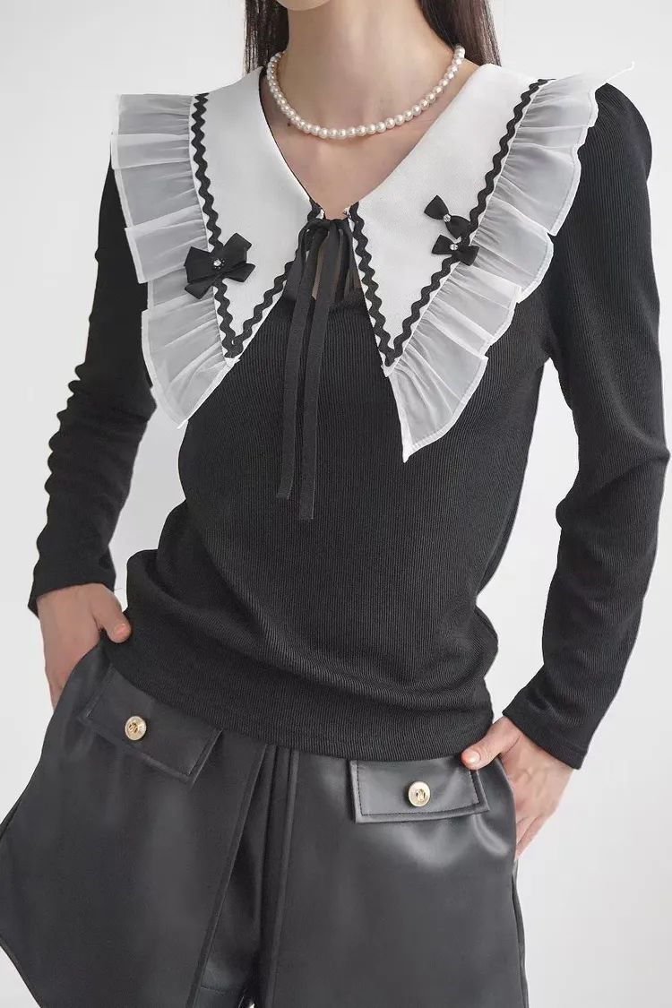 棉+聚酯 薄款滑順 有彈性 胸前透光網紗蝴蝶結綁帶