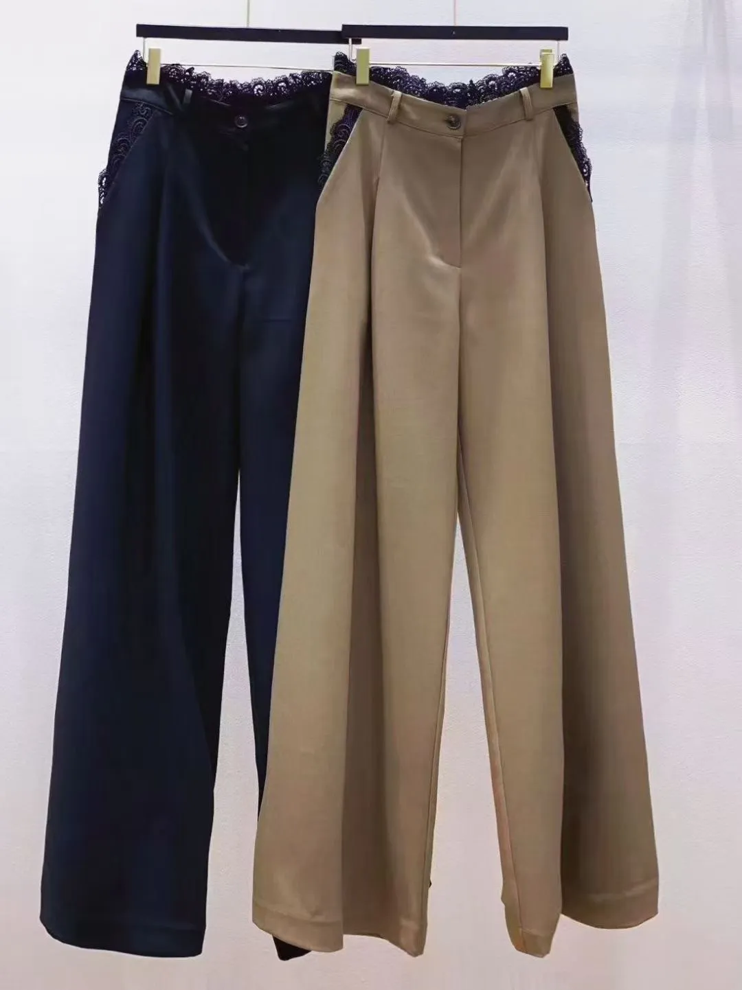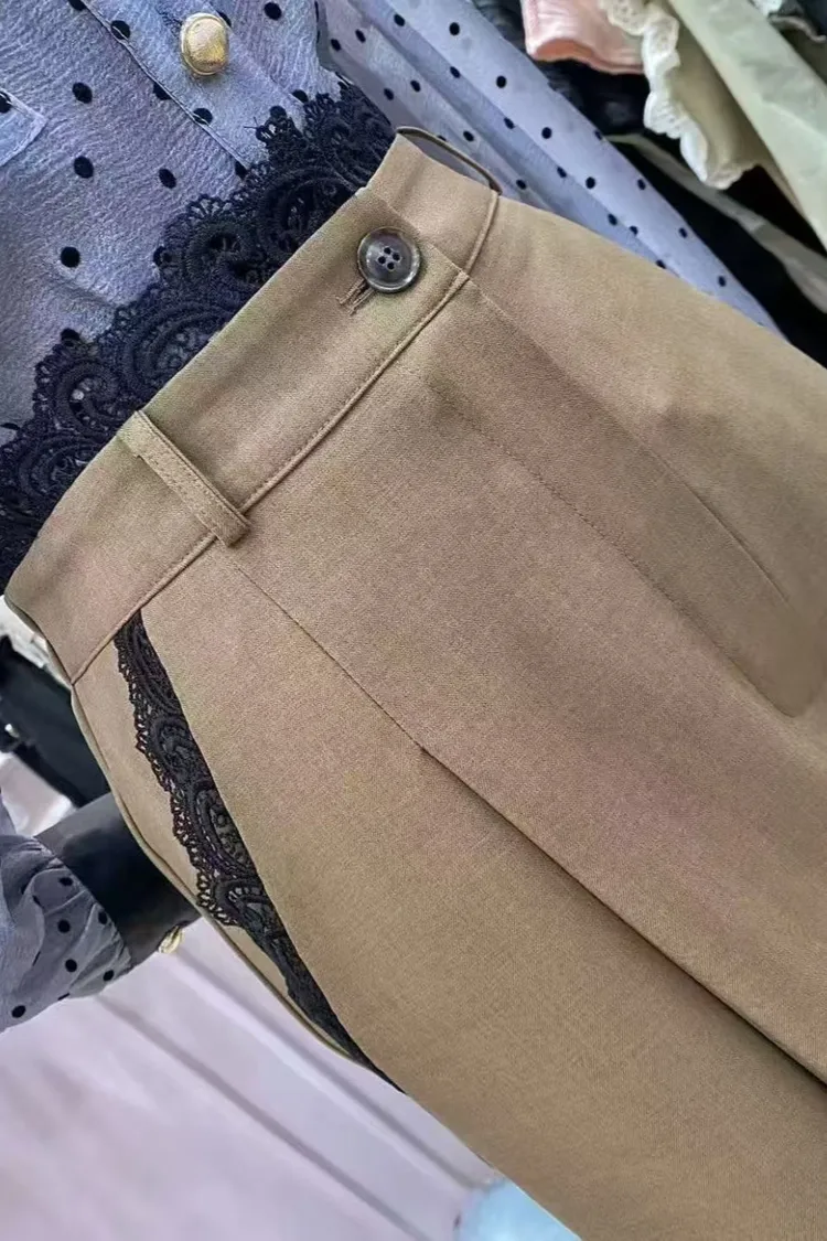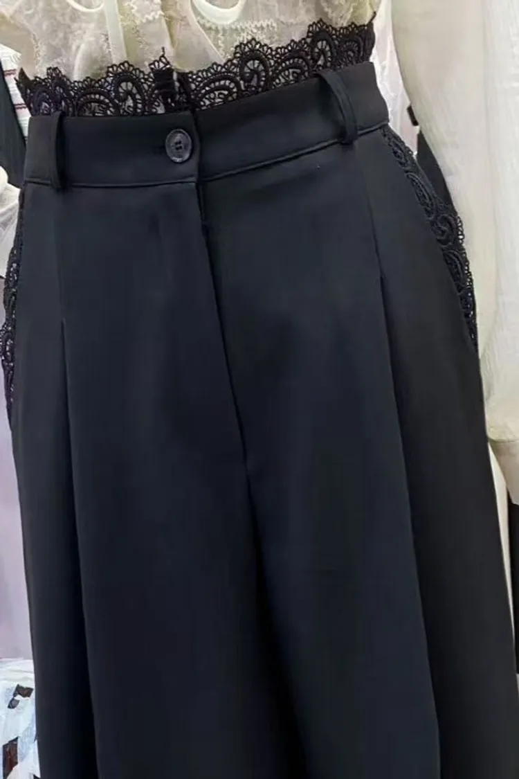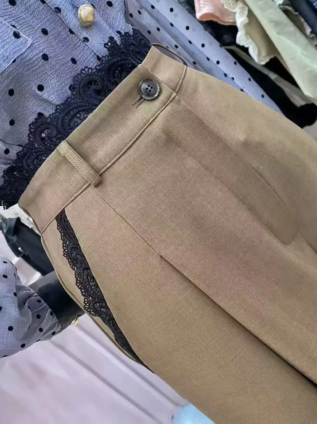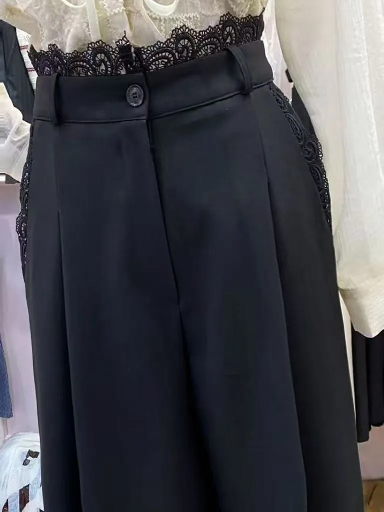 西裝面料+蕾絲 非常薄款 垂墜感很美 釦鍊穿脫 有口袋