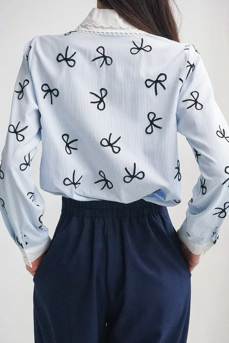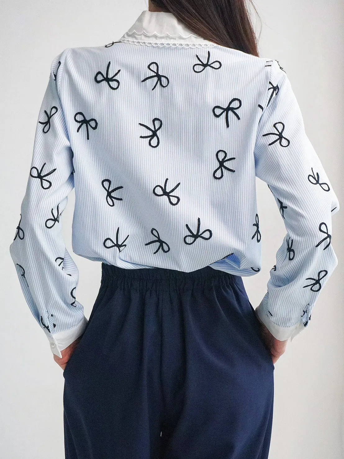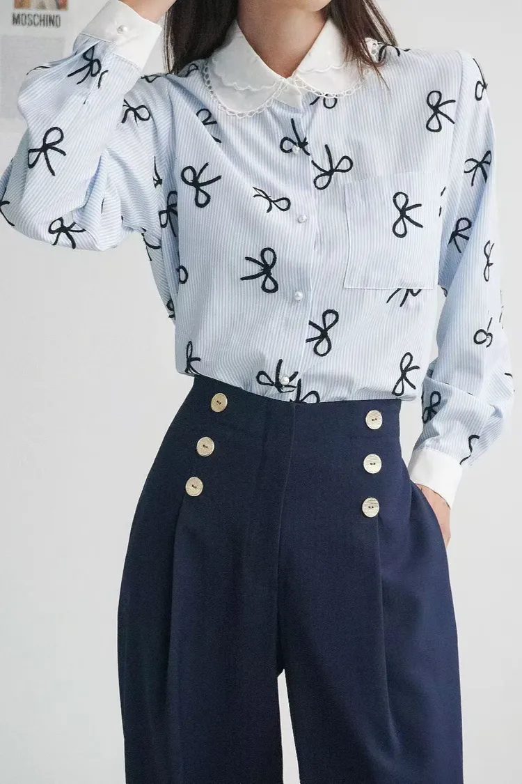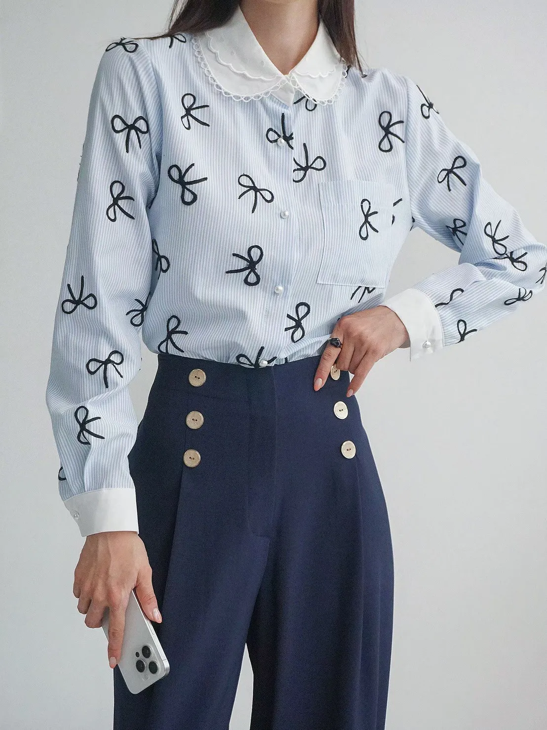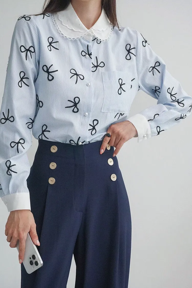 棉+縲縈 蕾絲滾邊翻領 質絨蝴蝶結 珍珠釦