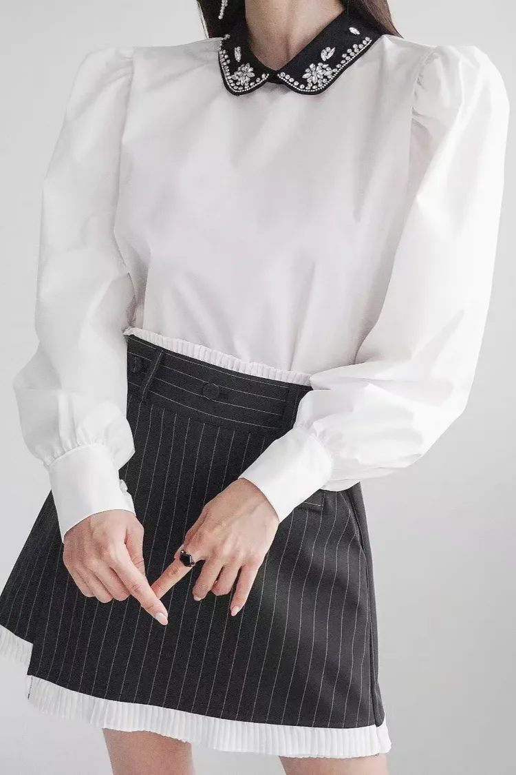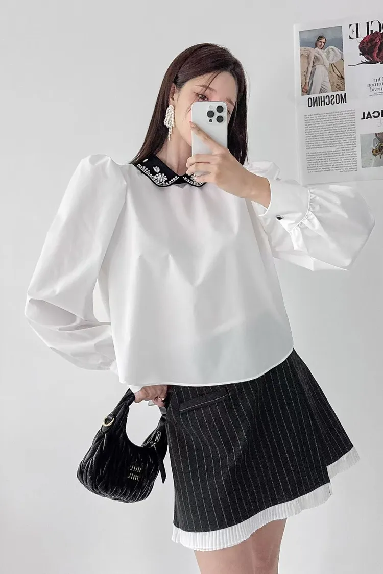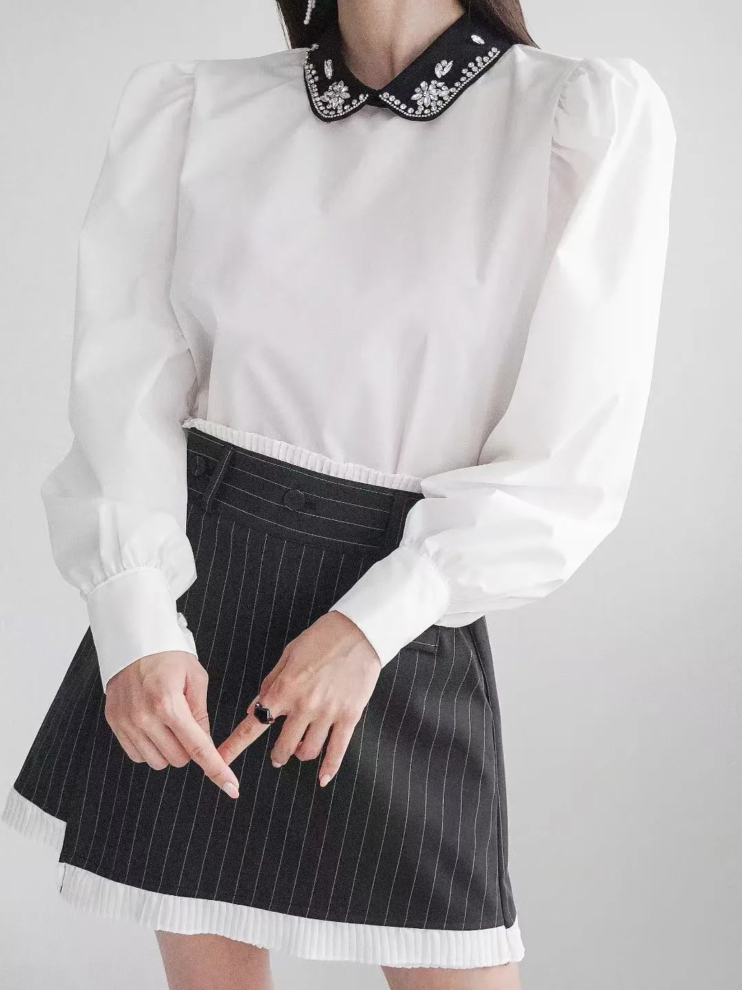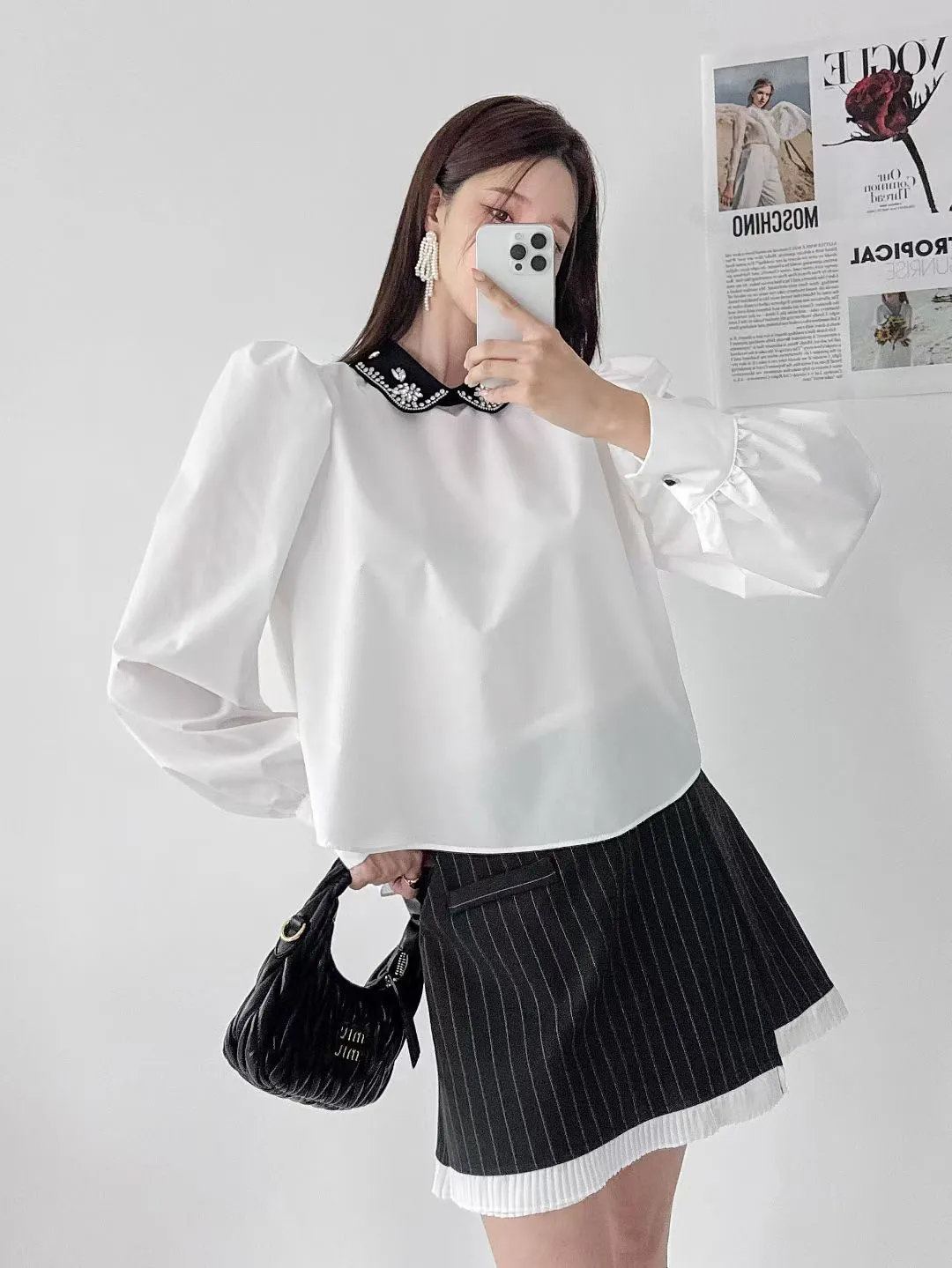 棉 精緻鑲鑽美領 後頸釦穿脫 微公主袖 寬鬆舒適