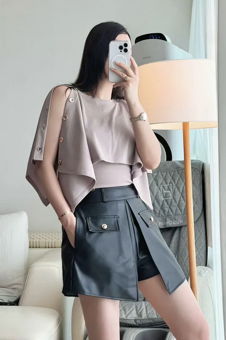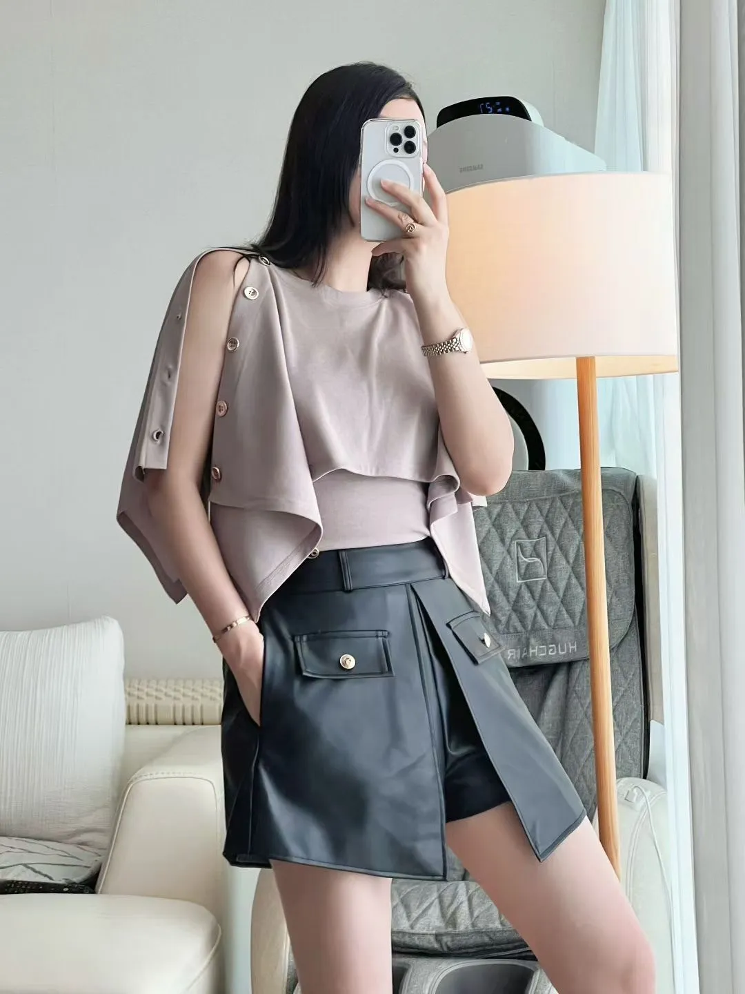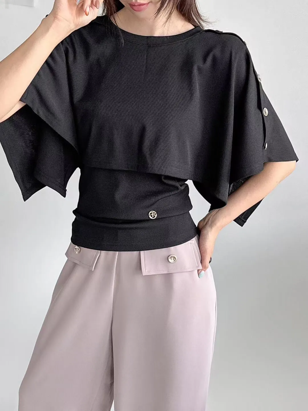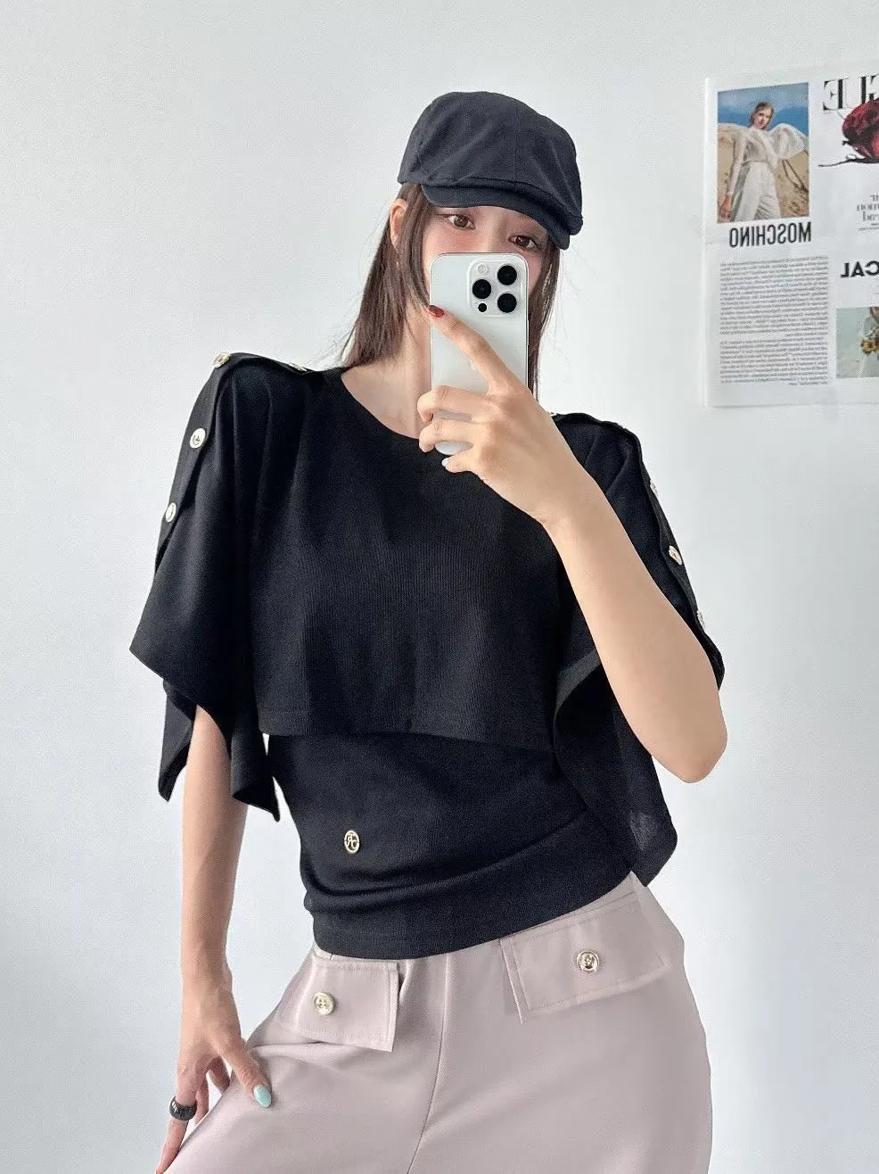 聚酯 類似紗棉觸感 裡面有背心+外面罩衫 有彈性 不易皺