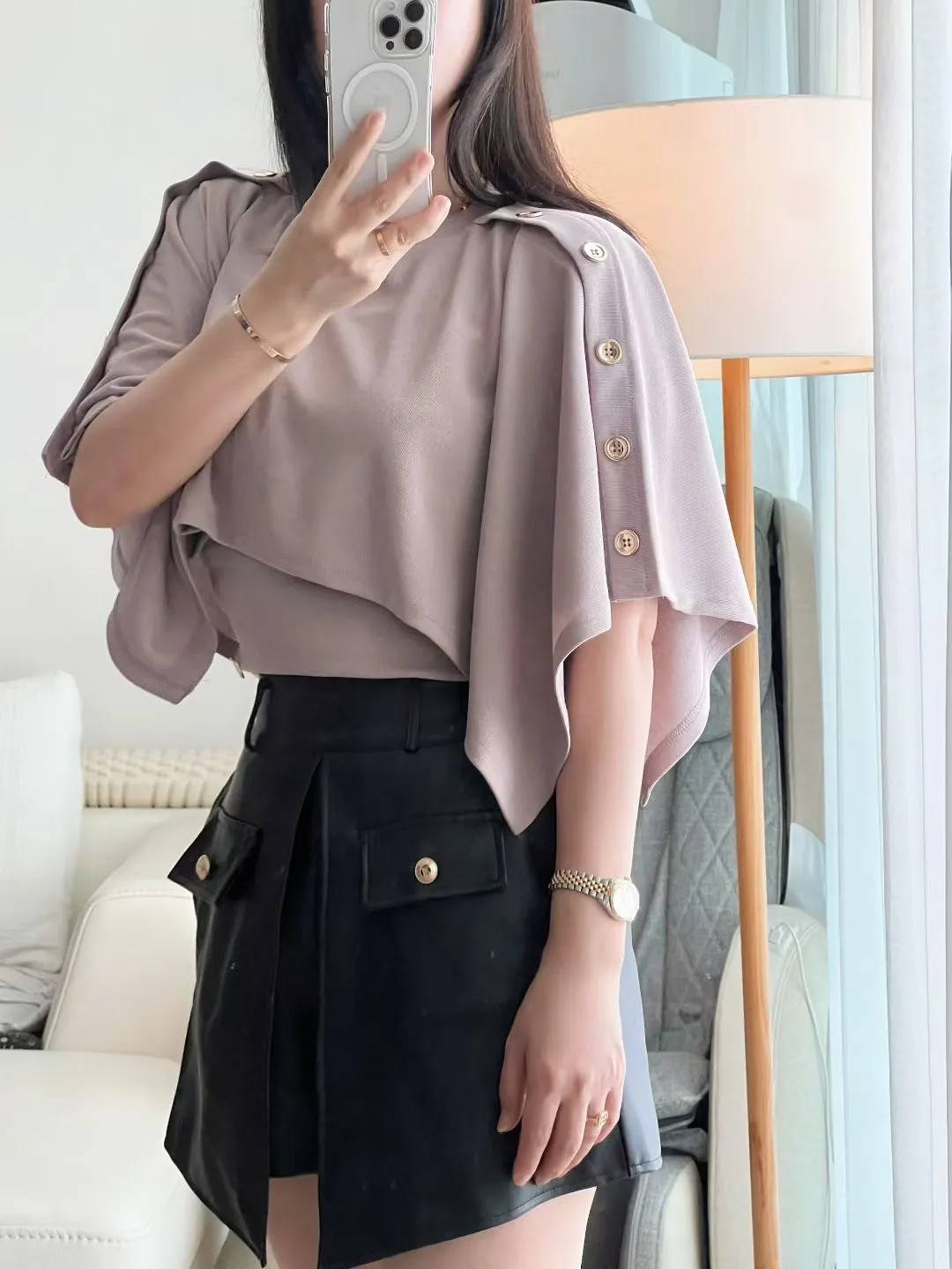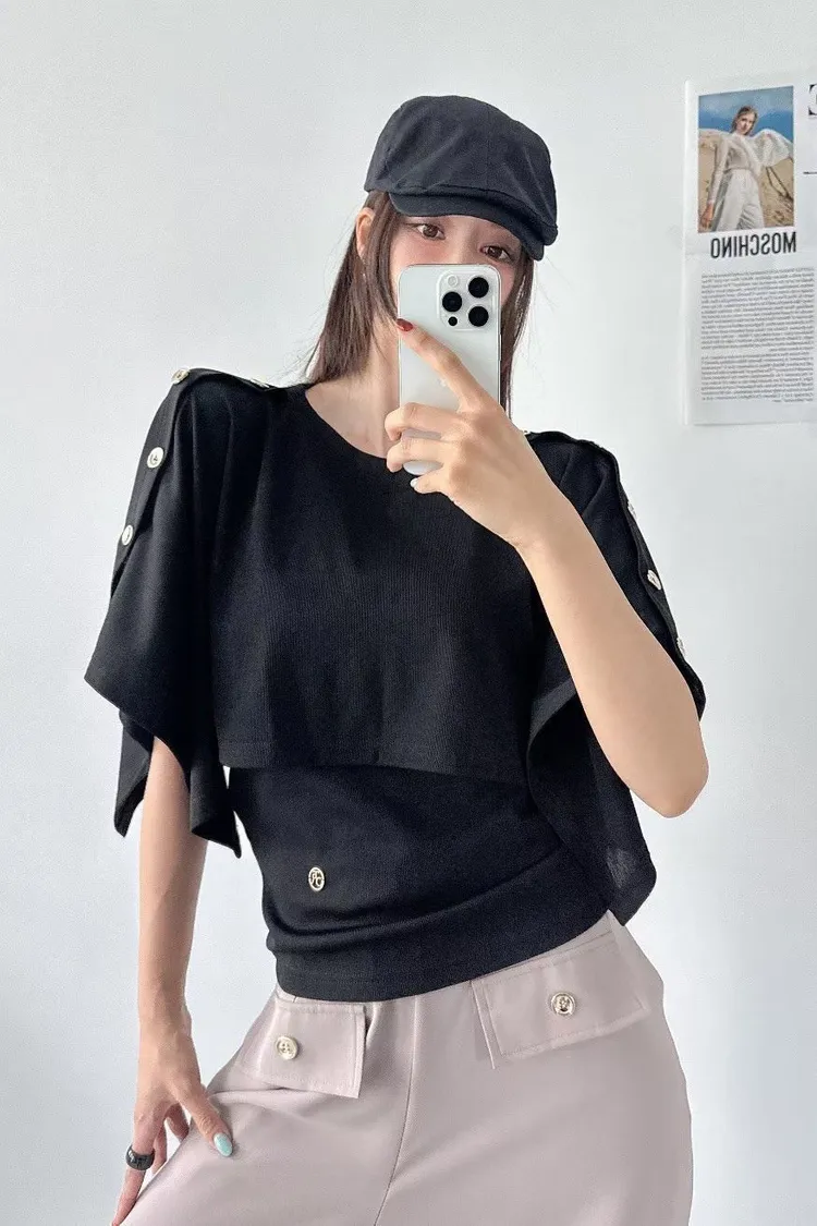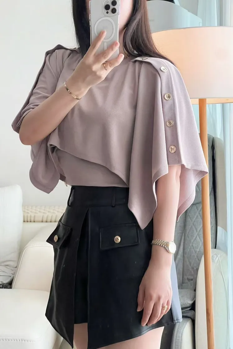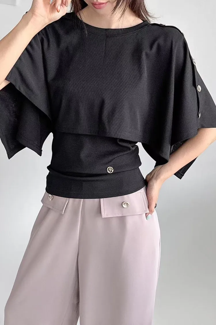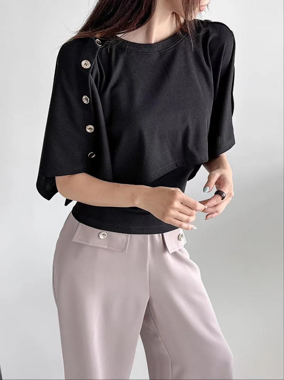 聚酯 類似紗棉觸感 裡面有背心+外面罩衫 有彈性 不易皺