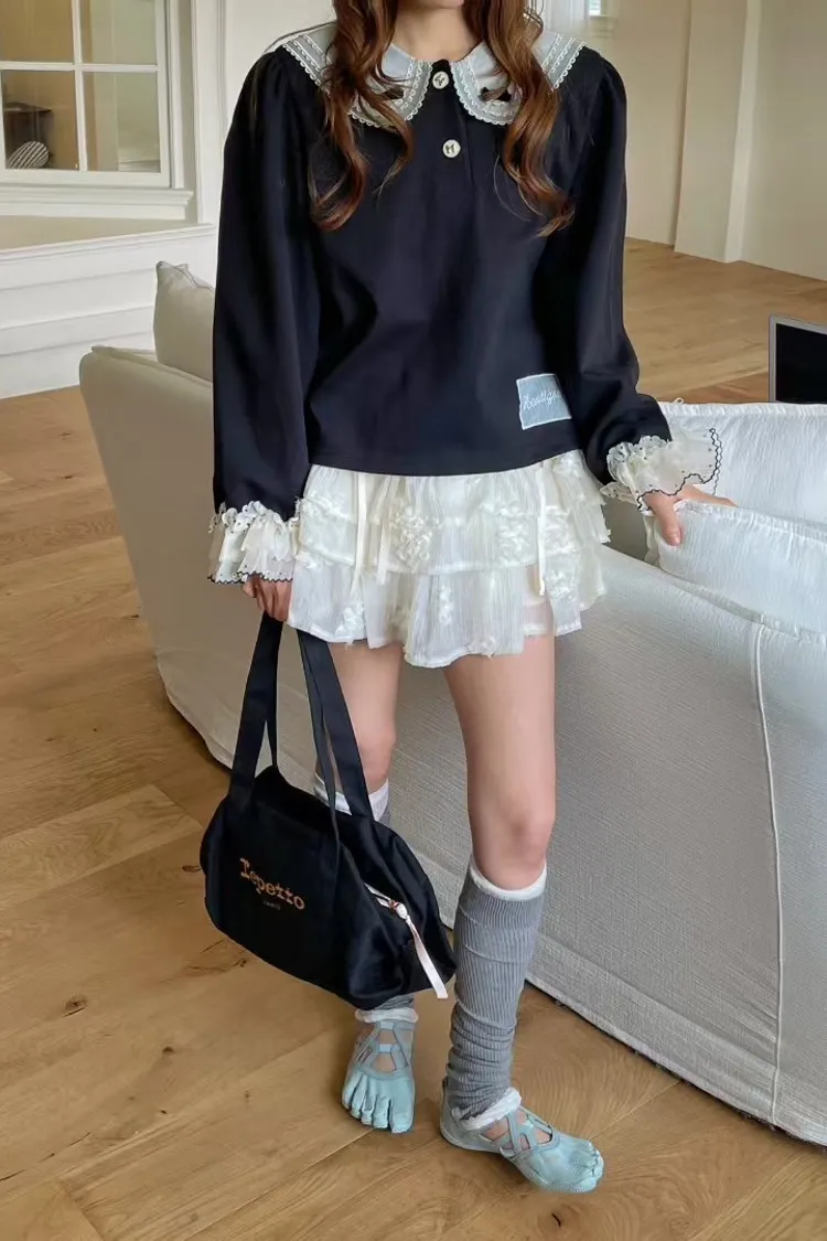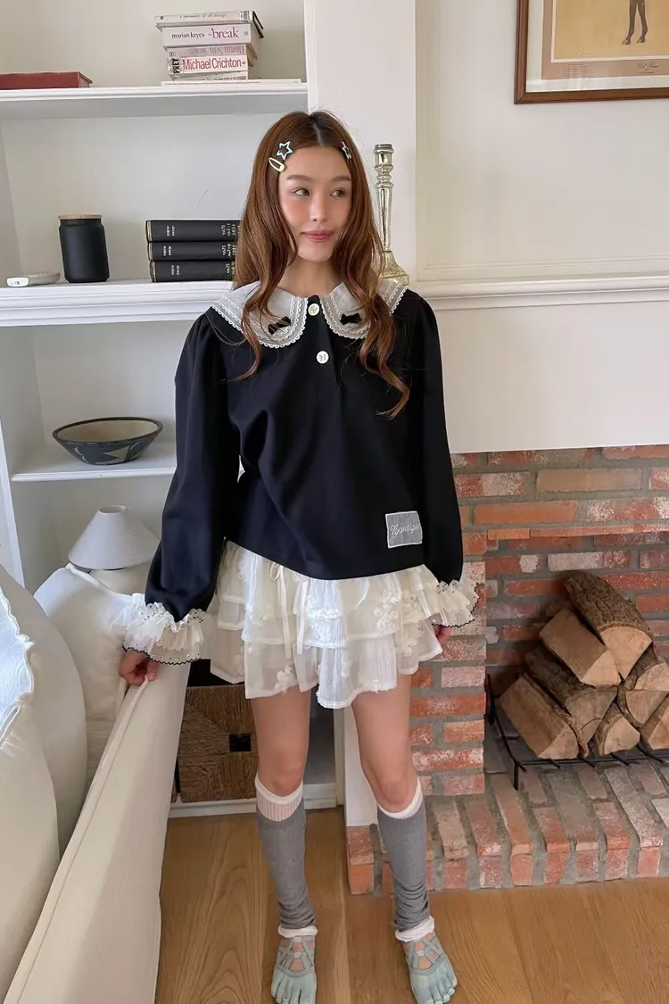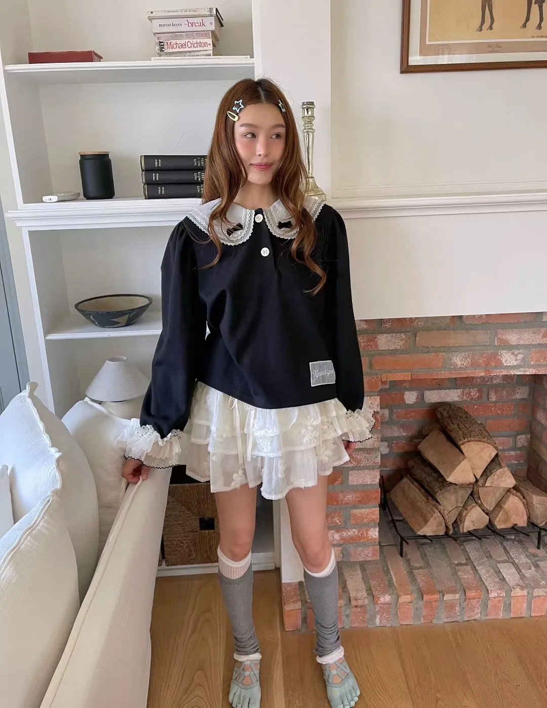 棉,精緻翻領 蕾絲網紗美袖 空間舒適 鋼琴烤漆精緻釦 L號友善