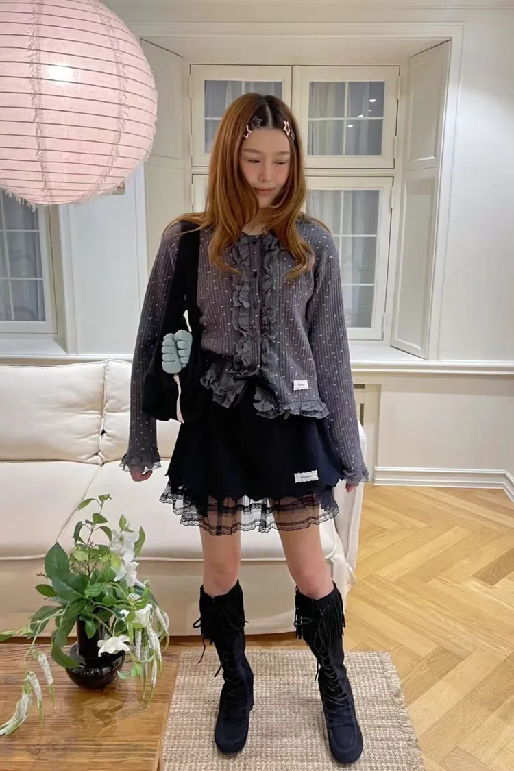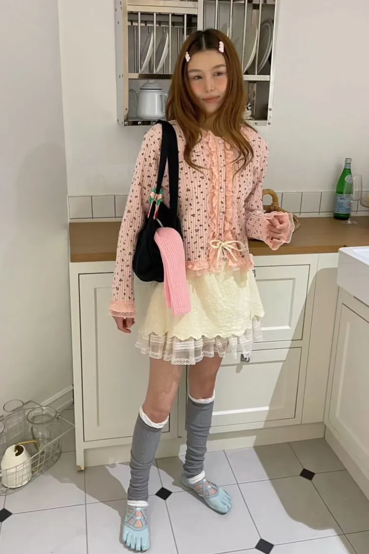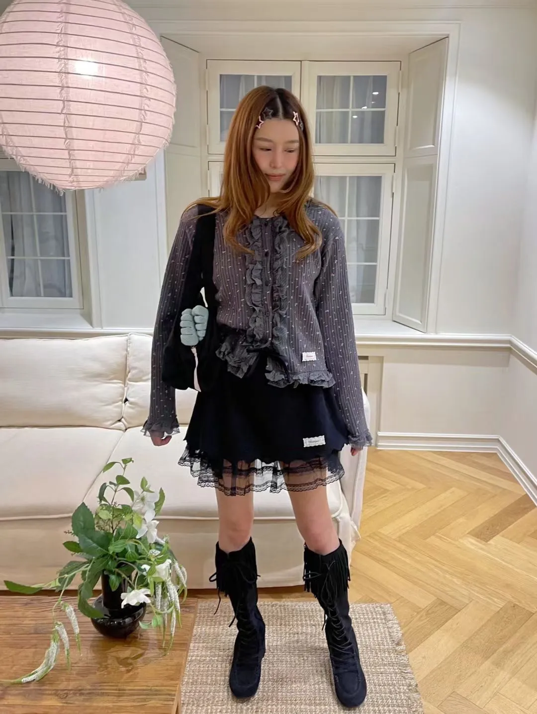 棉+聚酯 親膚坑條棉 柔軟雙層蕾絲手袖 梅花釦 L號友善 秋款厚度