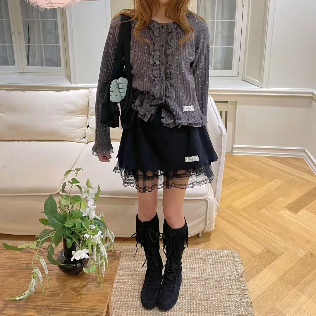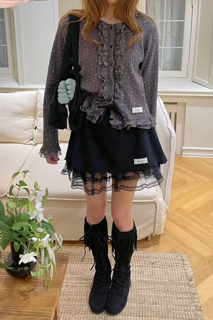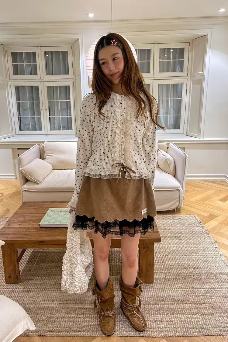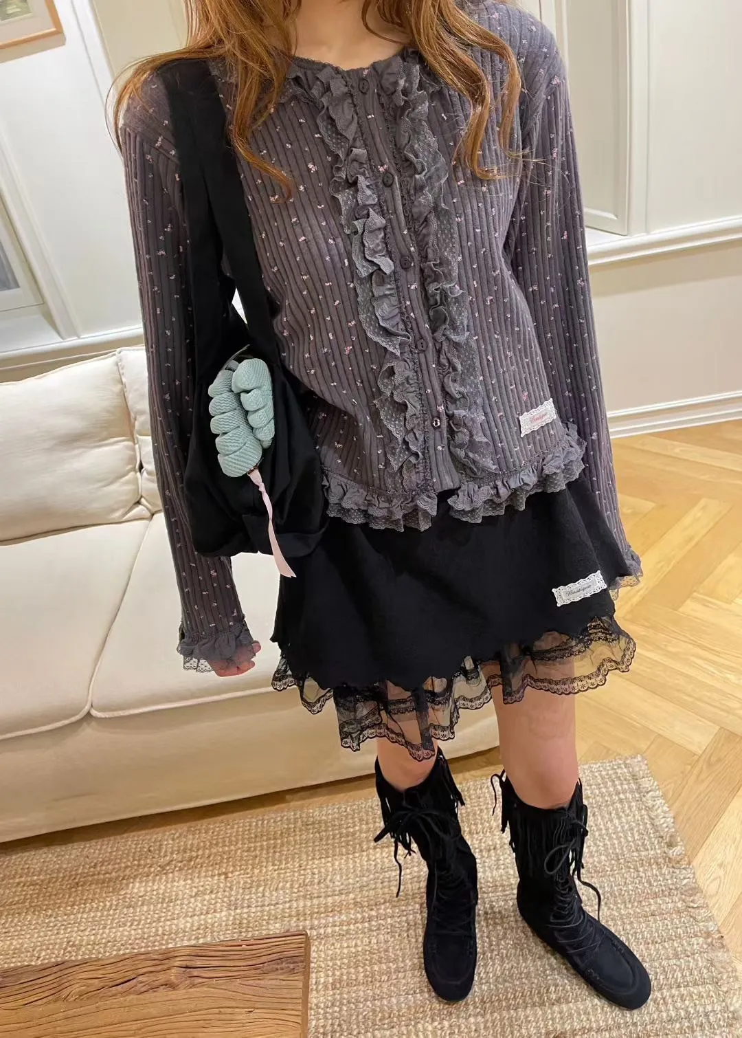 棉+聚酯 親膚坑條棉 柔軟雙層蕾絲手袖 梅花釦 L號友善 秋款厚度