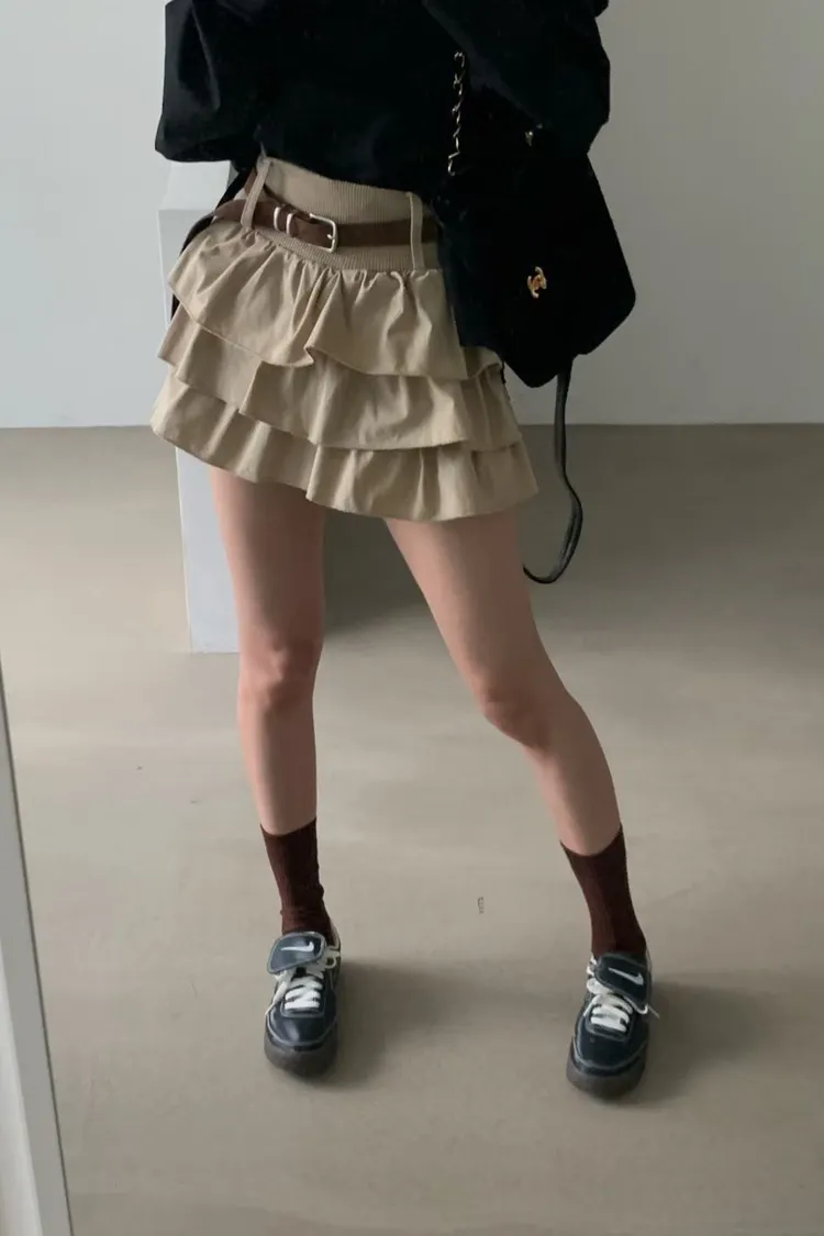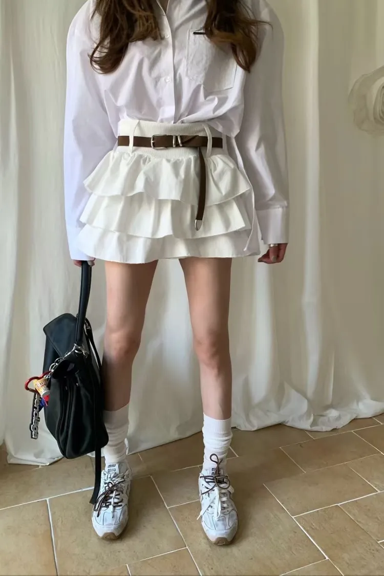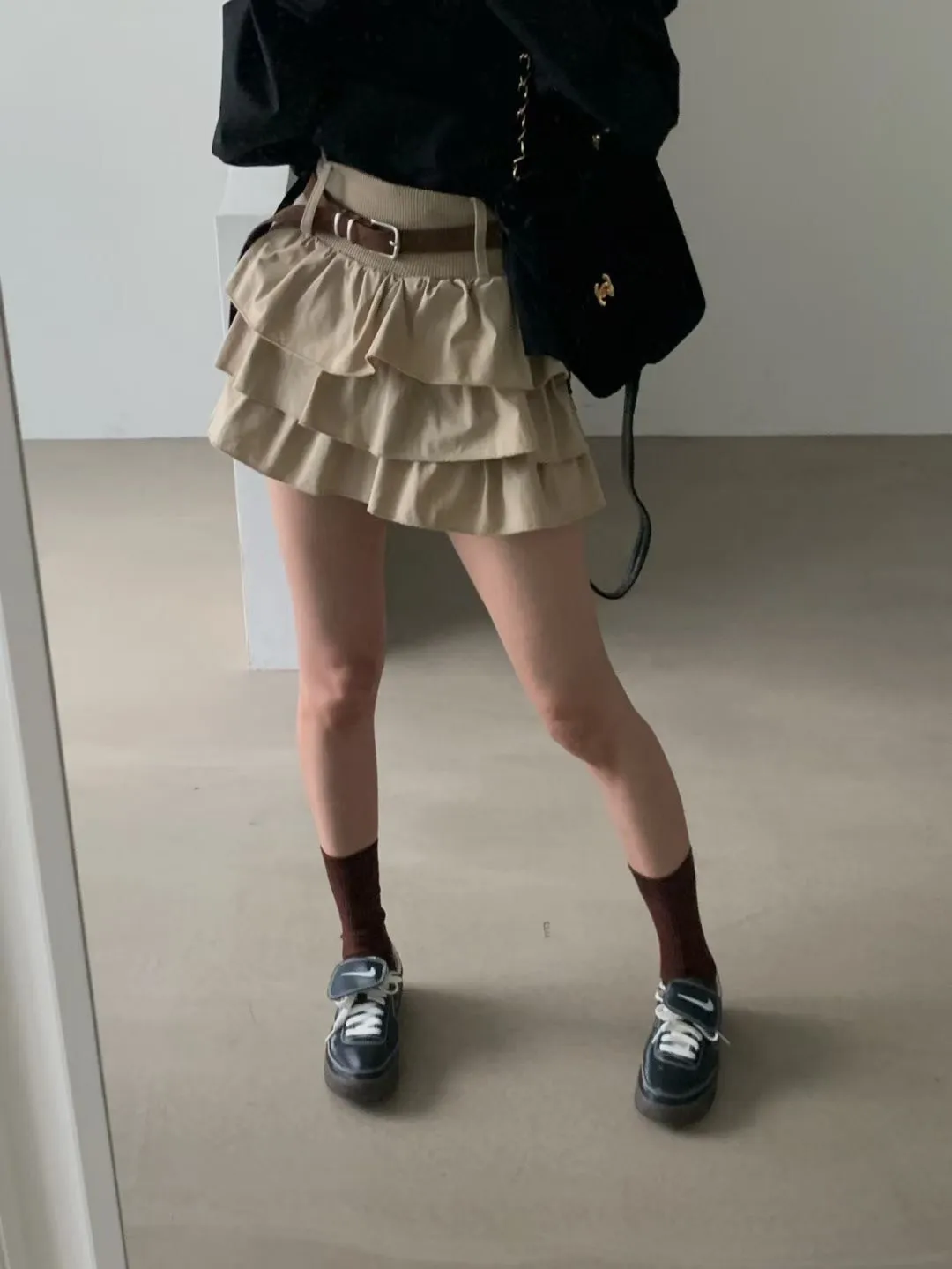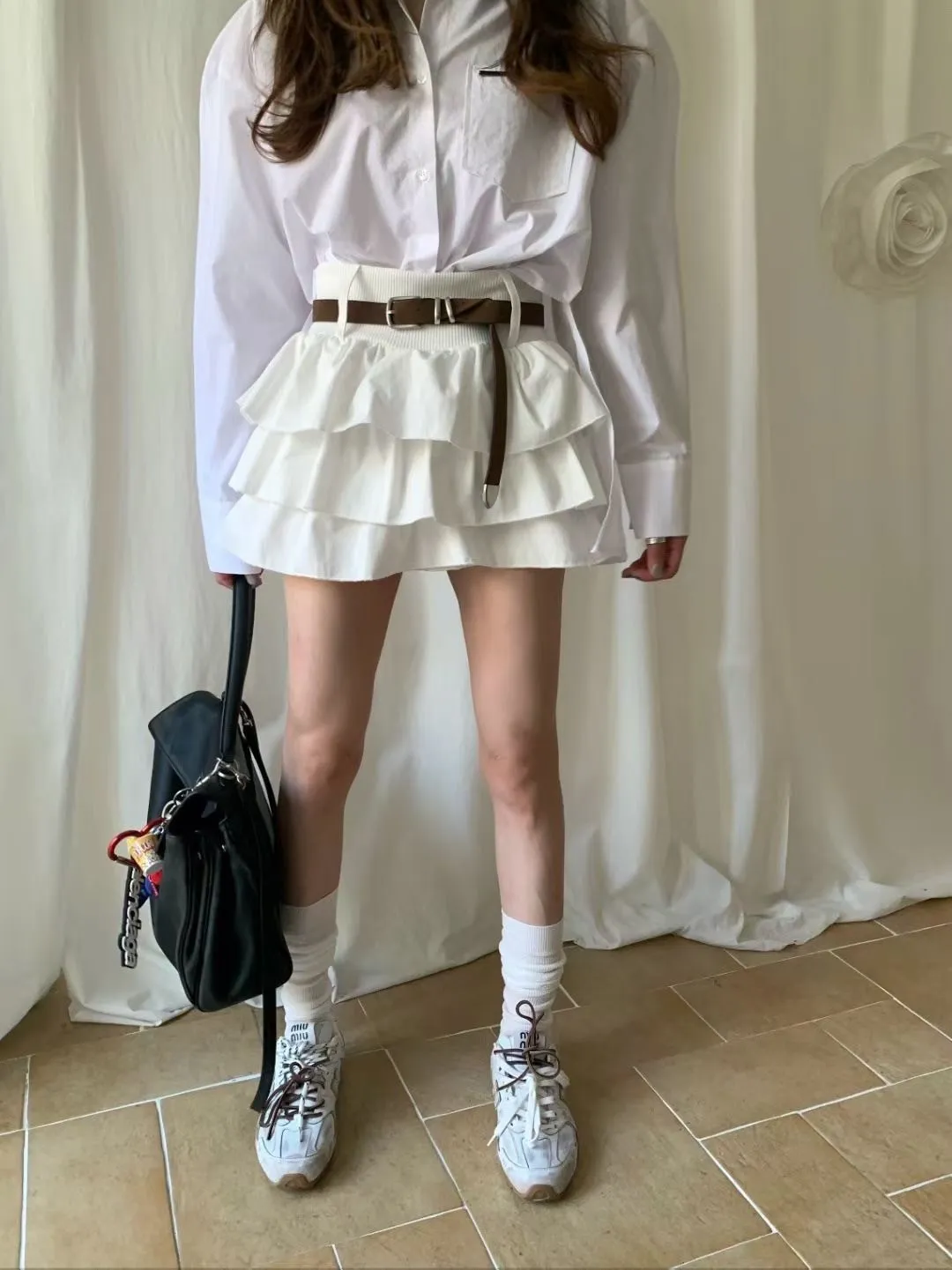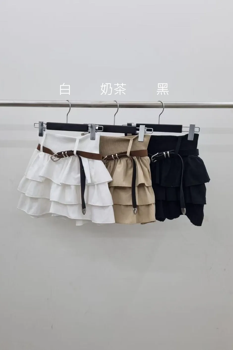 CY399三層蛋糕大長腿褲裙(附皮帶) 白 黑 奶茶 官網價$1050 線上價$1020