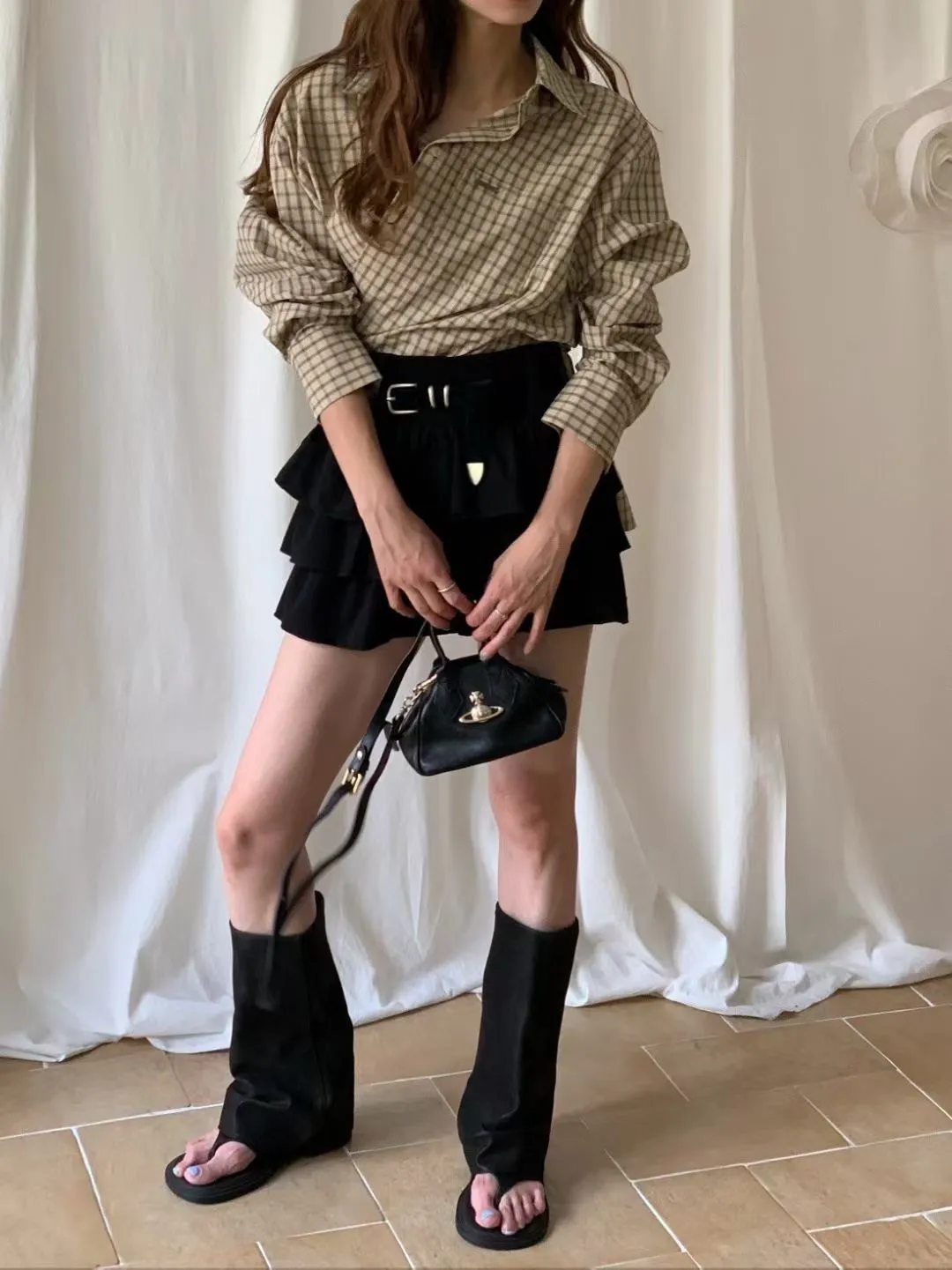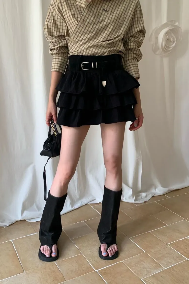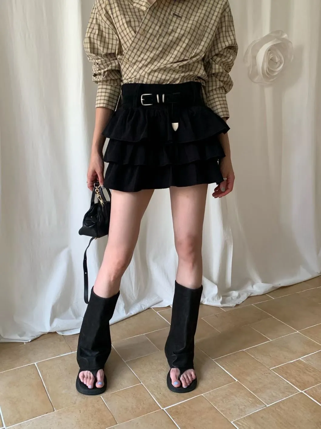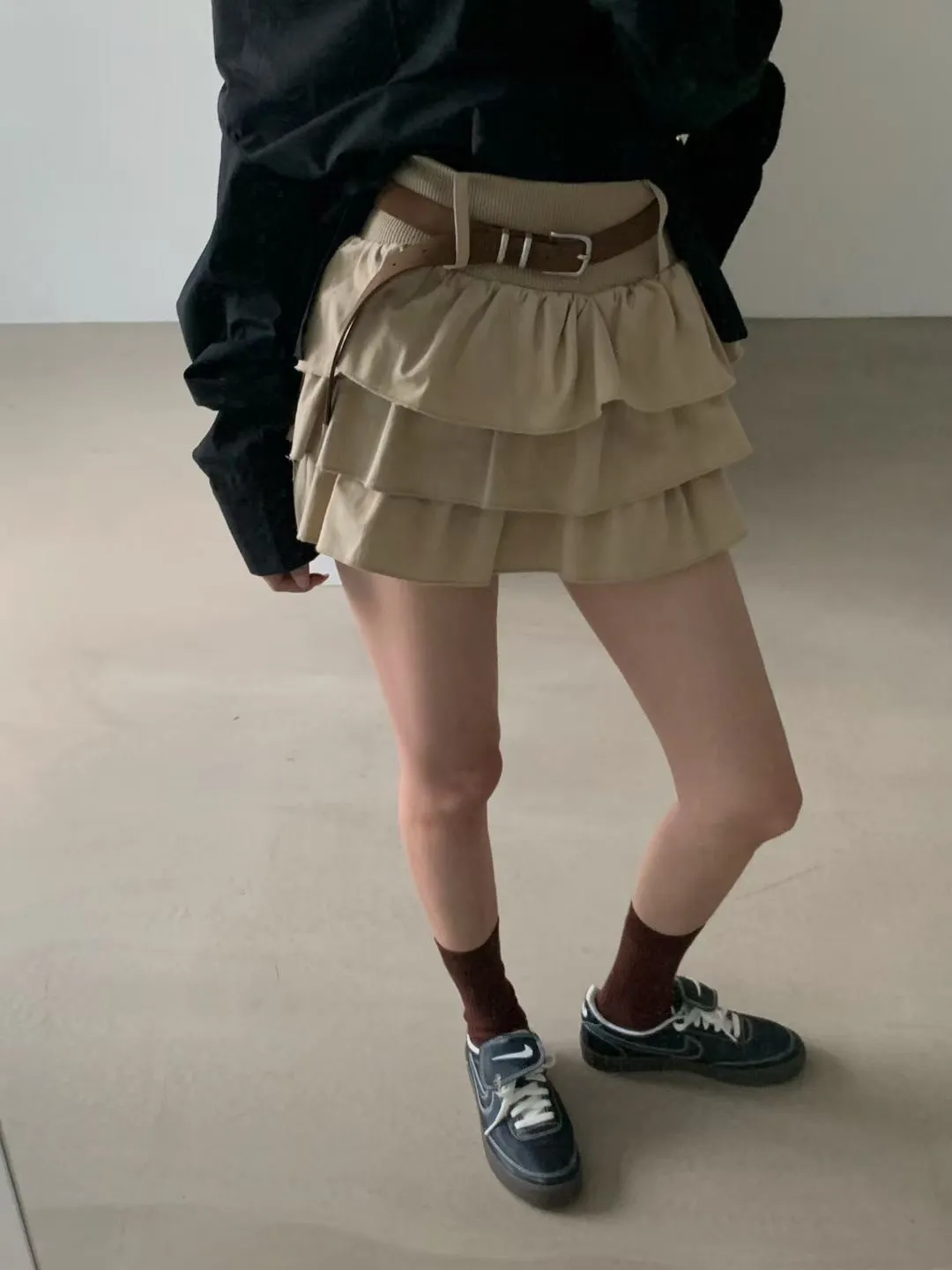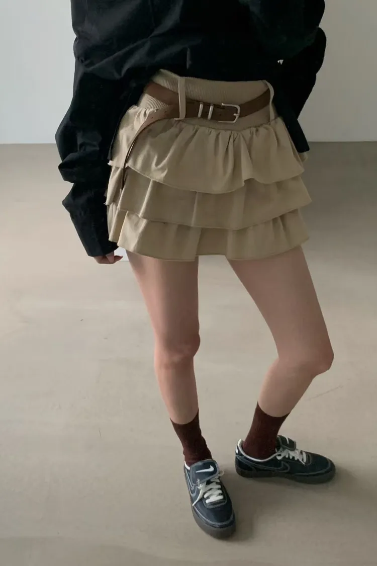 CY399三層蛋糕大長腿褲裙(附皮帶) 白 黑 奶茶 官網價$1050 線上價$1020