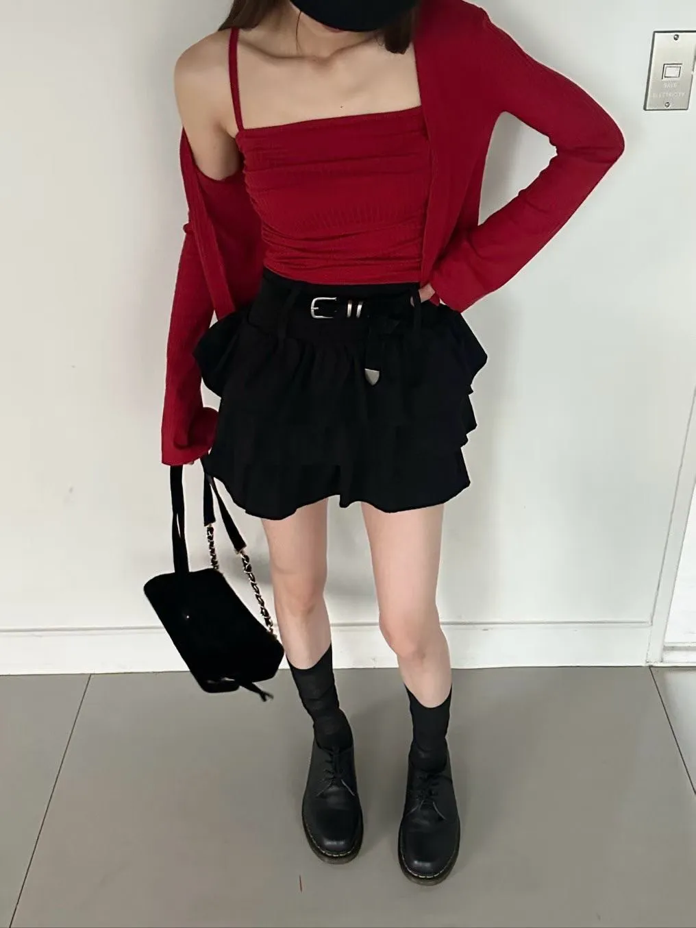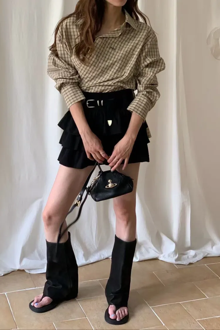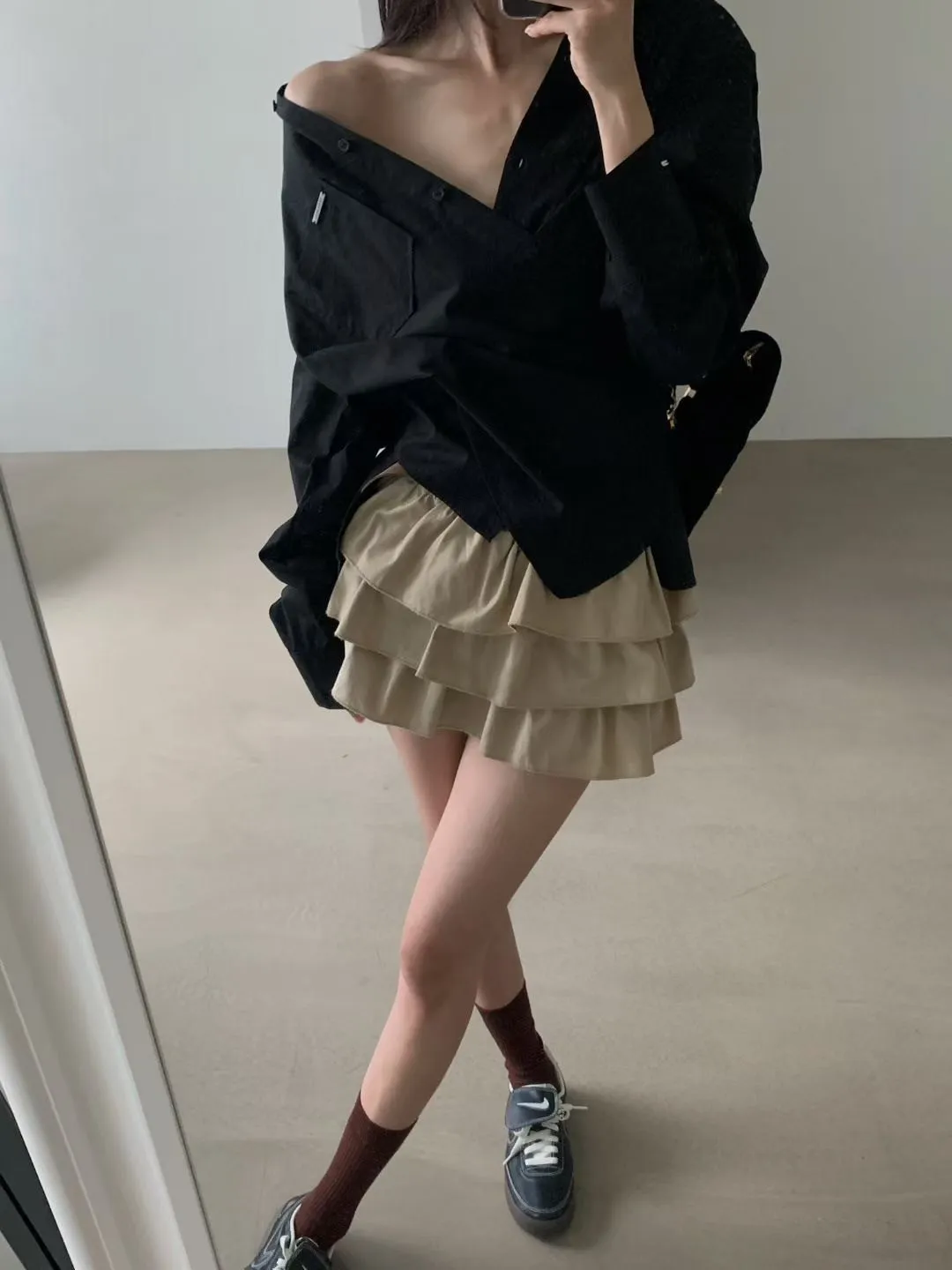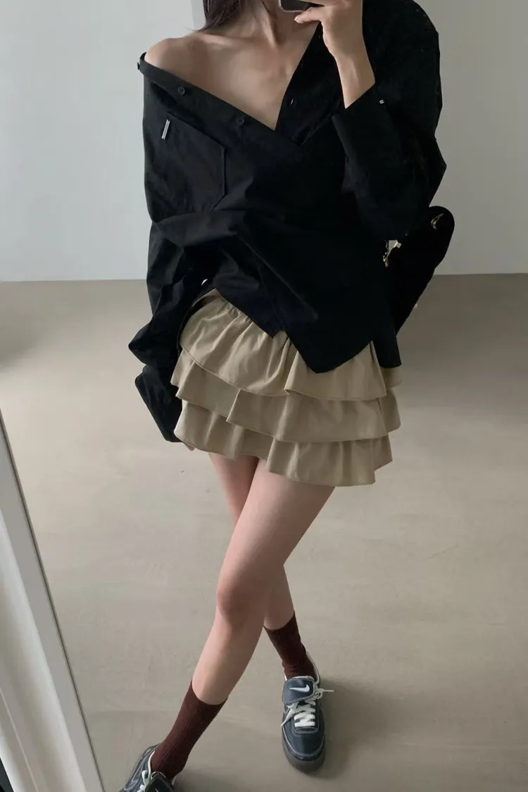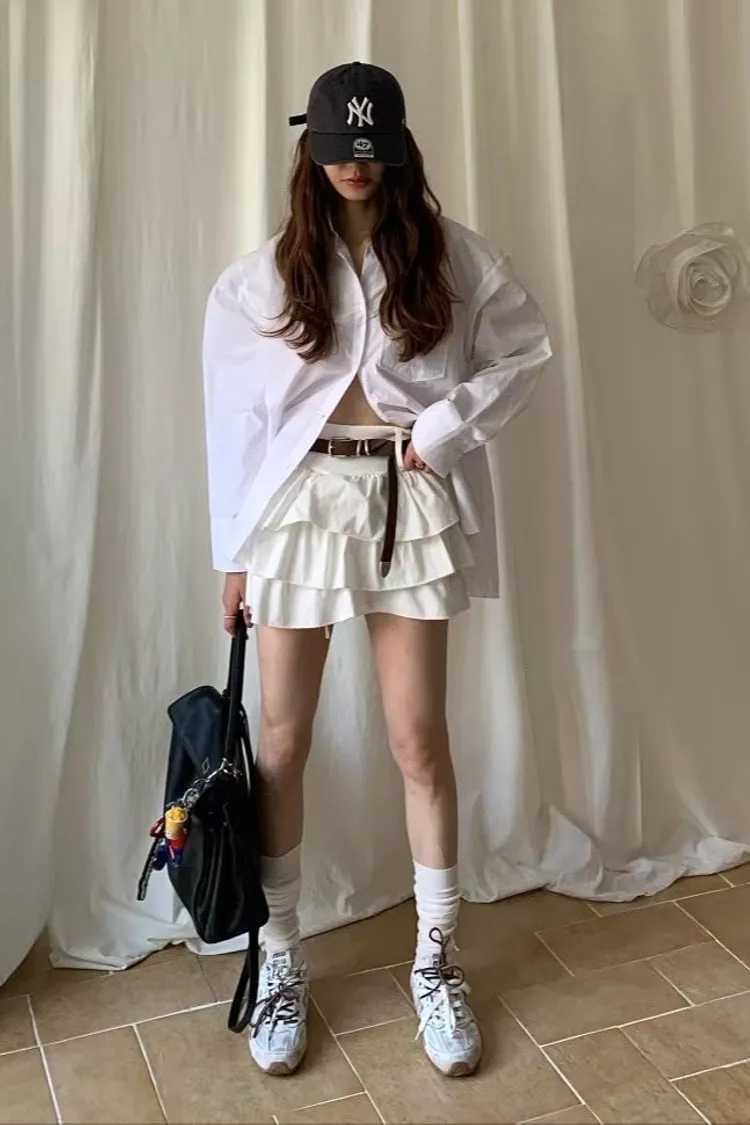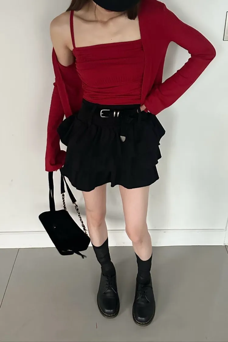 CY399三層蛋糕大長腿褲裙(附皮帶) 白 黑 奶茶 官網價$1050 線上價$1020