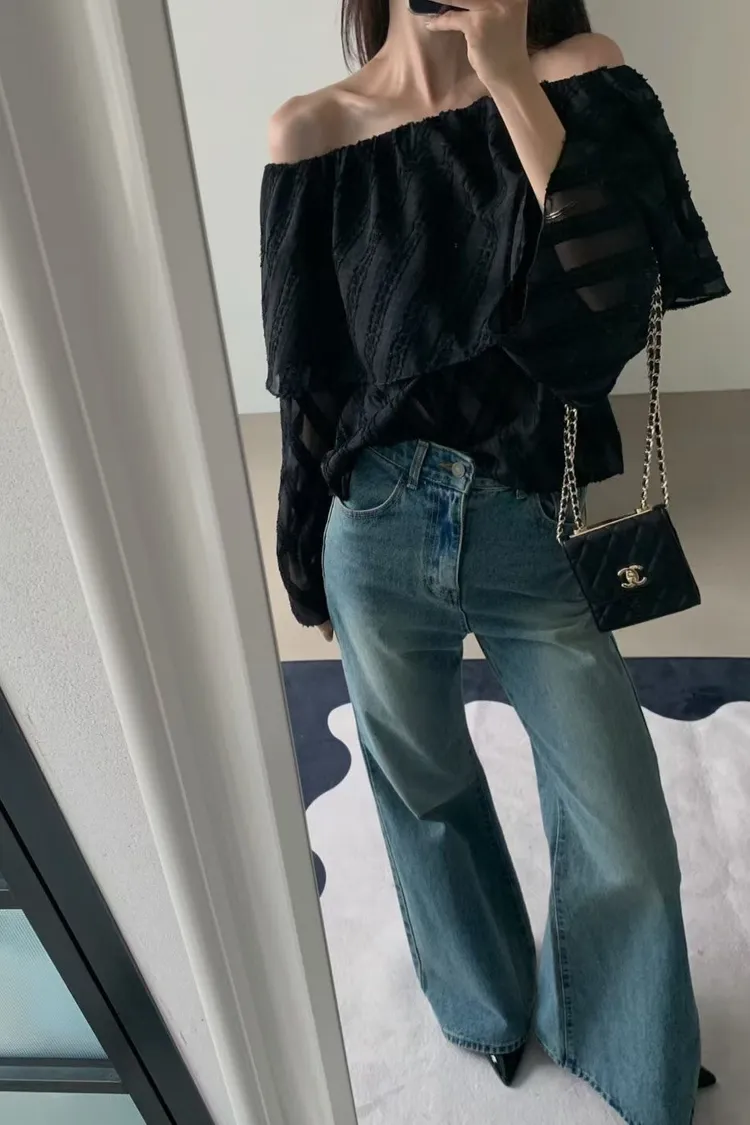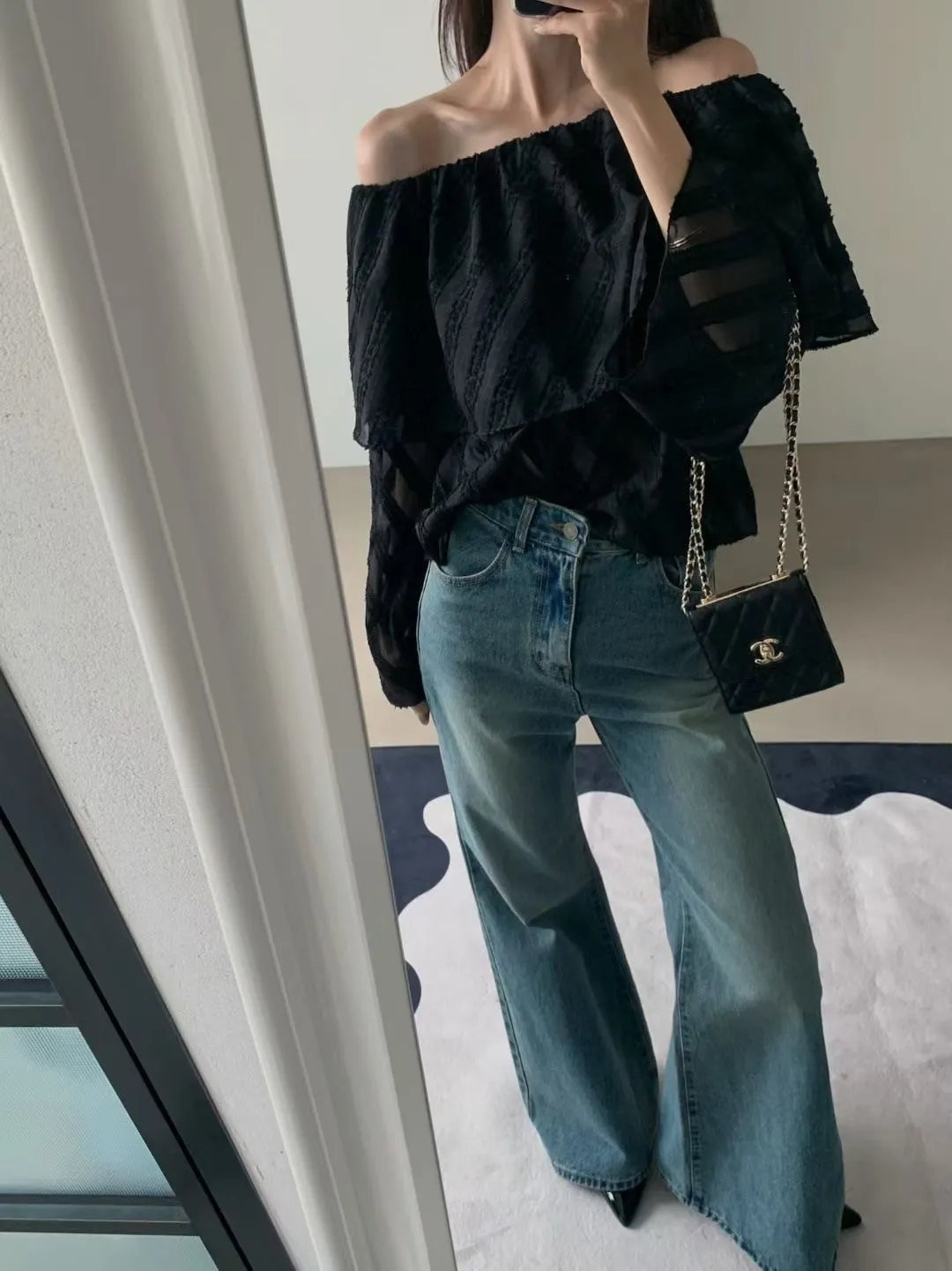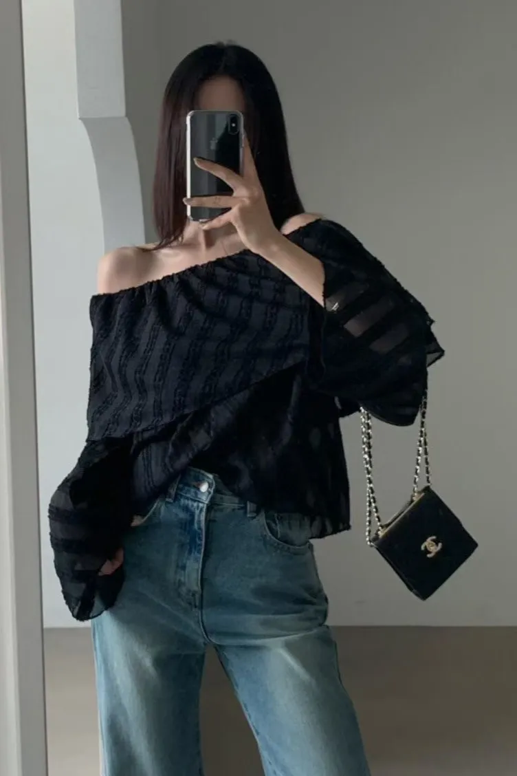 雪紡 薄款輕盈 雙層面料 可一字領 透光面料 顯瘦遮肉 L號友善