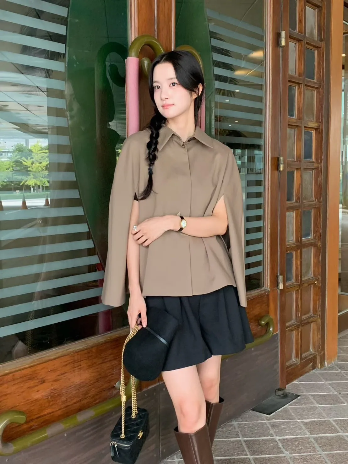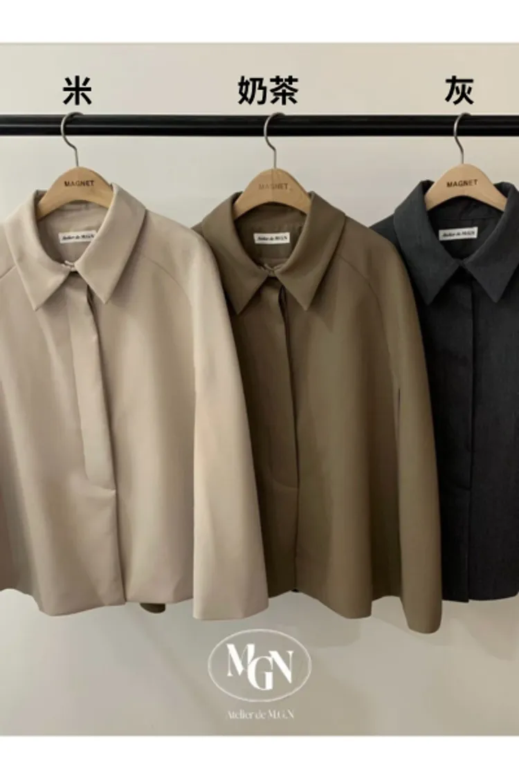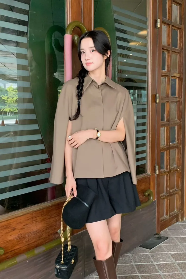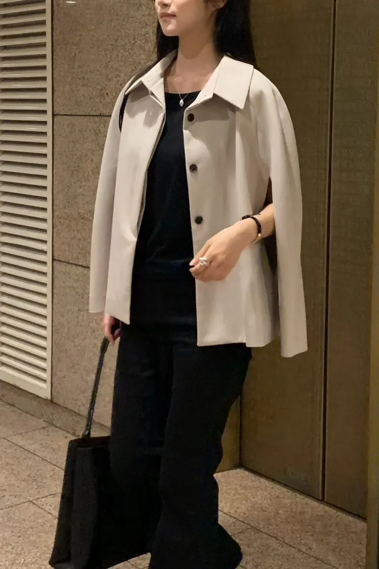 人造絲+聚酯 絲滑觸感 視覺高級 披肩袖 遮肉顯瘦 罩衫外套版型