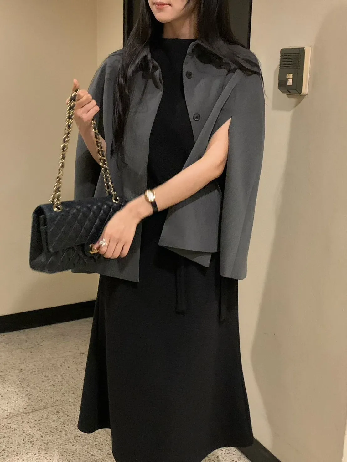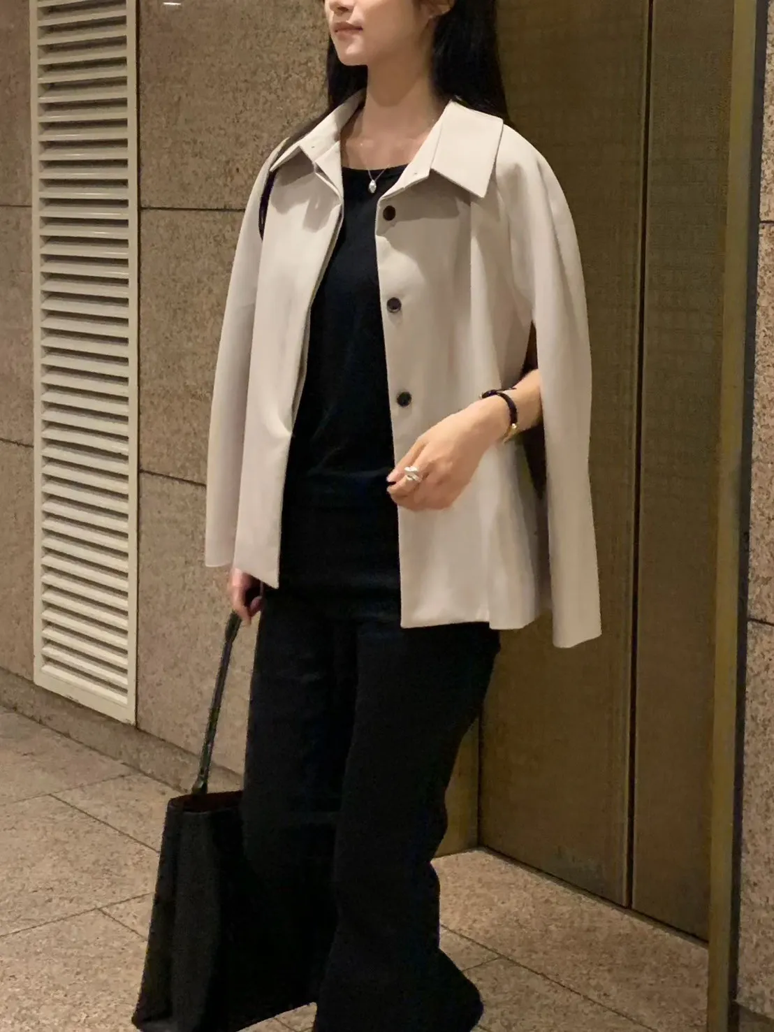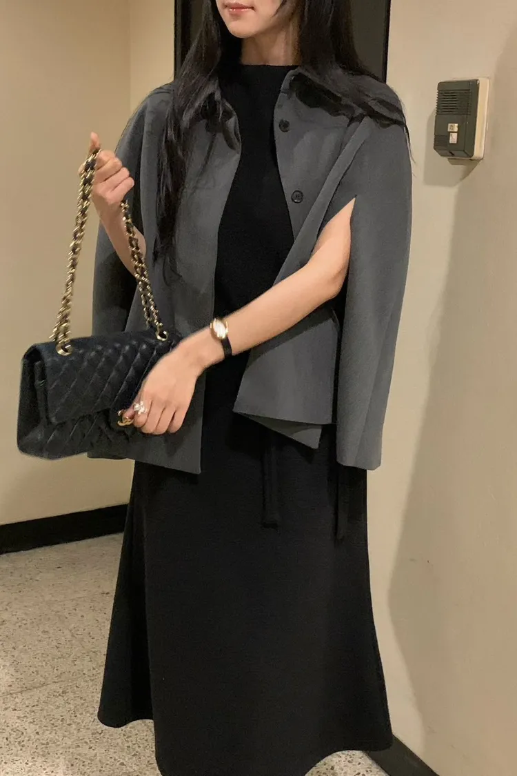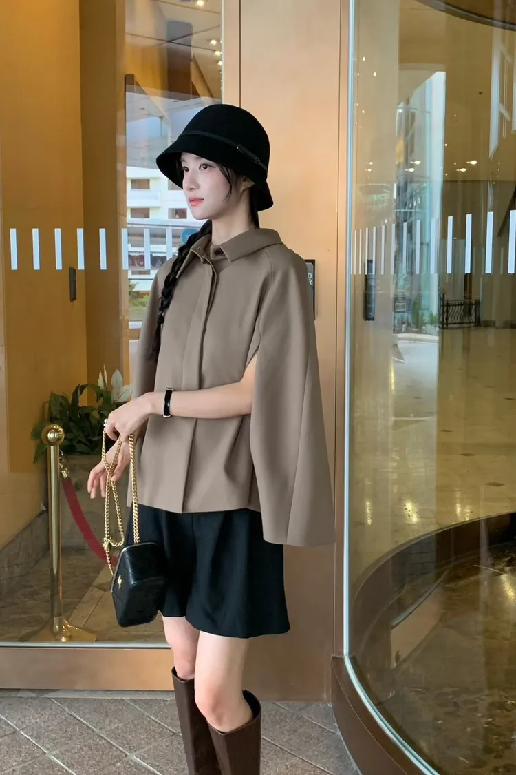 人造絲+聚酯 絲滑觸感 視覺高級 披肩袖 遮肉顯瘦 罩衫外套版型