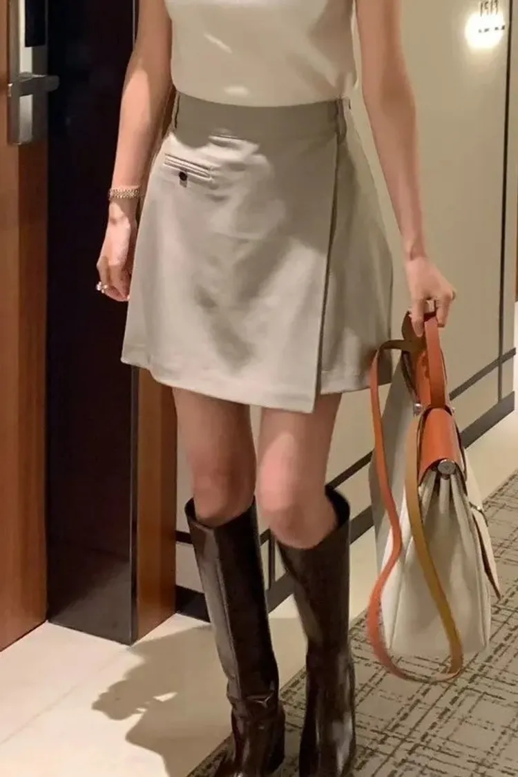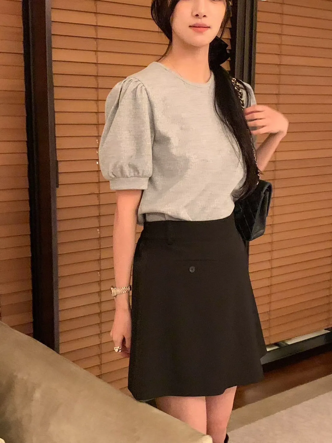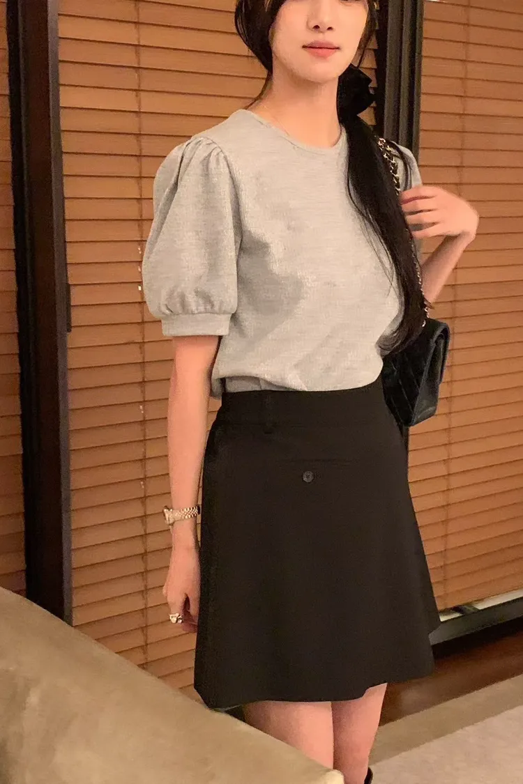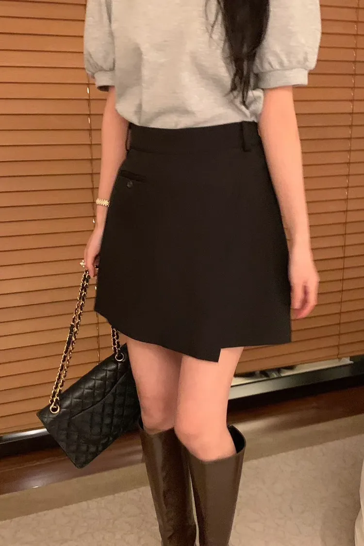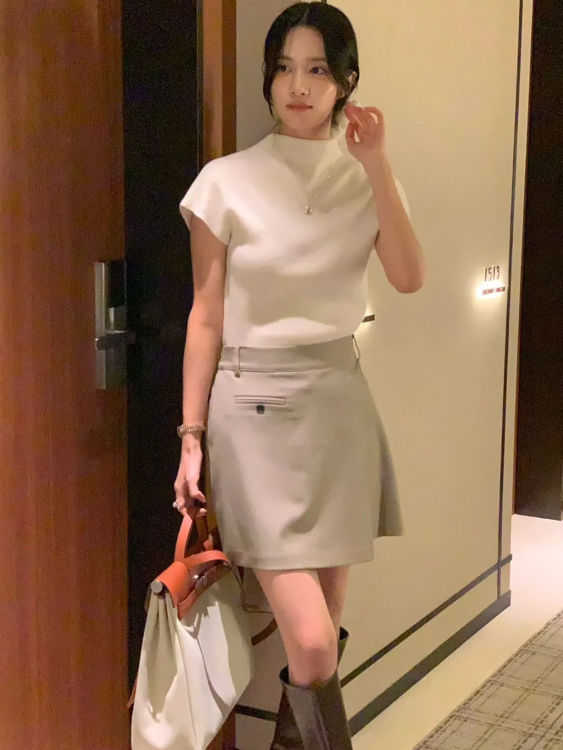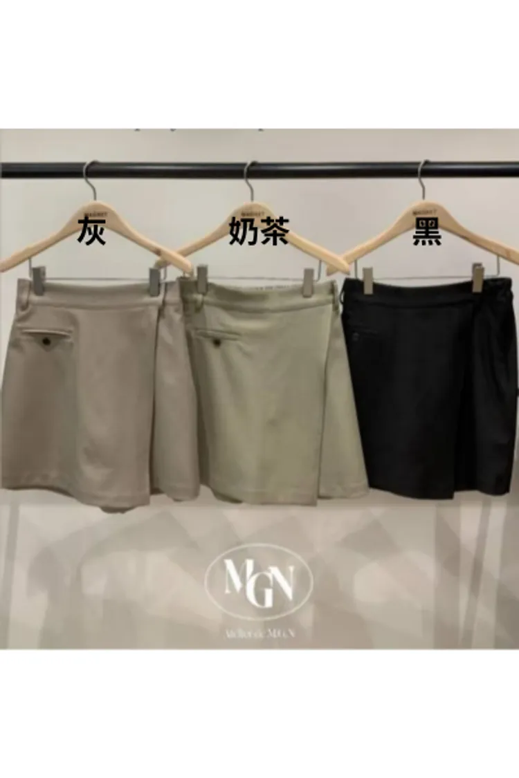 西裝面料 滑感順身 簡單好看 Aline顯瘦 後腰鬆緊 無口袋