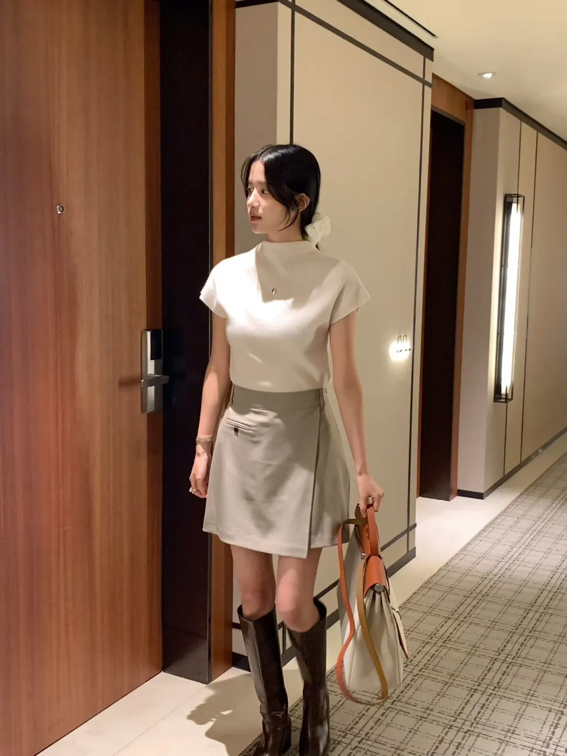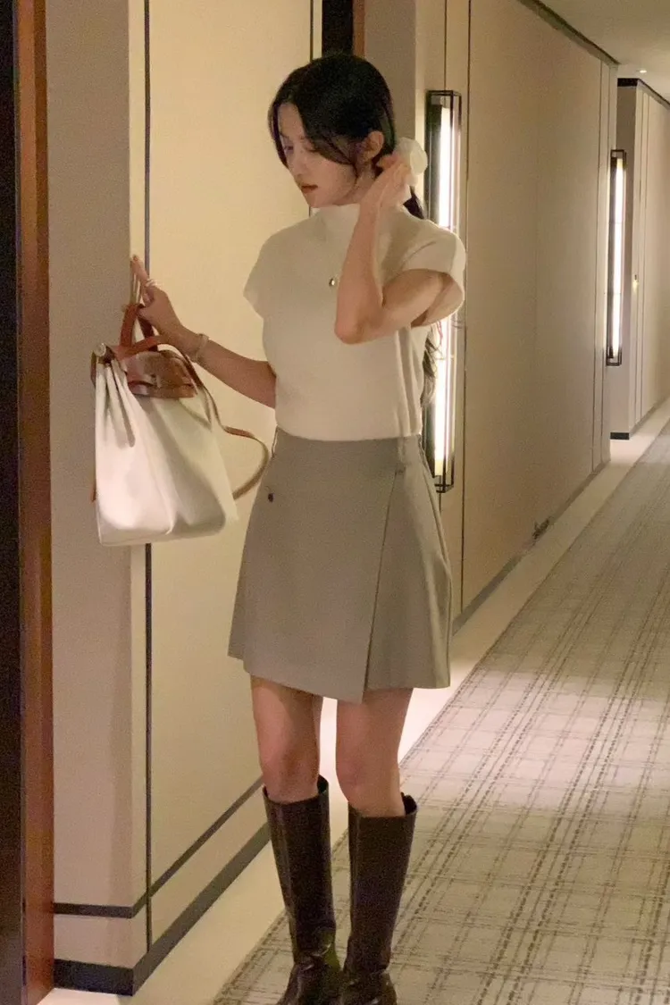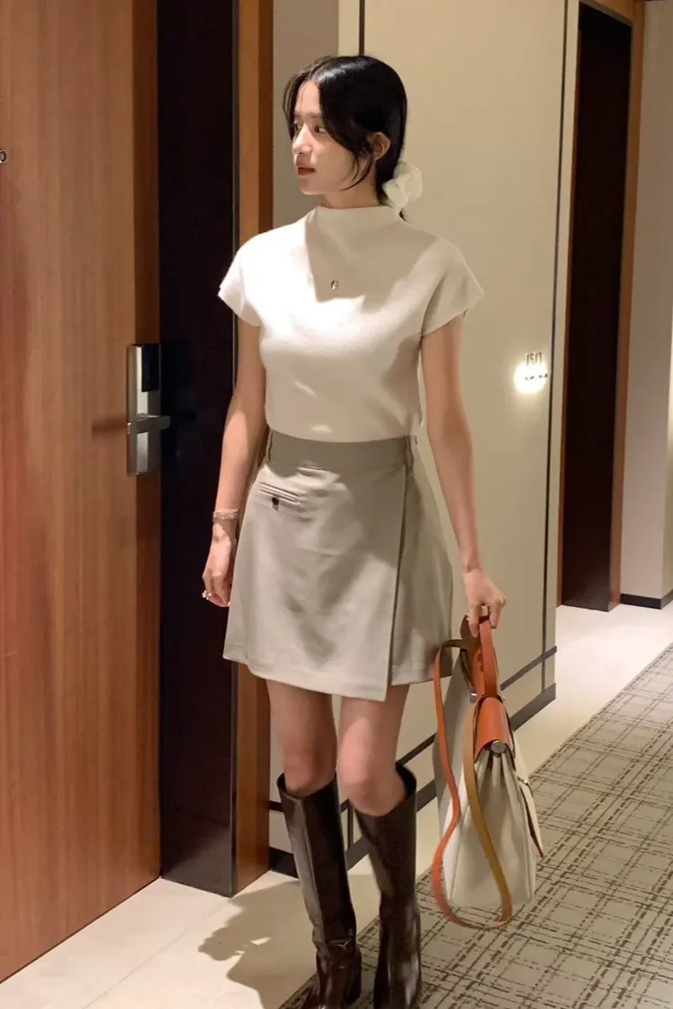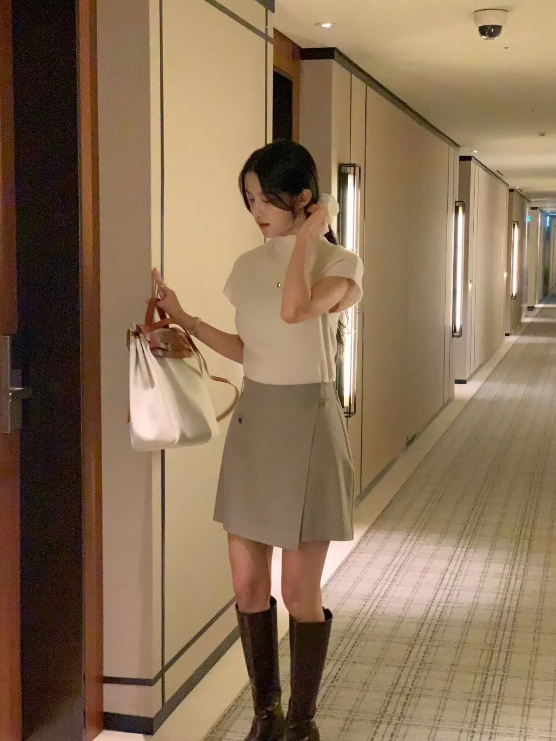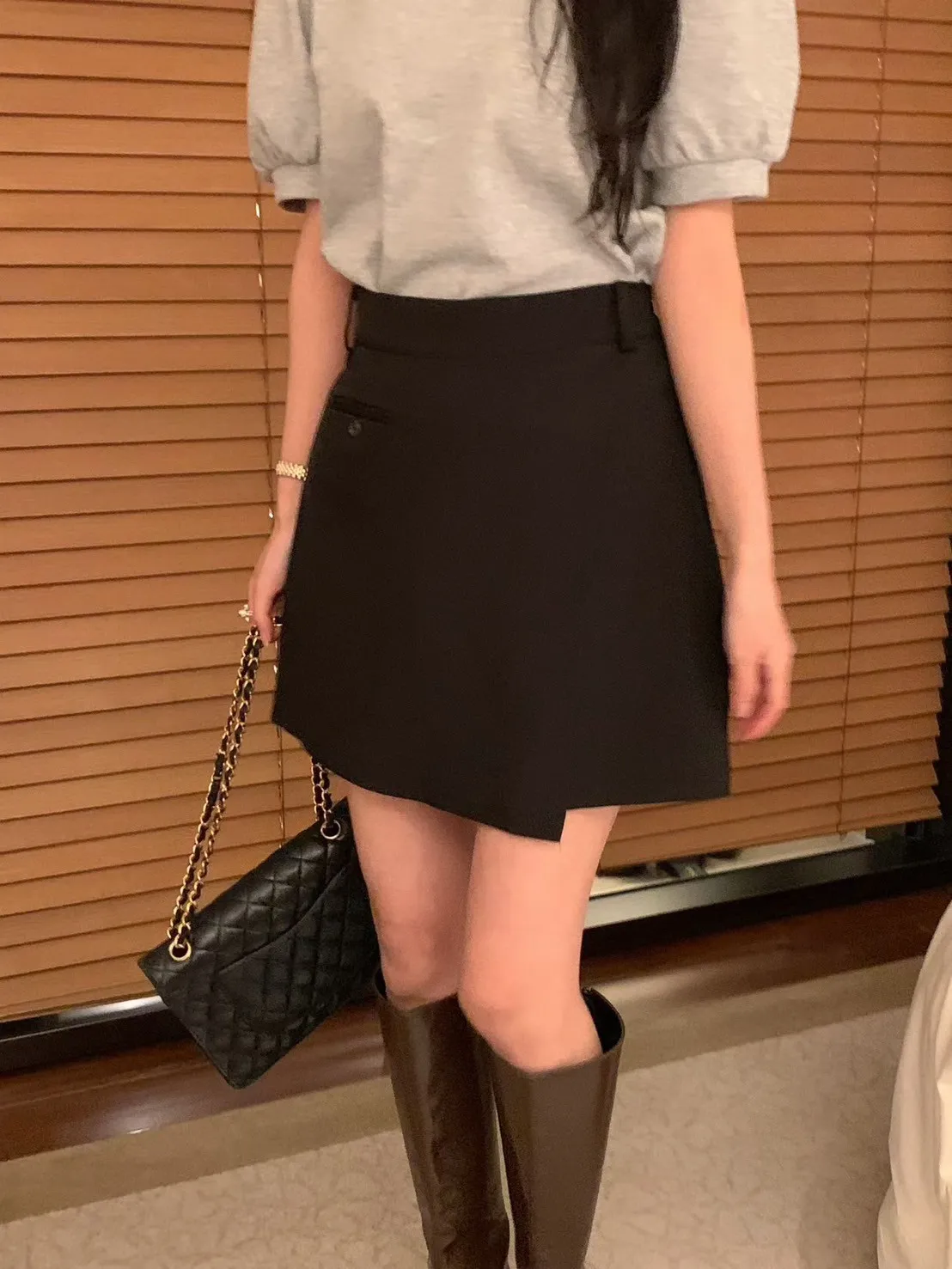 西裝面料 滑感順身 簡單好看 Aline顯瘦 後腰鬆緊 無口袋