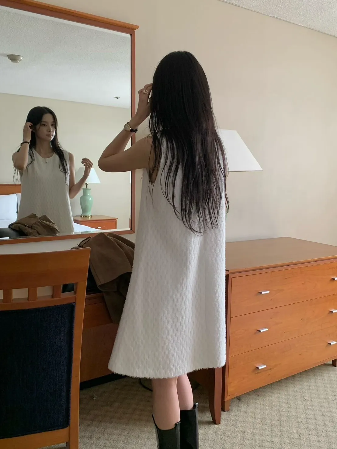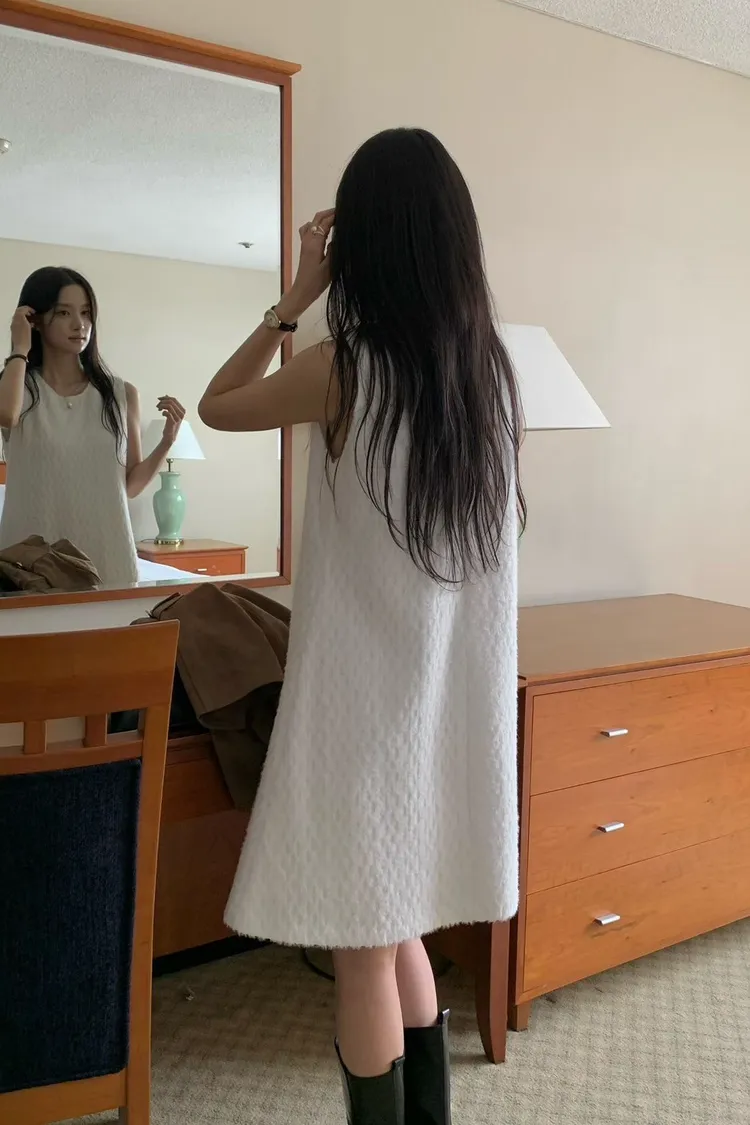 聚酯 柔軟微毛 自然Aline傘擺裙 後拉鍊穿脫 空間舒適 L號友善