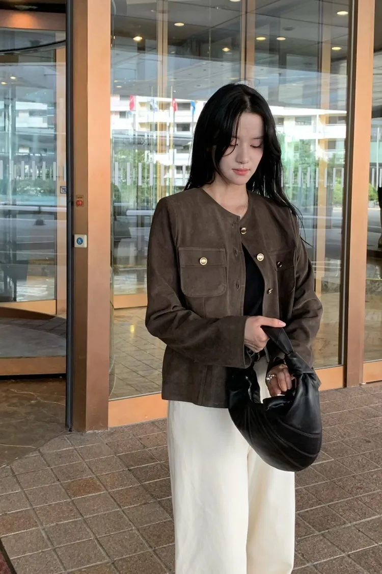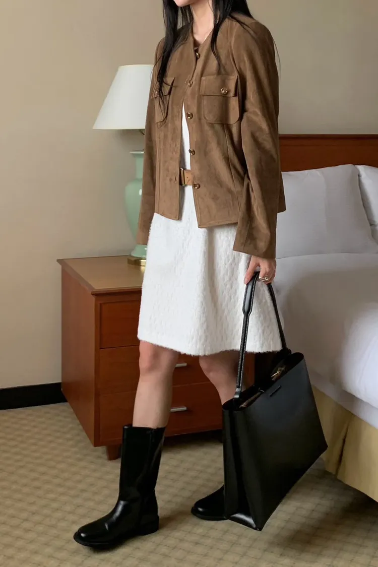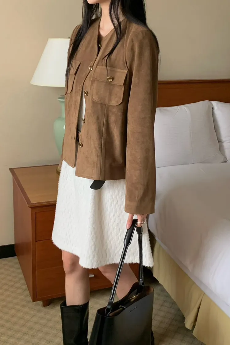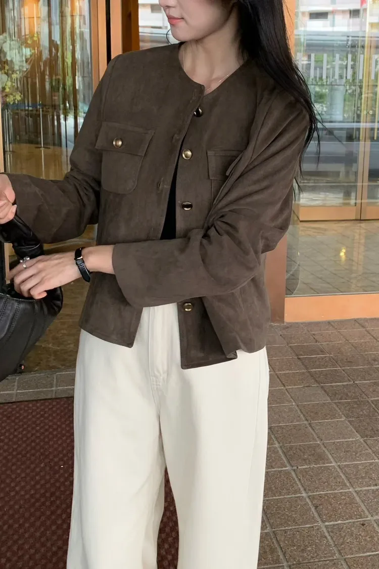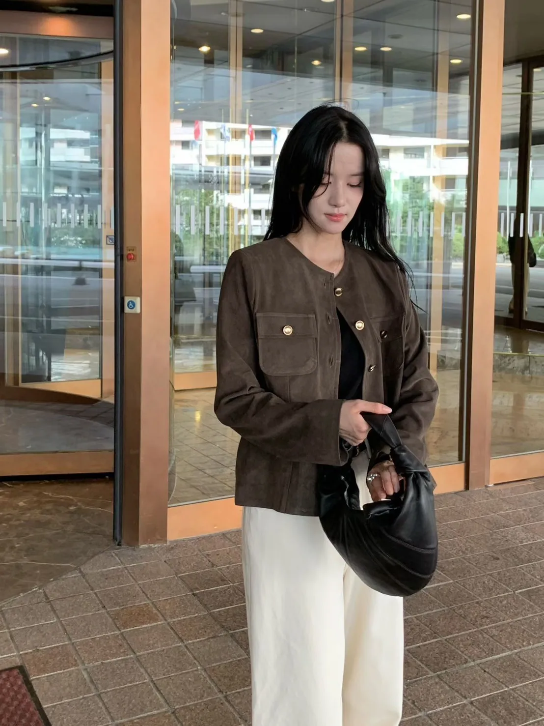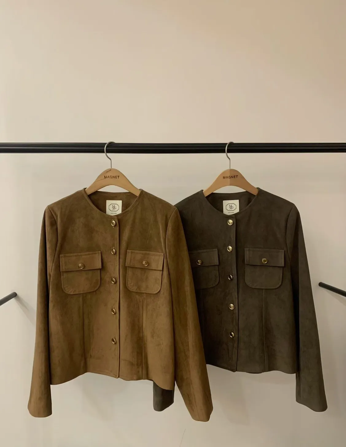 麂皮 面料質感佳 雙口袋 金釦穿脫 百搭風格 可上衣可外套