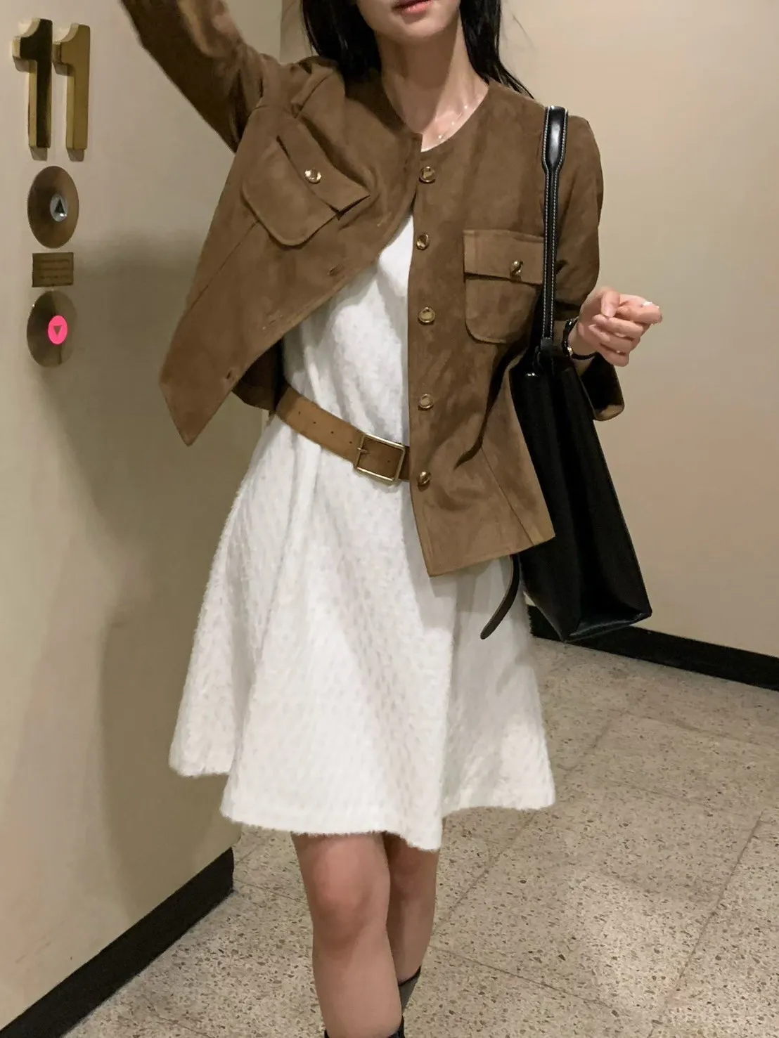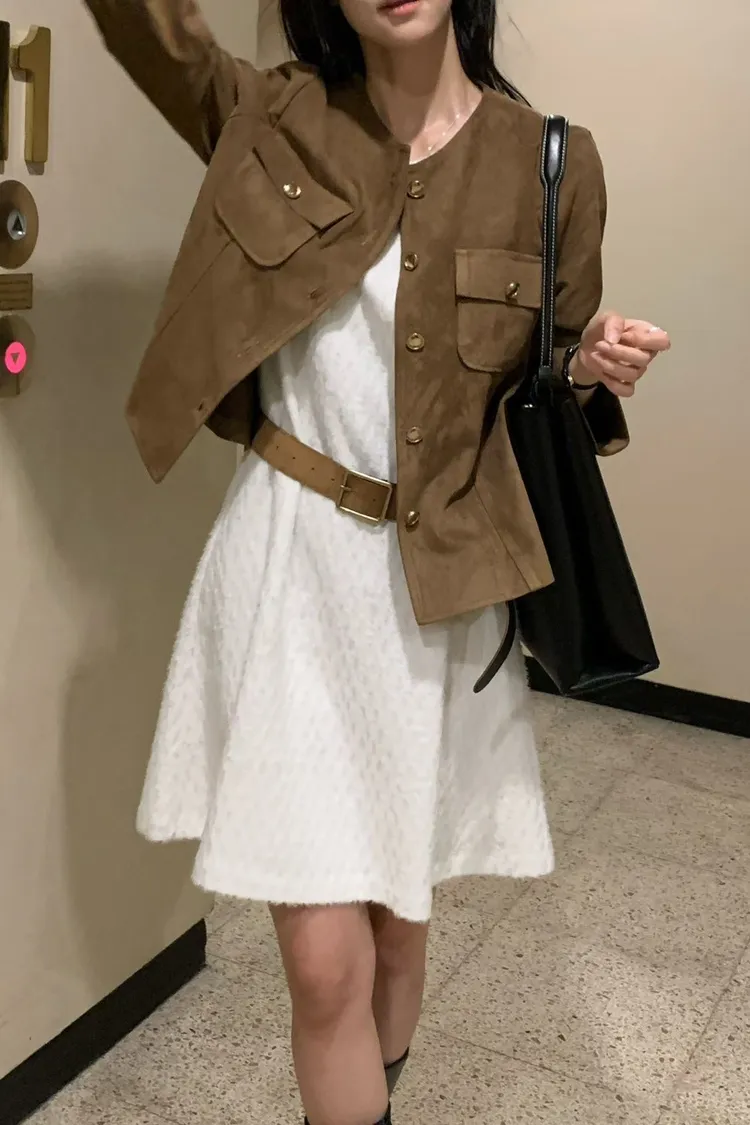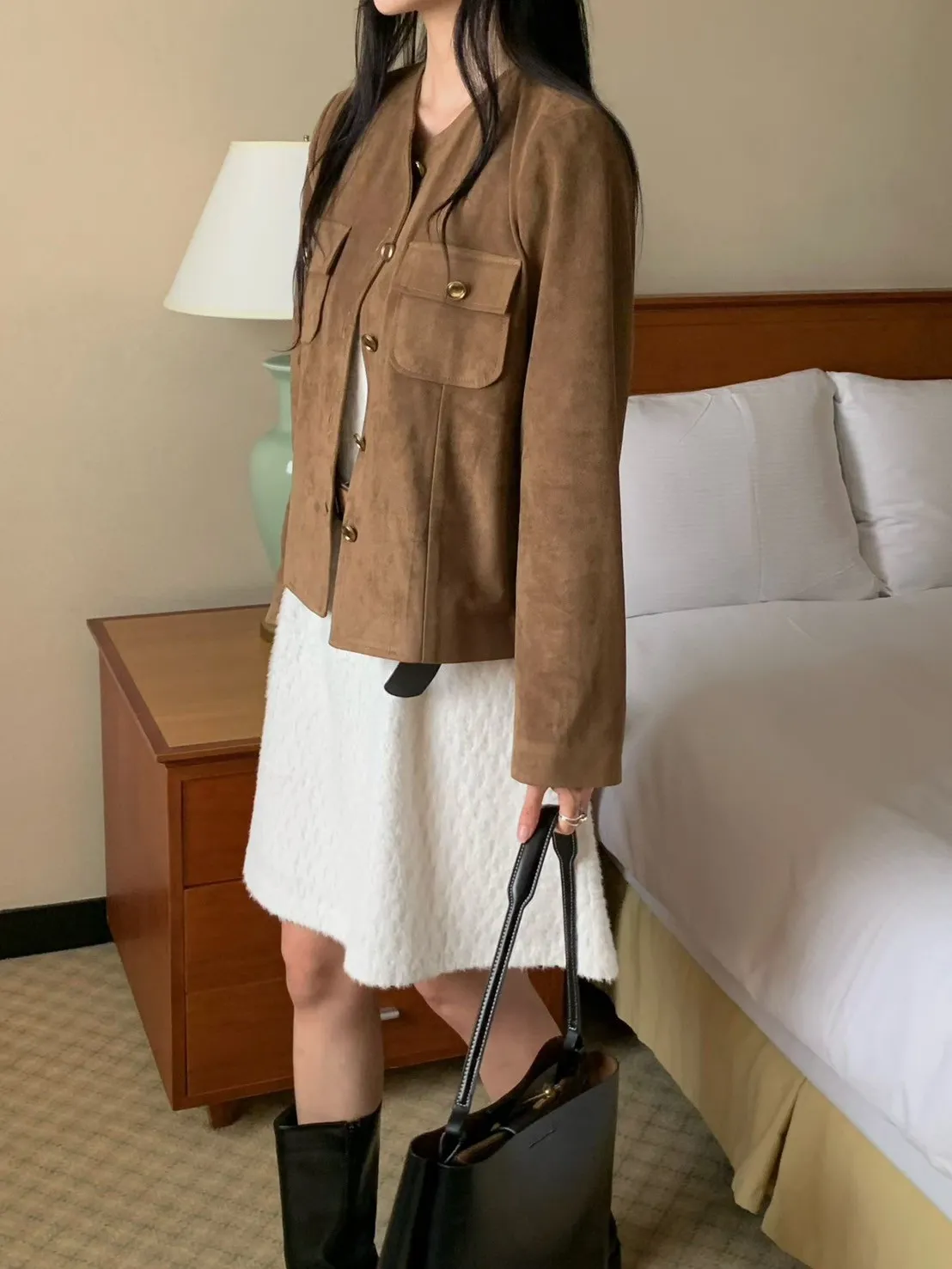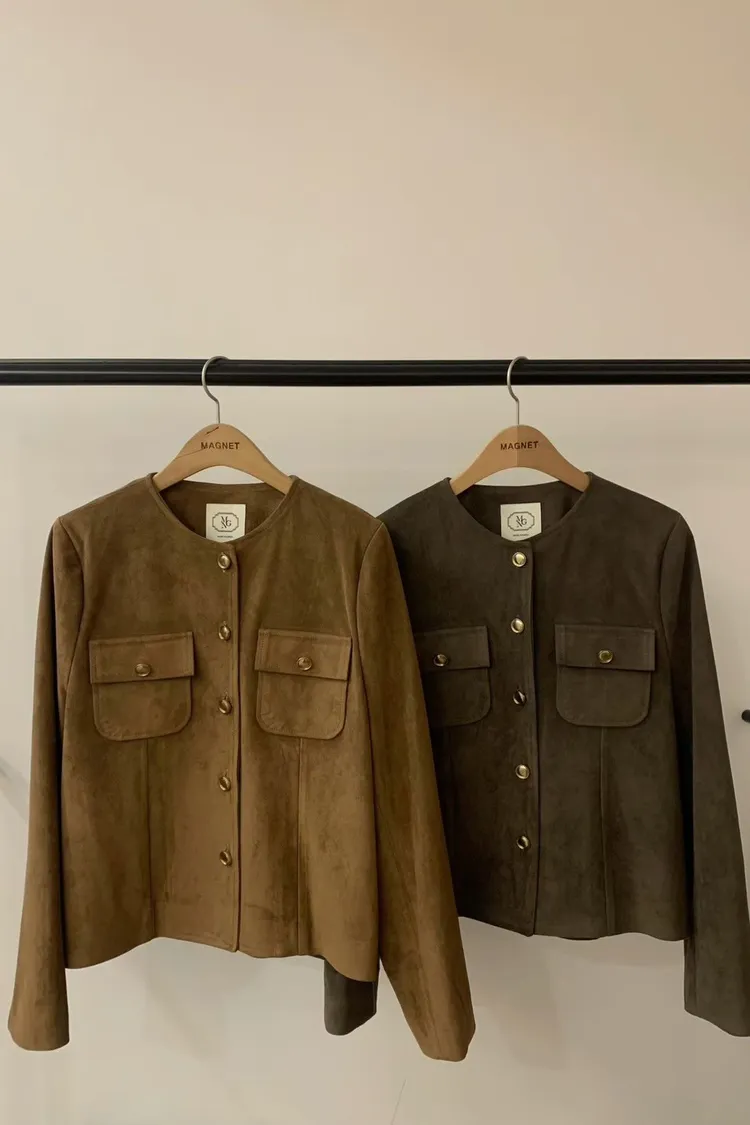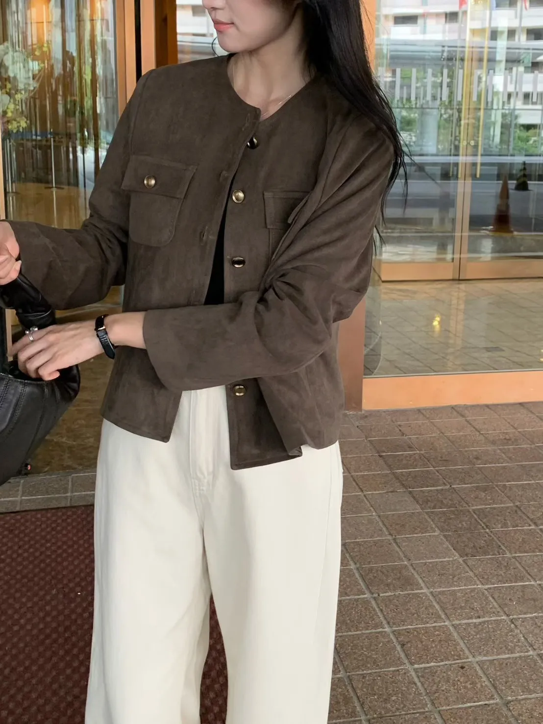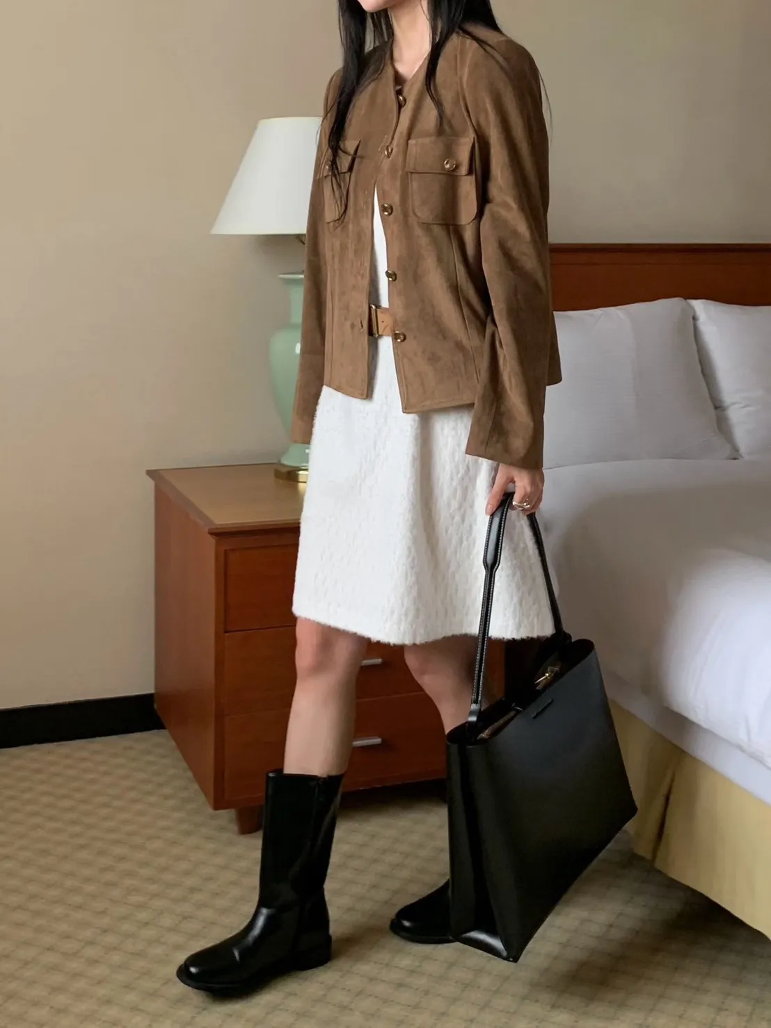 麂皮 面料質感佳 雙口袋 金釦穿脫 百搭風格 可上衣可外套