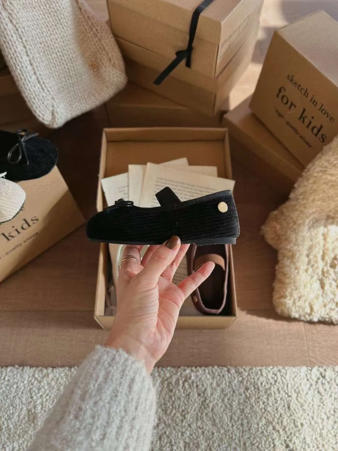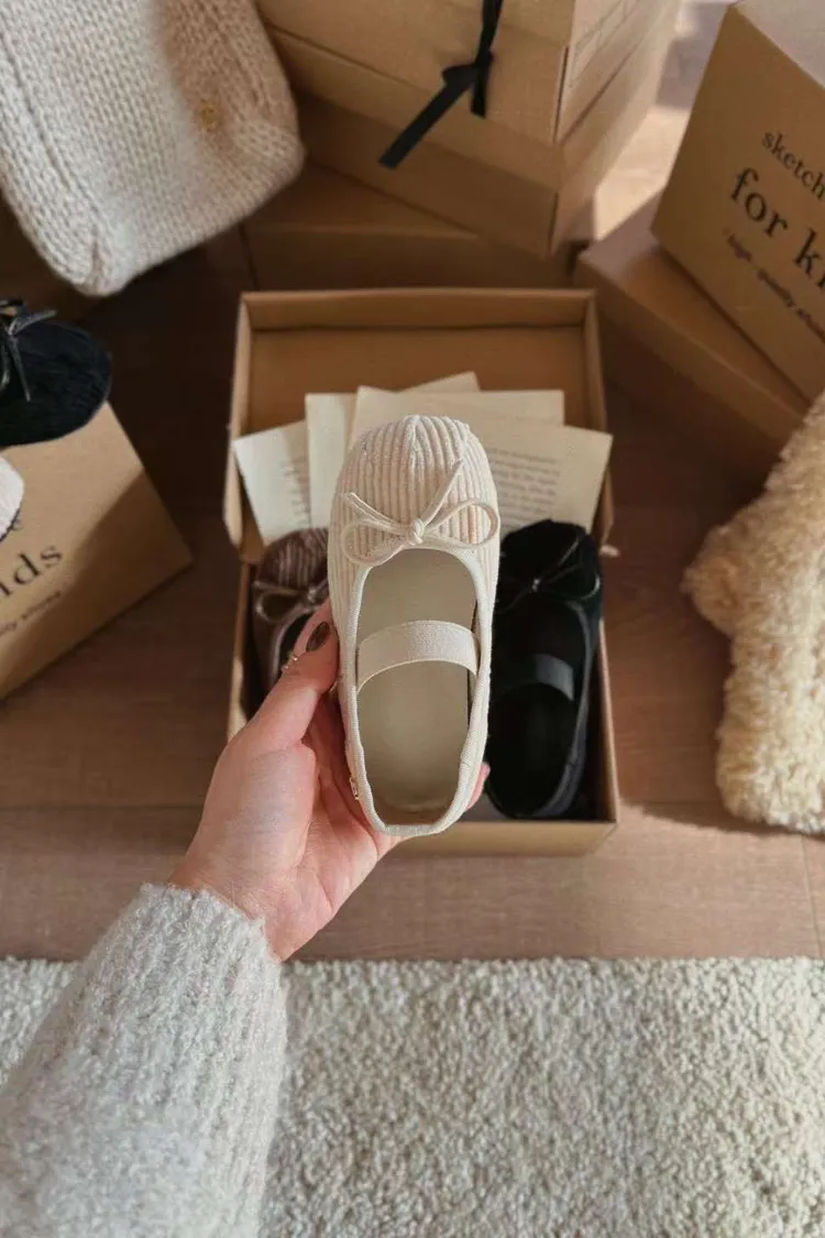 CY465胡蝶結燈心絨娃娃鞋(小孩款) 米 咖 黑 140-190(無半號) 官網價$930 永恆甜甜價$880