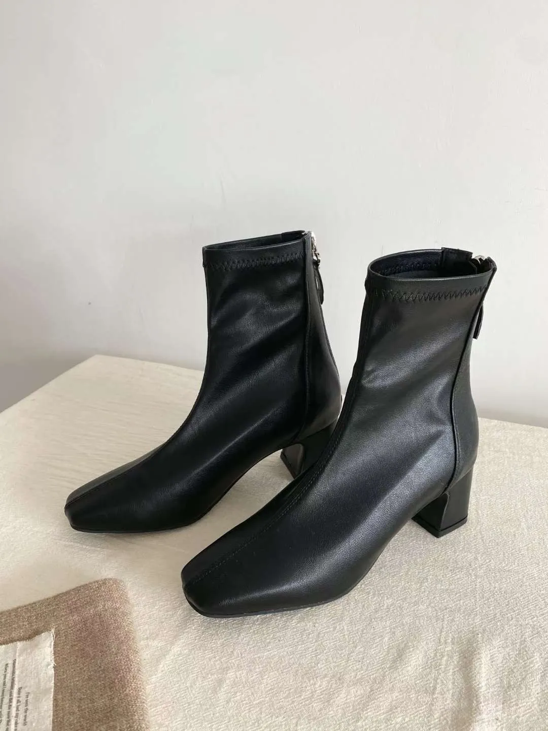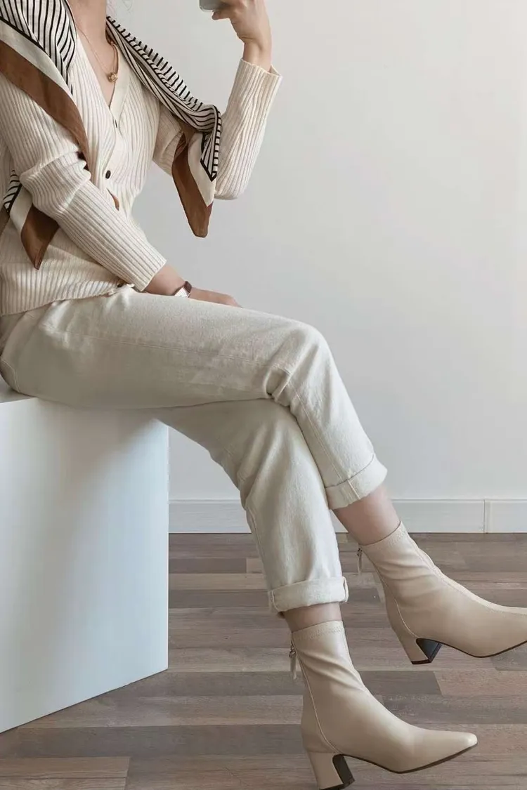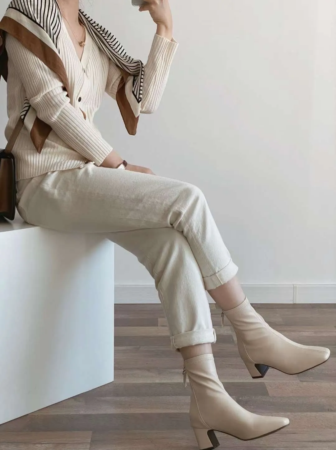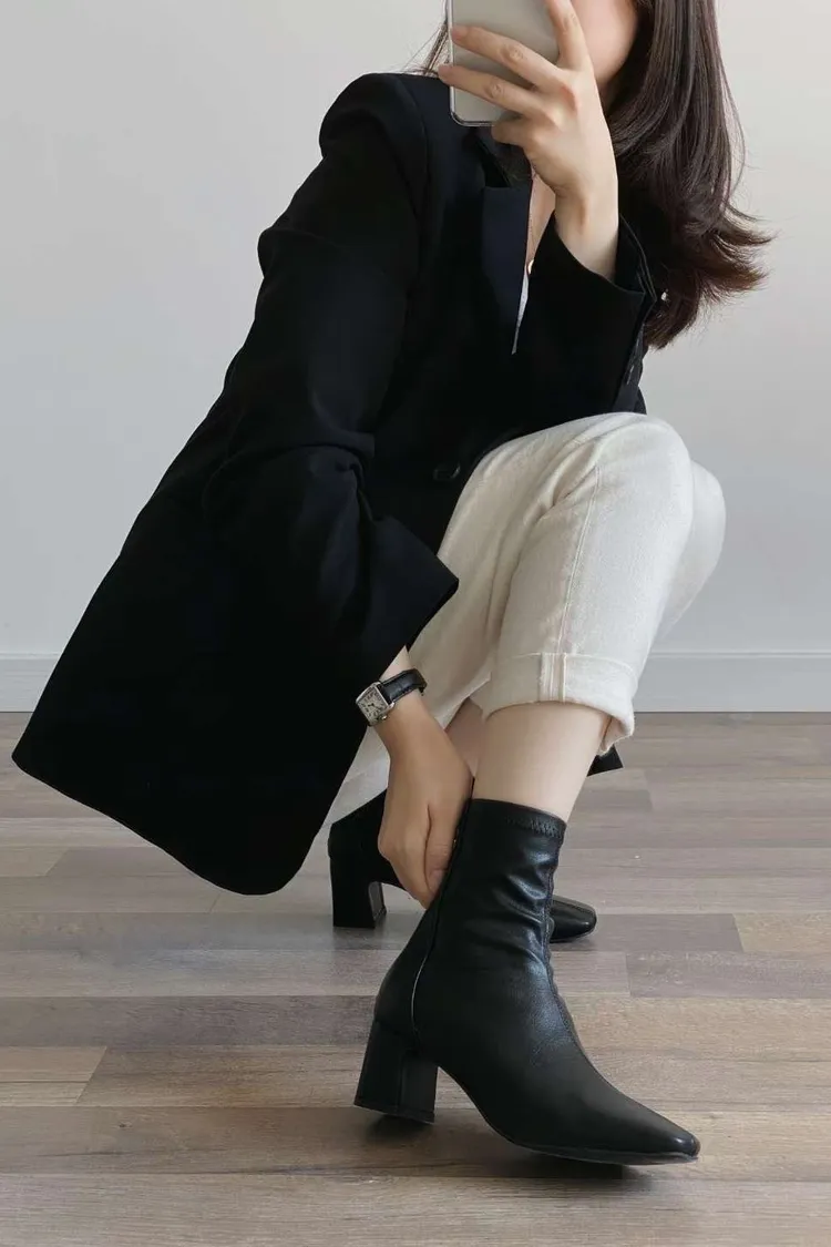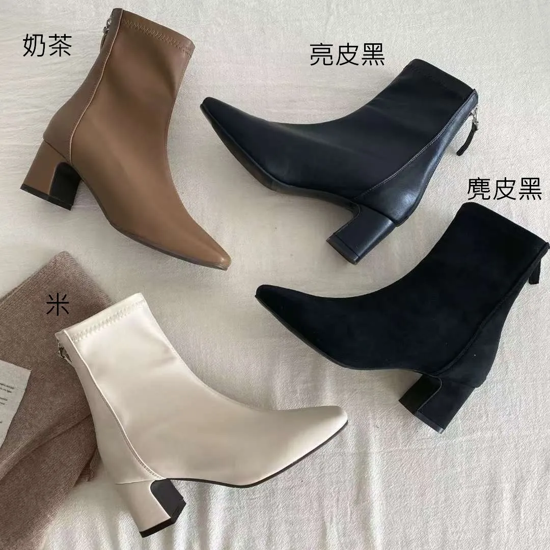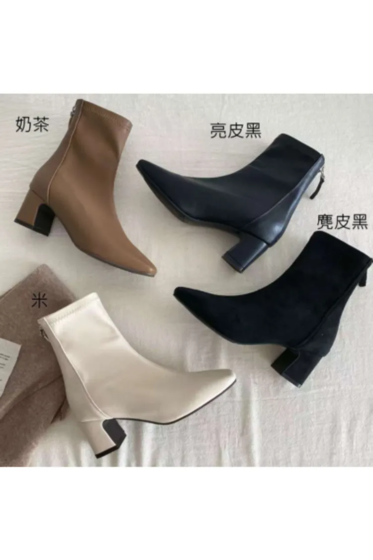CY468經典粗跟短靴 米 奶茶 亮皮黑 麂皮黑 230-250(有半號) 官網價$1140 永恆甜甜價$1090