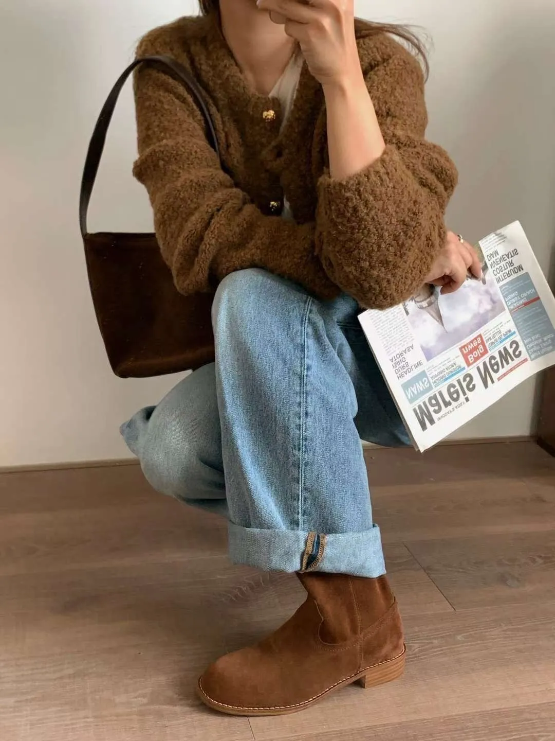CY474麂皮圓頭短靴 咖 黑 230-250(有半號) 官網價$1490 永恆甜甜價$1440