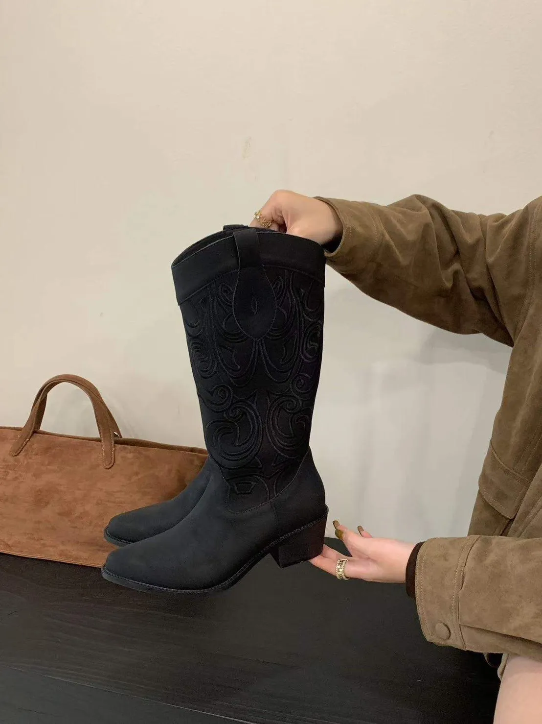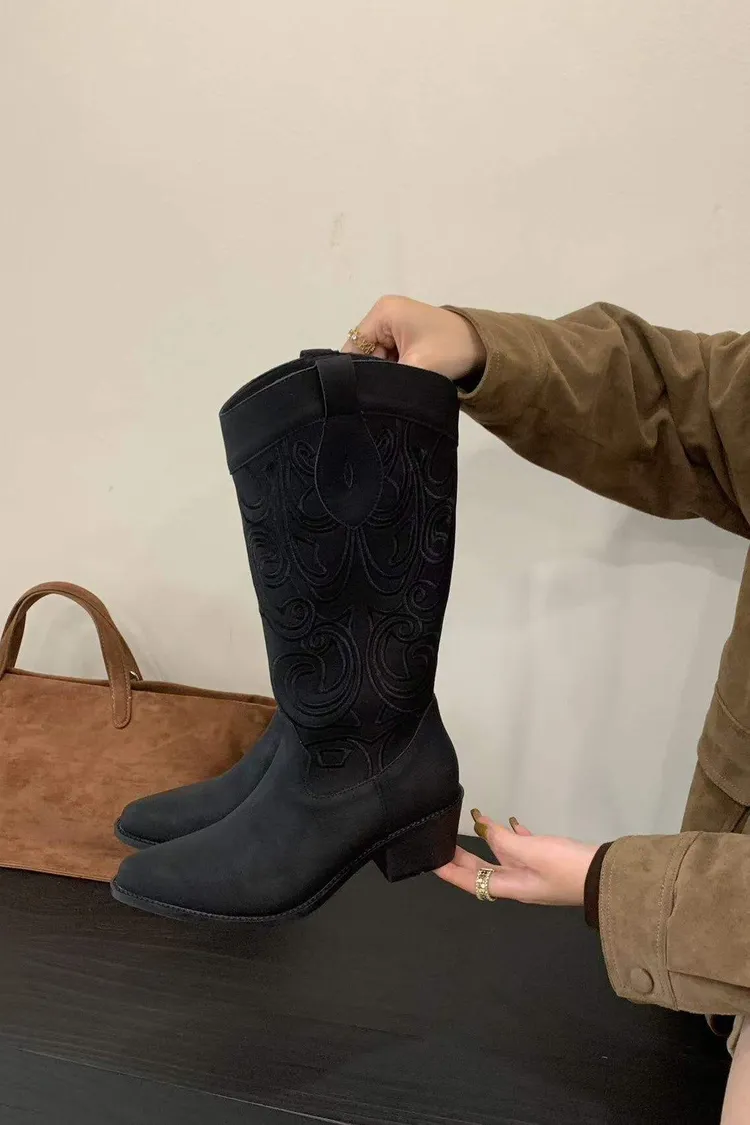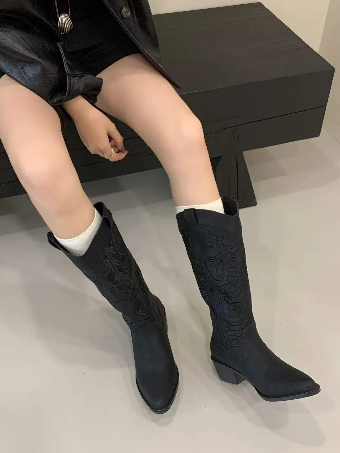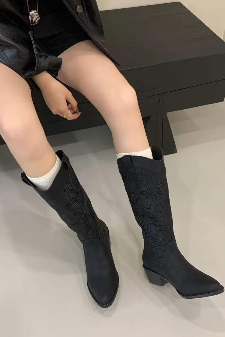 CY476精緻花紋西部牛皮長靴 黑 奶茶 225-250(有半號) 官網價$1440 永恆甜甜價$1390
