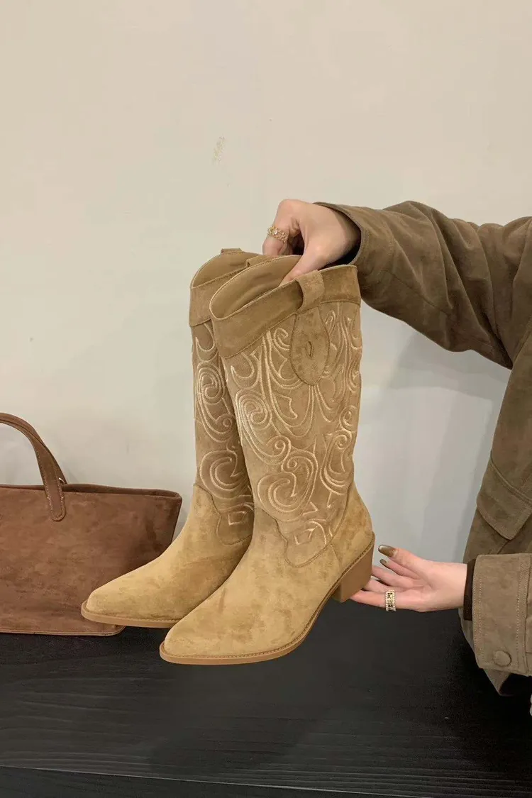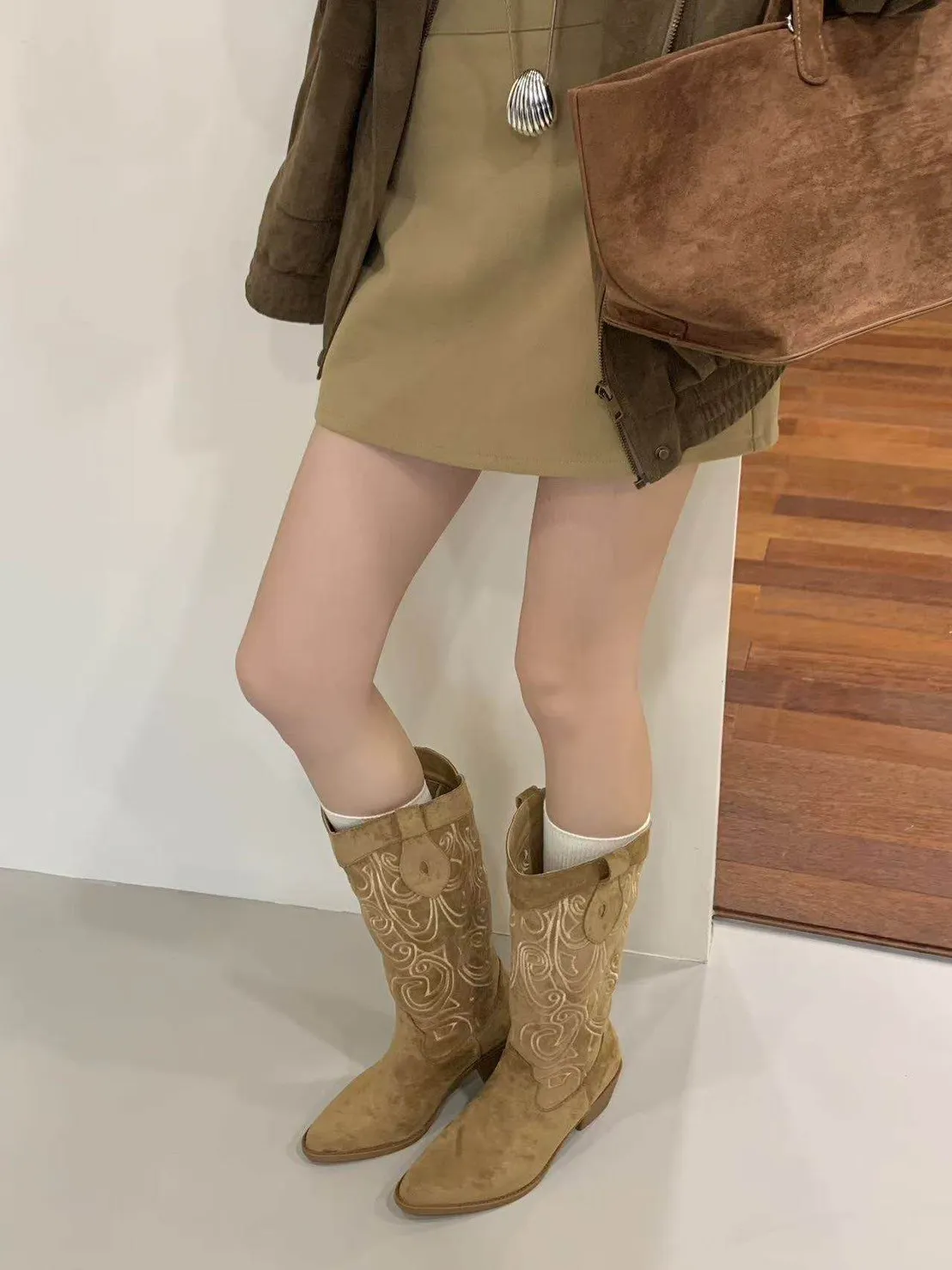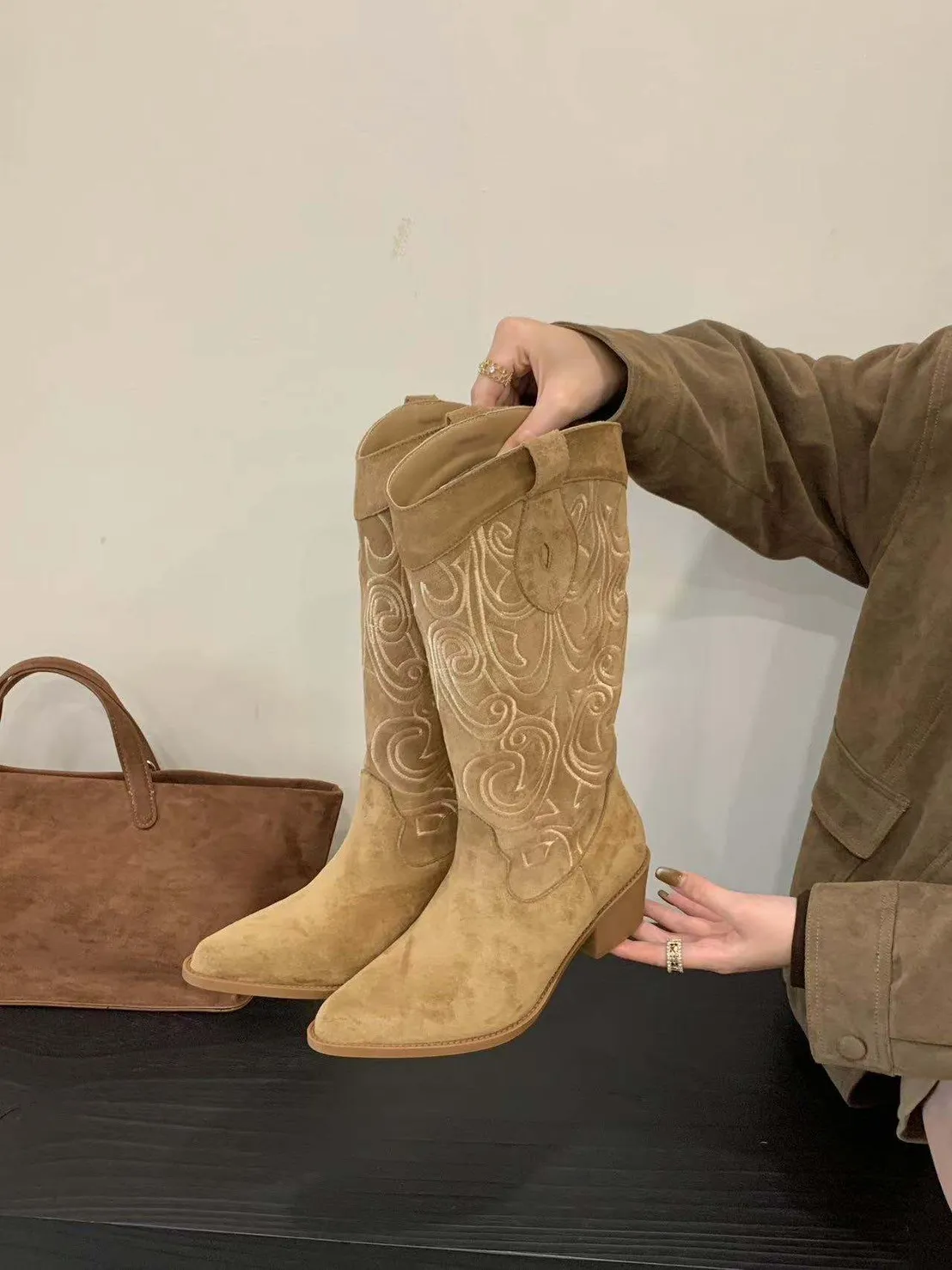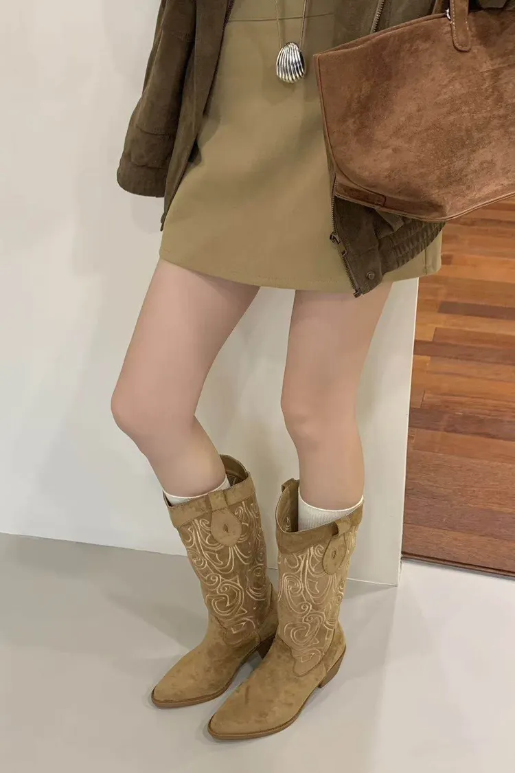 CY476精緻花紋西部牛皮長靴 黑 奶茶 225-250(有半號) 官網價$1440 永恆甜甜價$1390