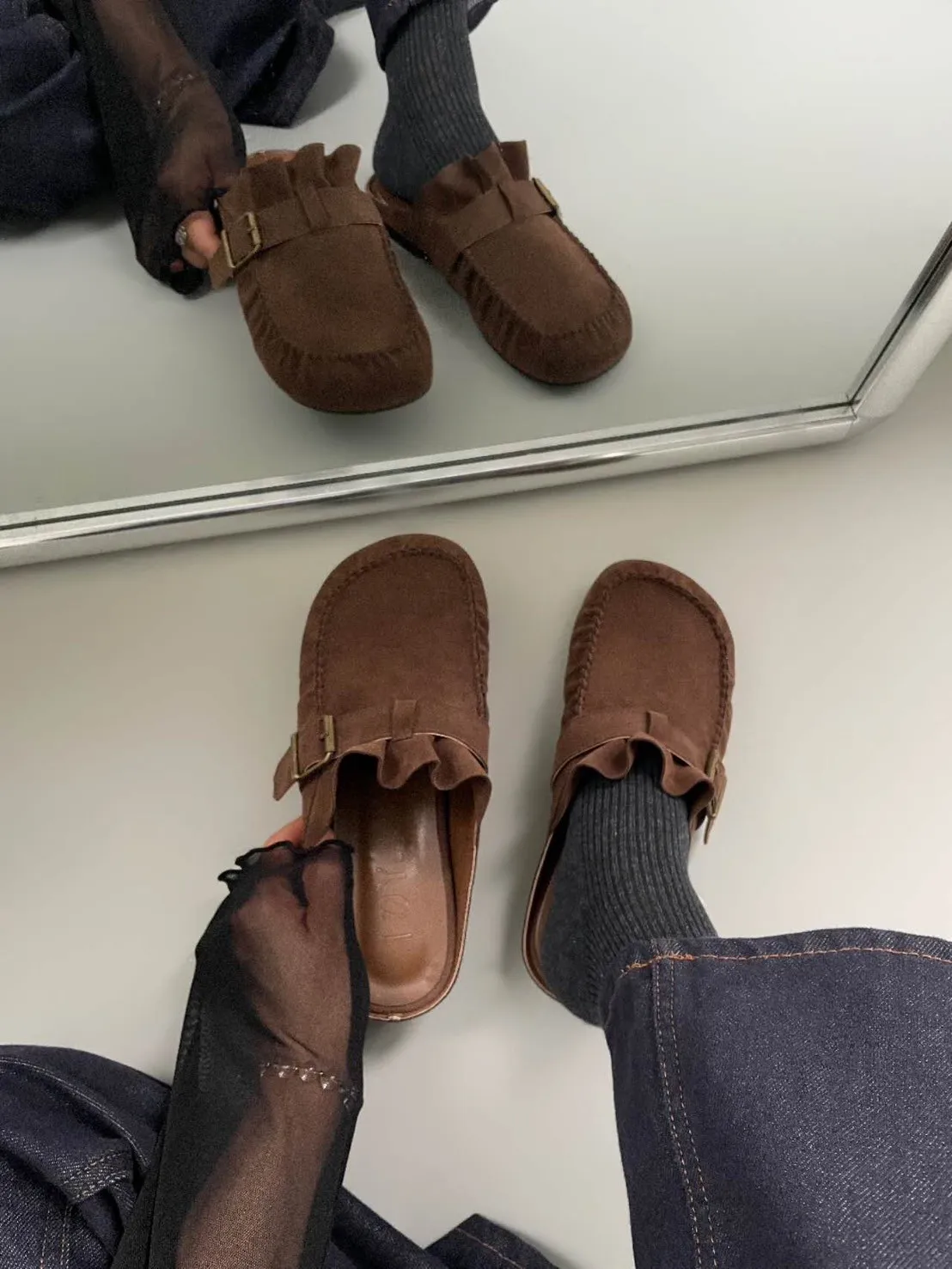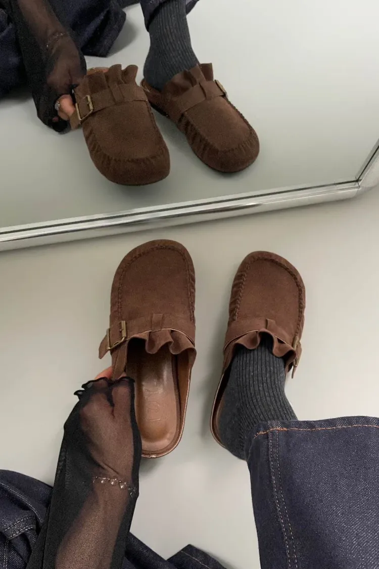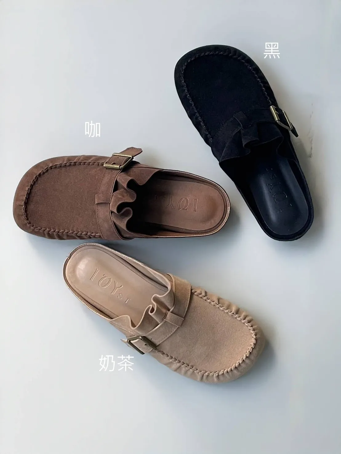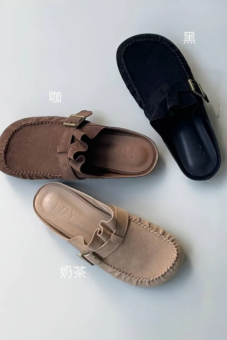 CY480釦環麂皮拖鞋 咖 黑 奶茶 230-250(有半號) 官網價$1030 永恆甜甜價$980