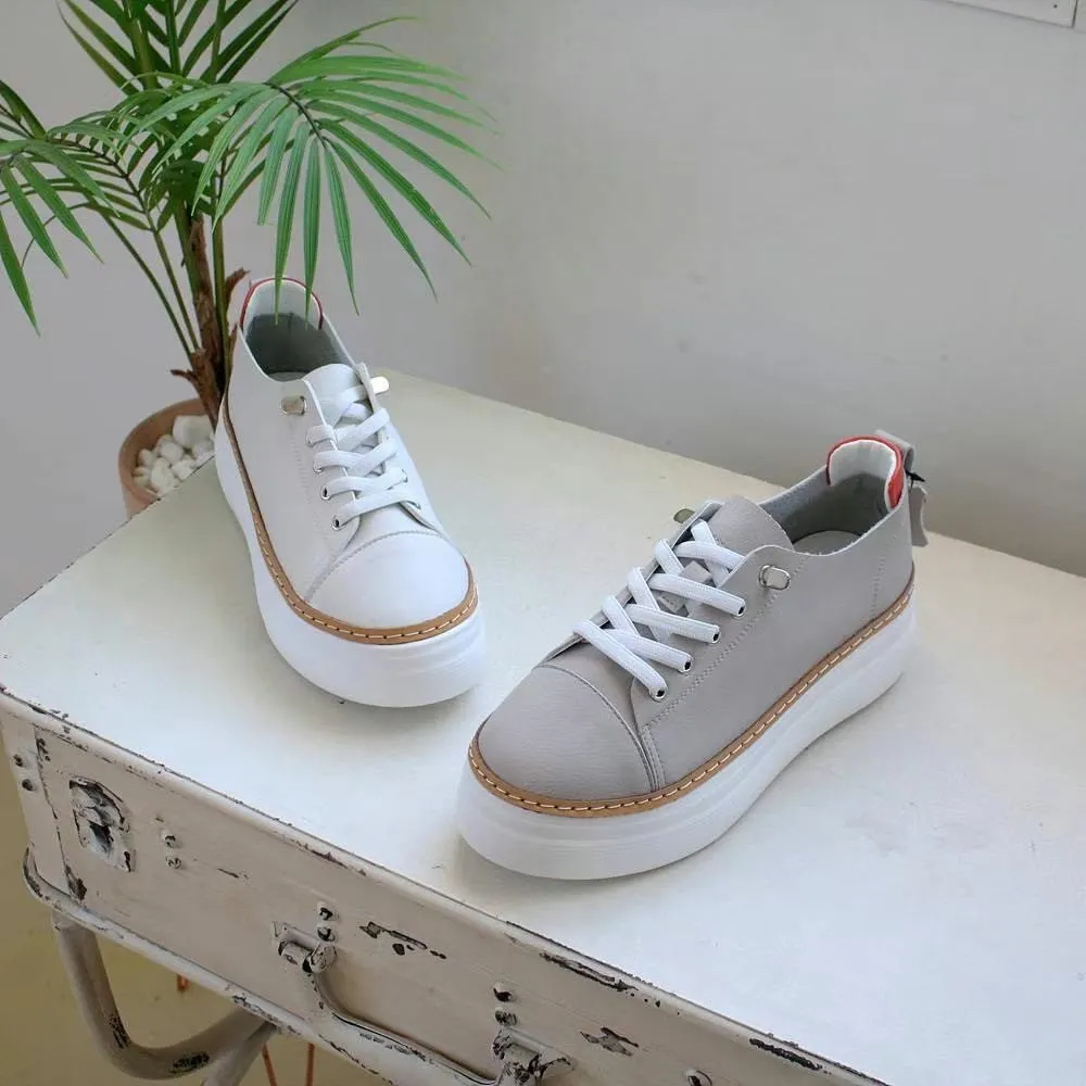 CY486牛皮懶人鞋帶增高休閒鞋 白 灰 230-250(有半號) 官網價$1170 永恆甜甜價$1120