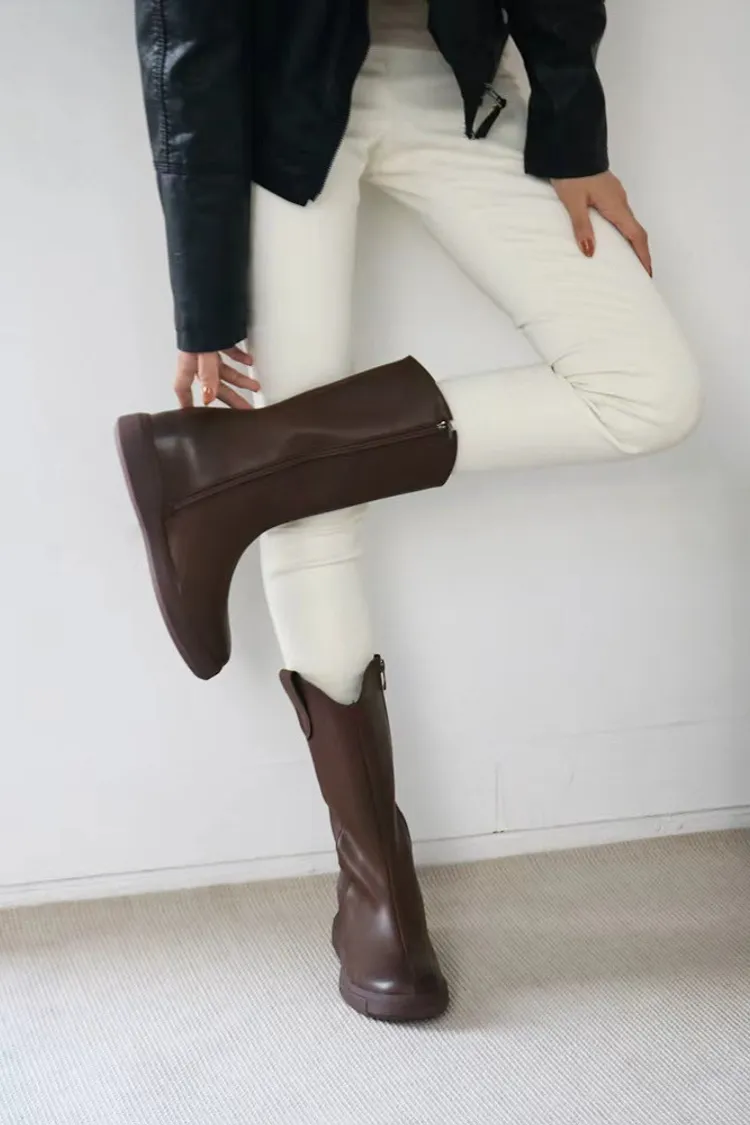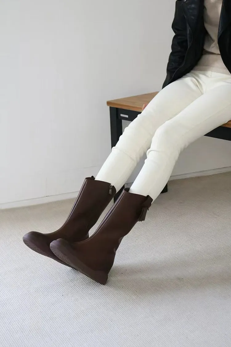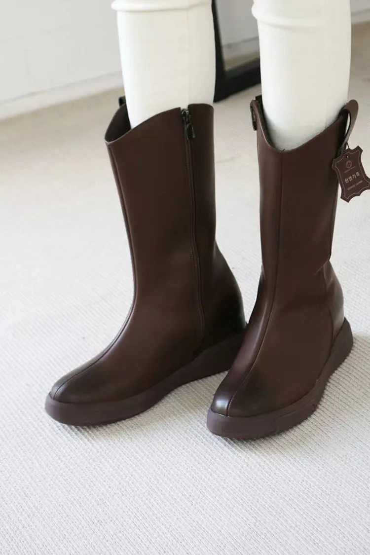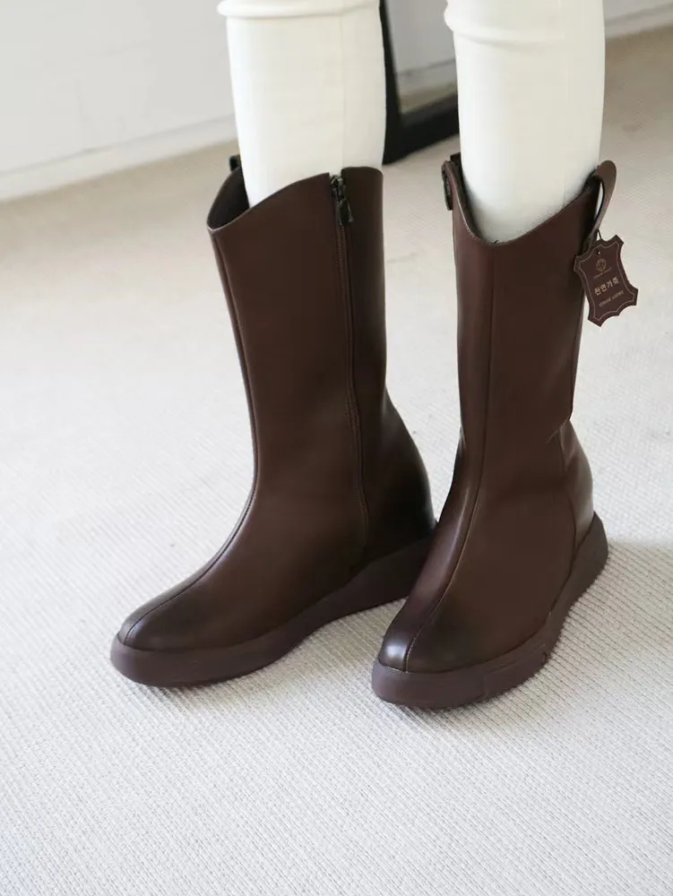CY489牛皮車線中長款靴子 咖 黑 230-250(有半號) 官網價$1530 永恆甜甜價$1480