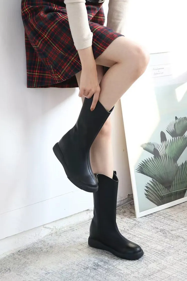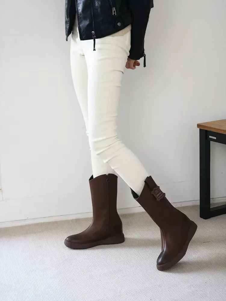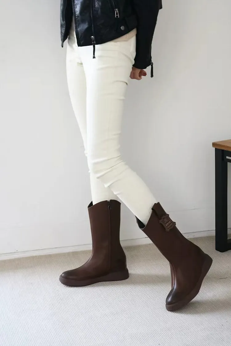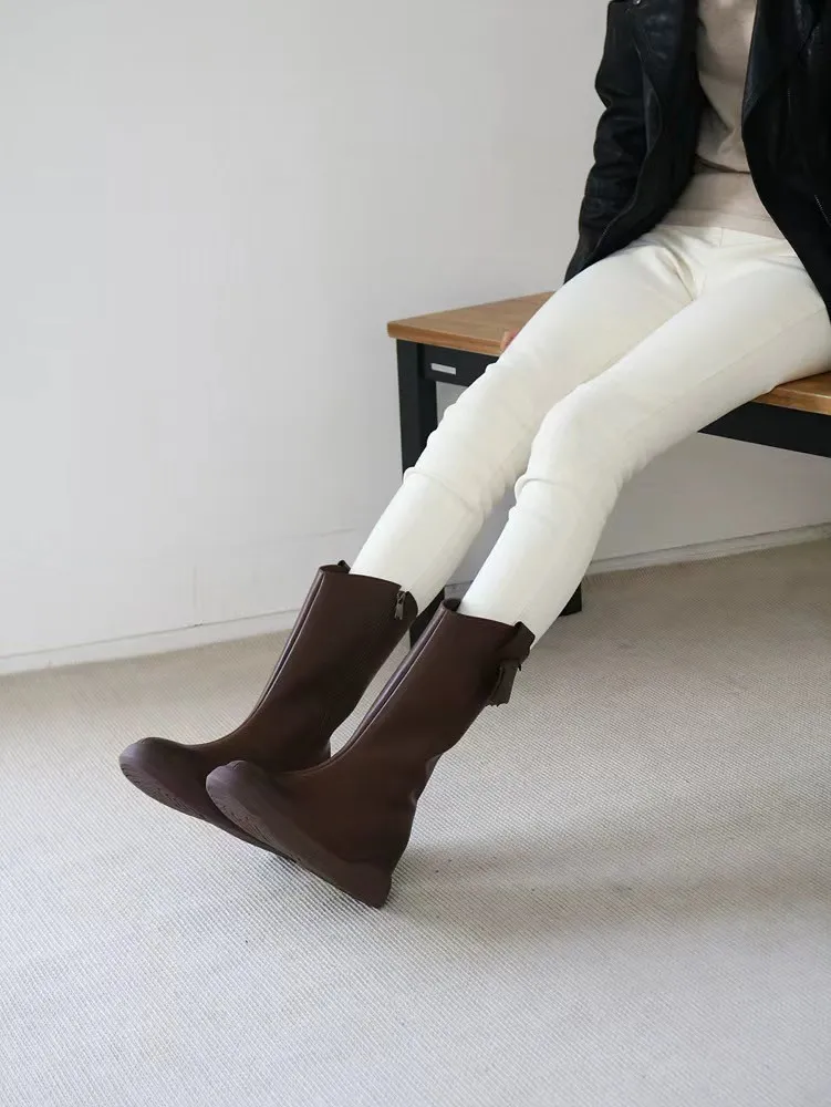 CY489牛皮車線中長款靴子 咖 黑 230-250(有半號) 官網價$1530 永恆甜甜價$1480