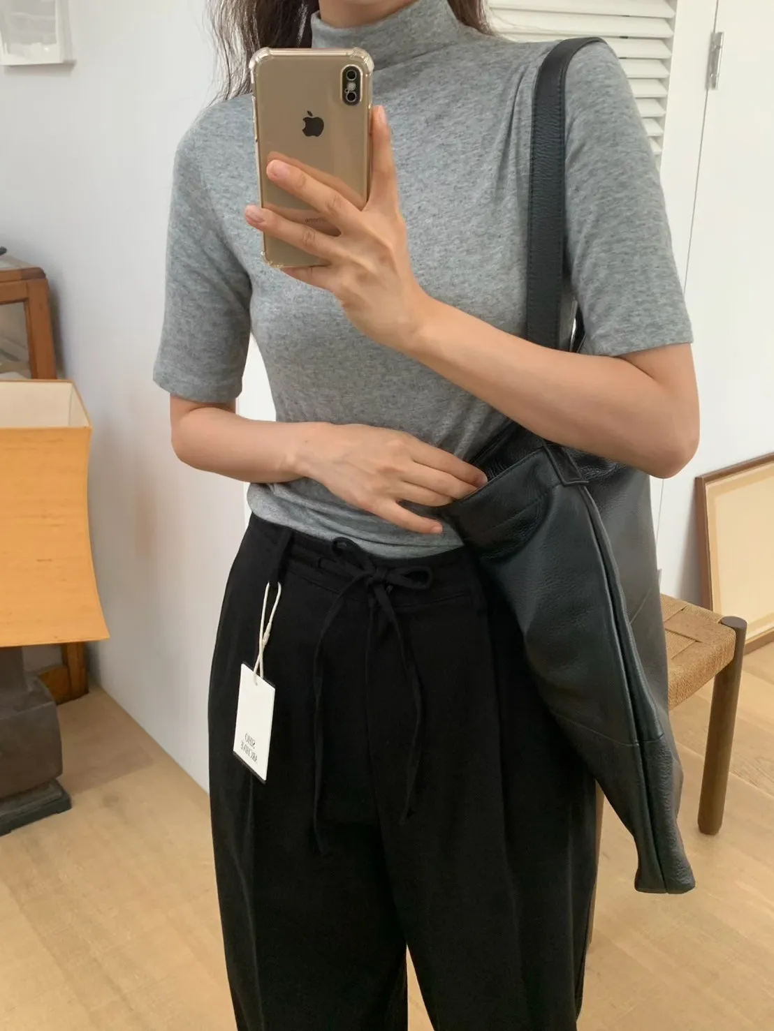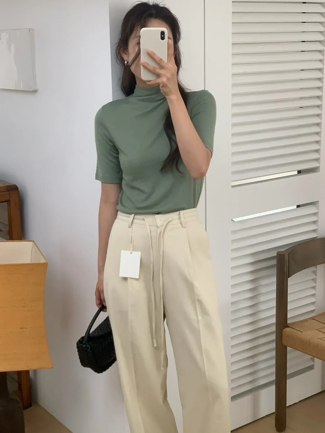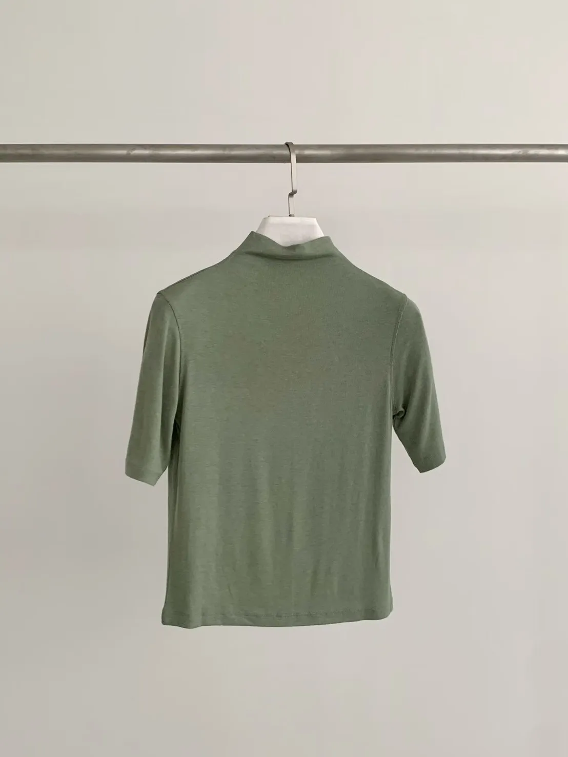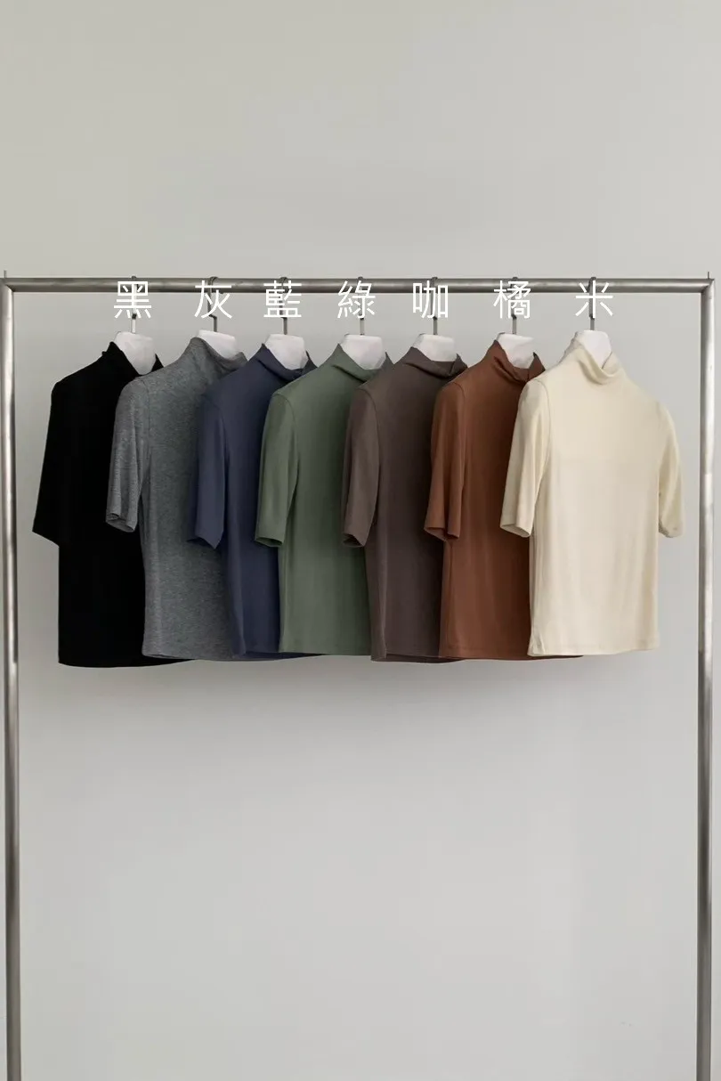 CY508天絲羊毛微領短袖上衣 米 灰 咖 黑 藍 綠 橘 F M 官網價$520 線上價$490