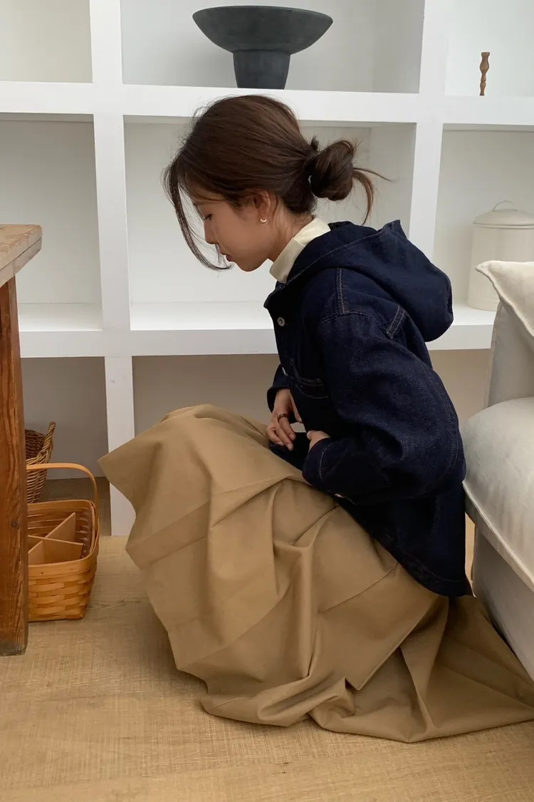 棉+聚酯,傘擺有挺度 有內裡 無口袋 側拉鍊 四季款偏薄厚度