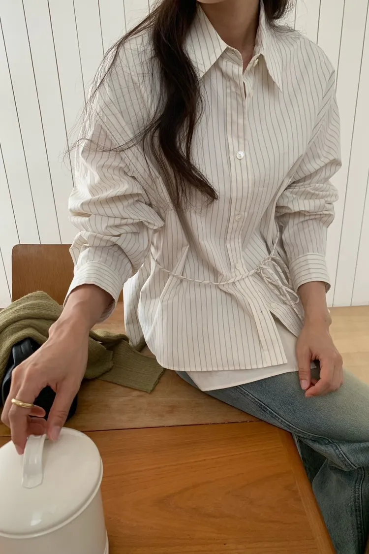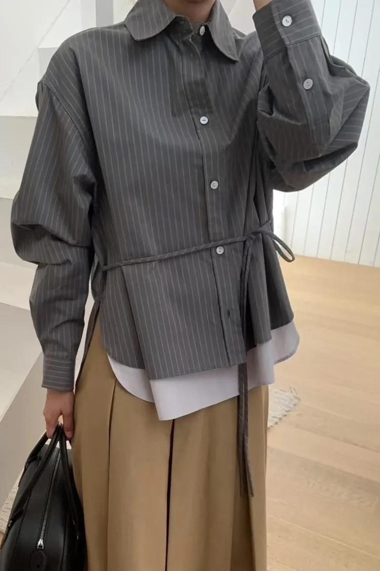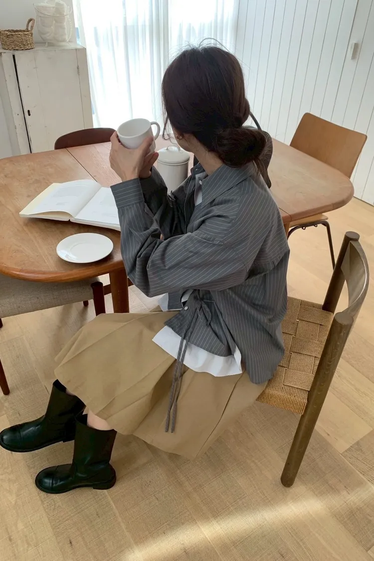 棉 正常厚度 假兩件 腰有綁帶 層次拚色下擺