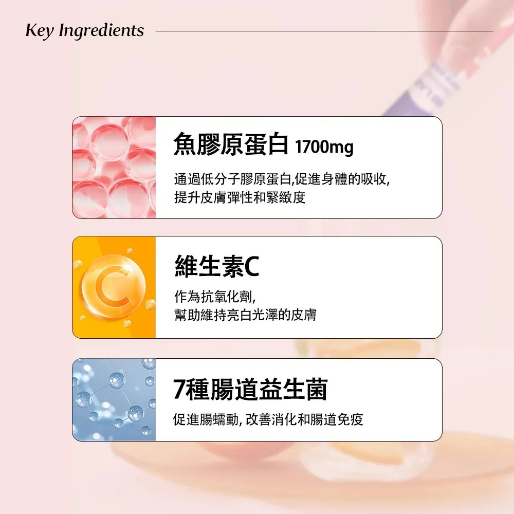 內含成份 : 魚油粹取,含質酸和維生素C,低分子膠原蛋白1700mg