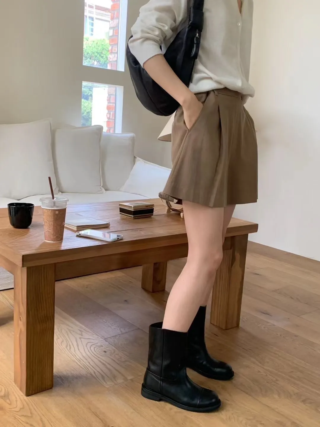 CY637氣質雙腰調節釦短褲 黑 奶茶 官網價$1190 線上價$1160