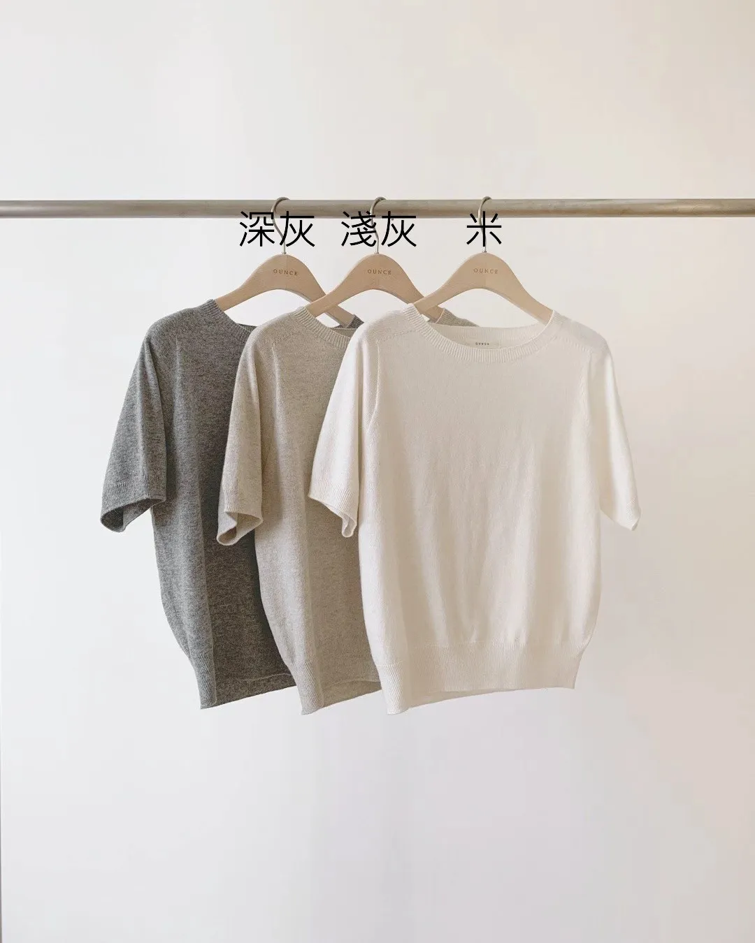 CY647高級三毛短袖上衣 米 淺灰 深灰 官網價$1650 線上價$1620