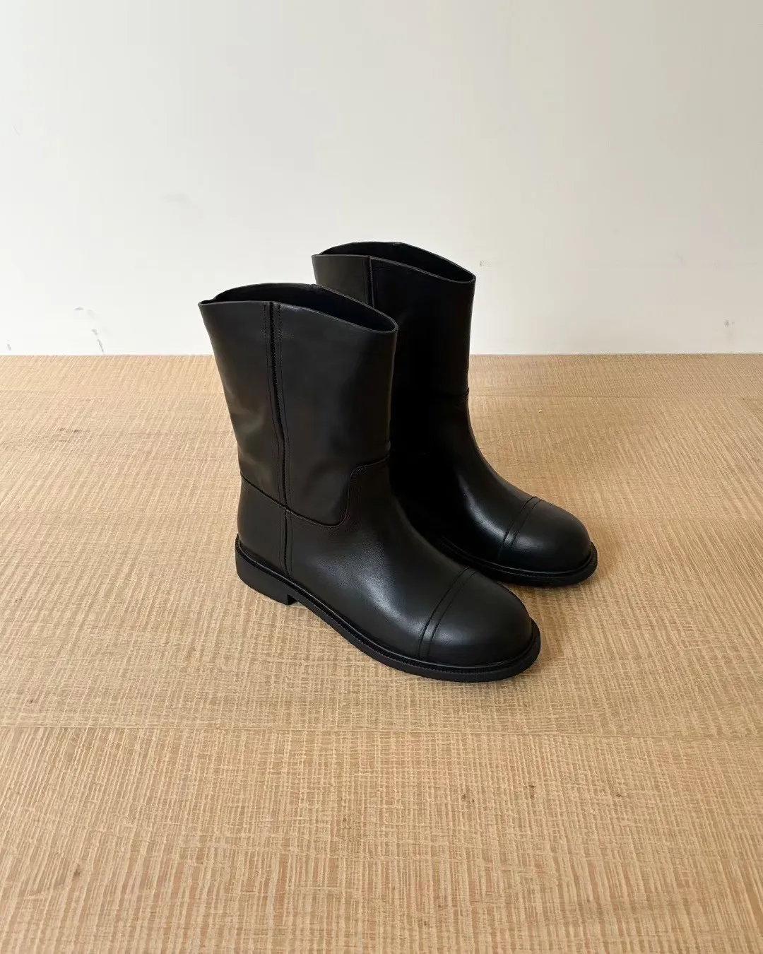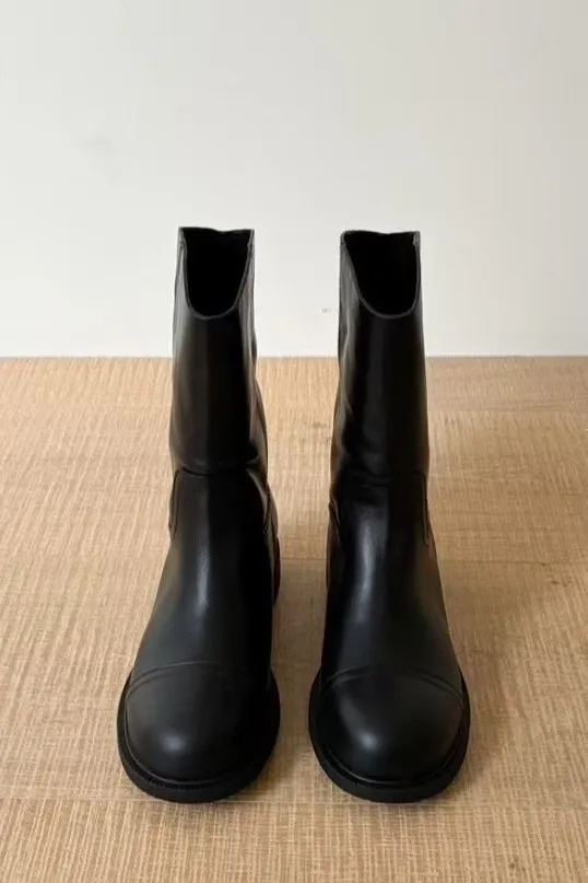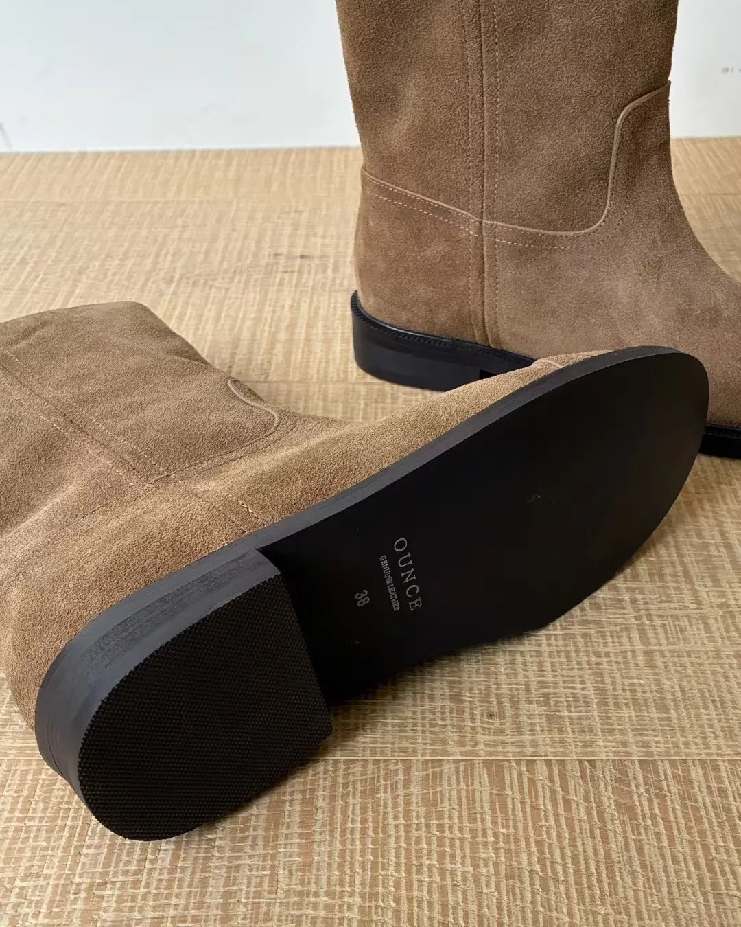 牛皮 鞋面一條橫線 跟高3公分 筒高19 筒圍一圈32