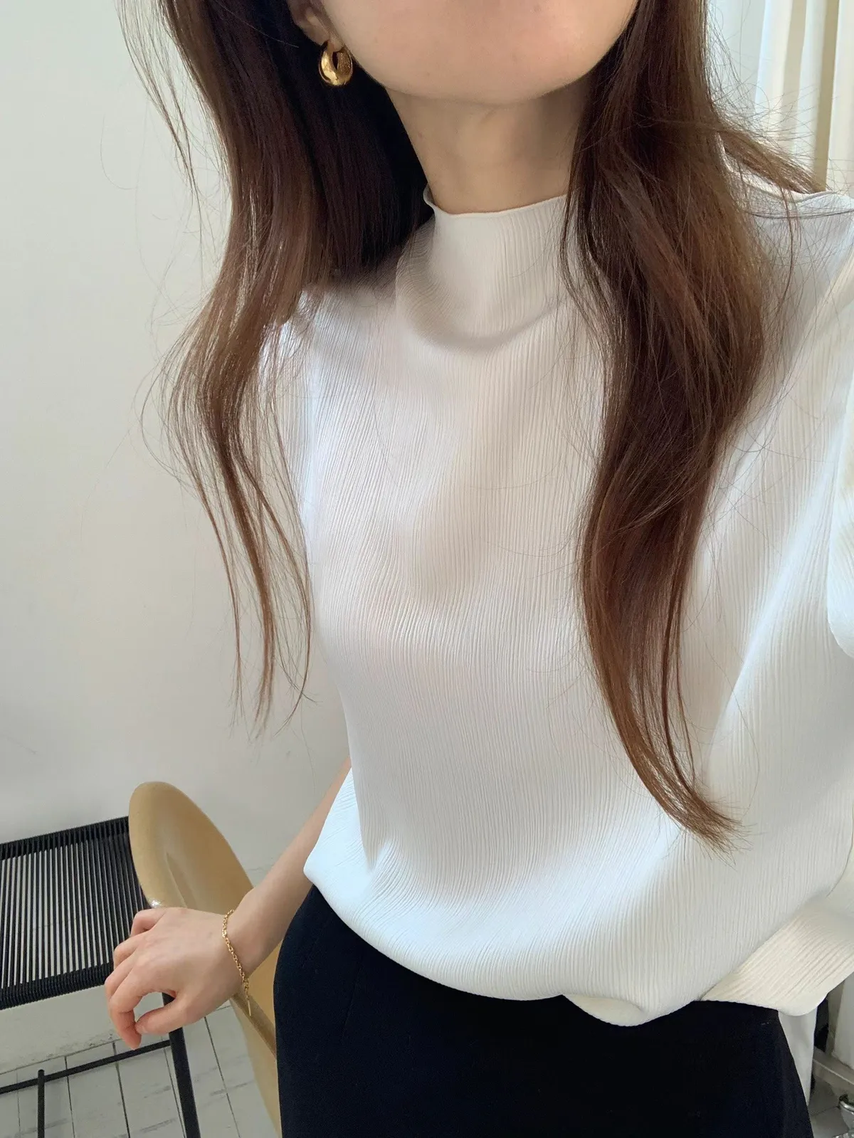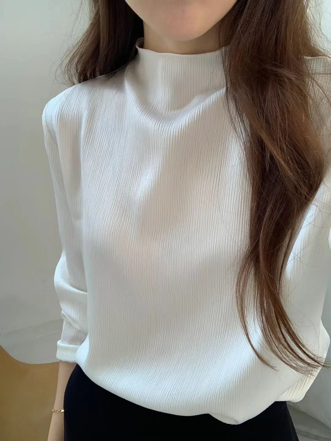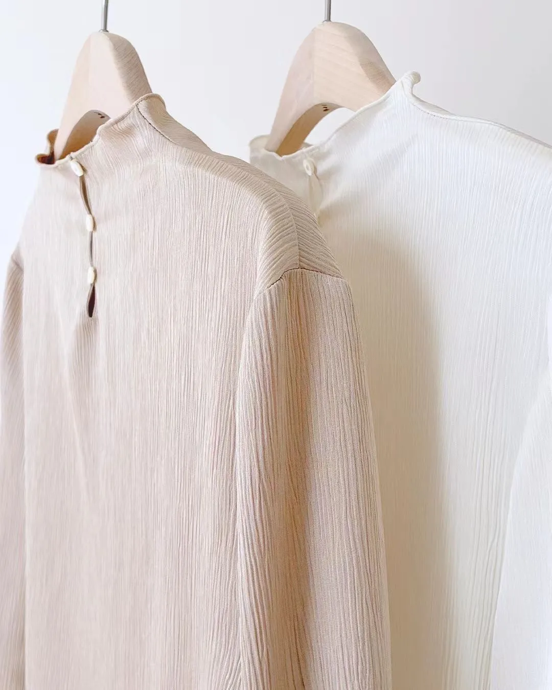 聚酯 高級光澤 後頸三釦 滑面觸感 半高領 微微木耳邊