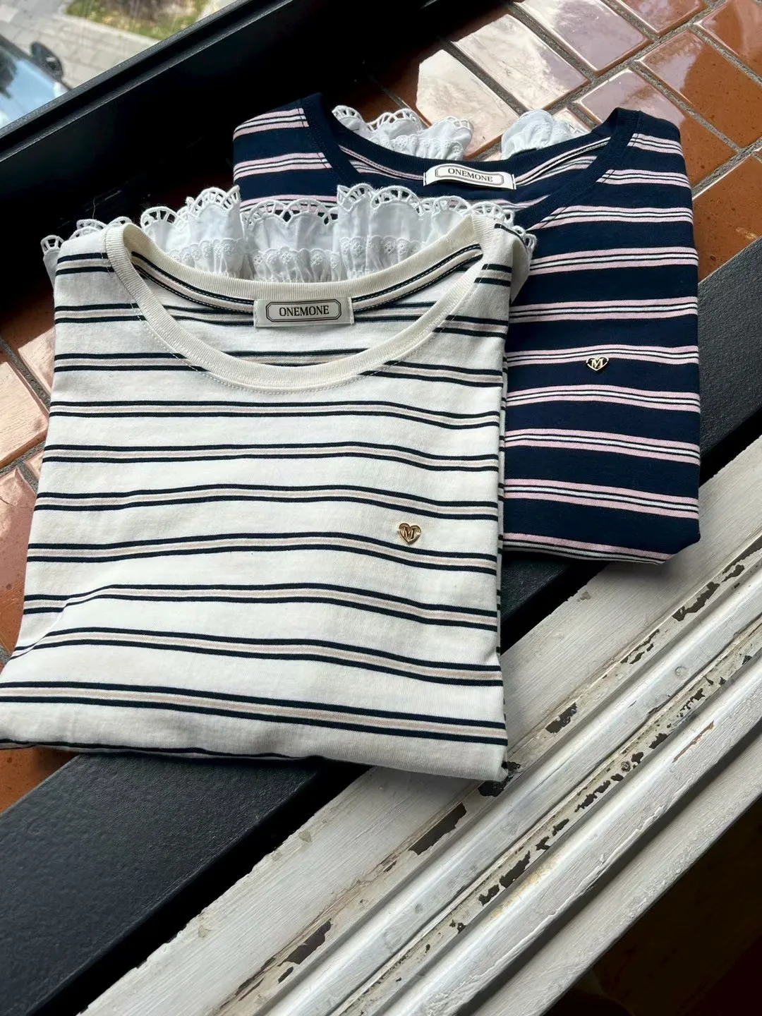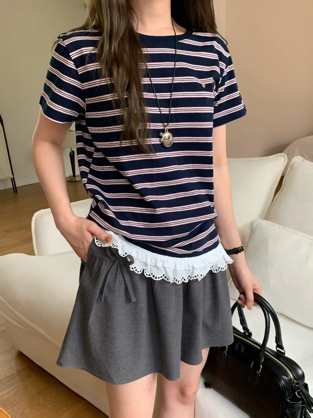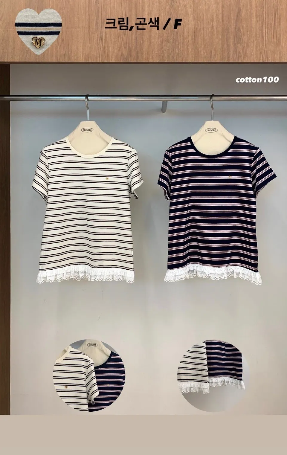 棉,胸前愛心小標 下擺蕾絲 秋天款