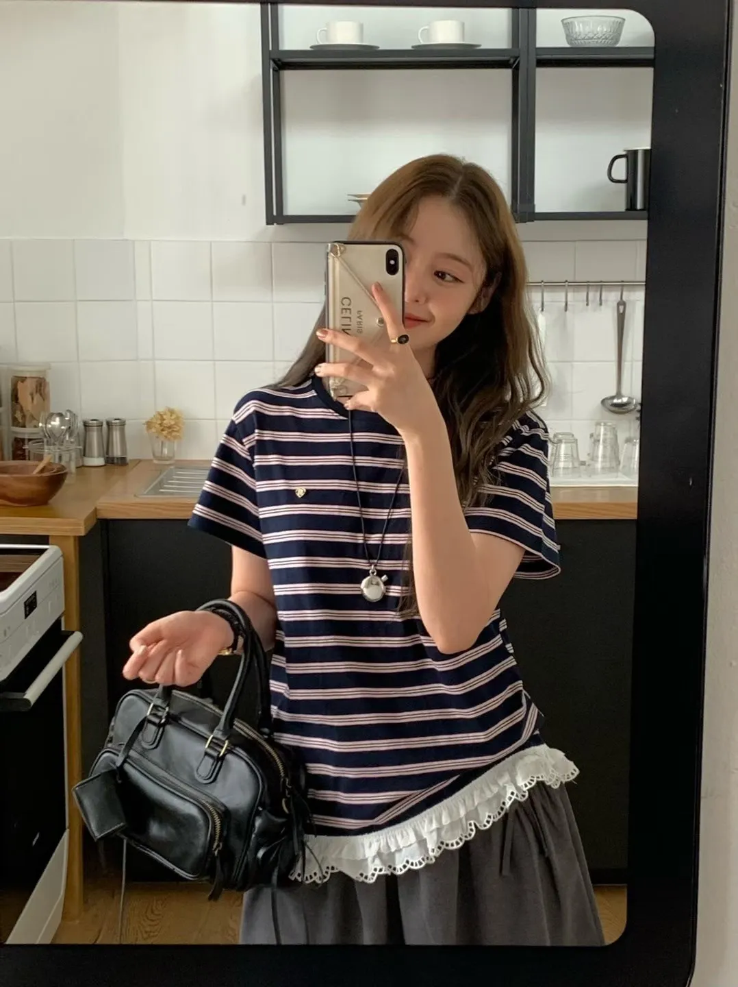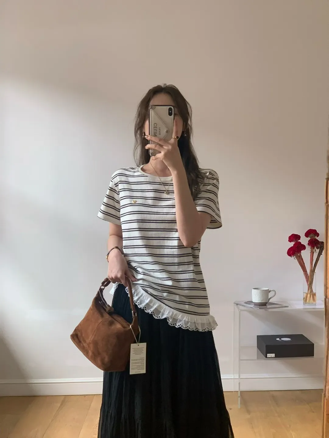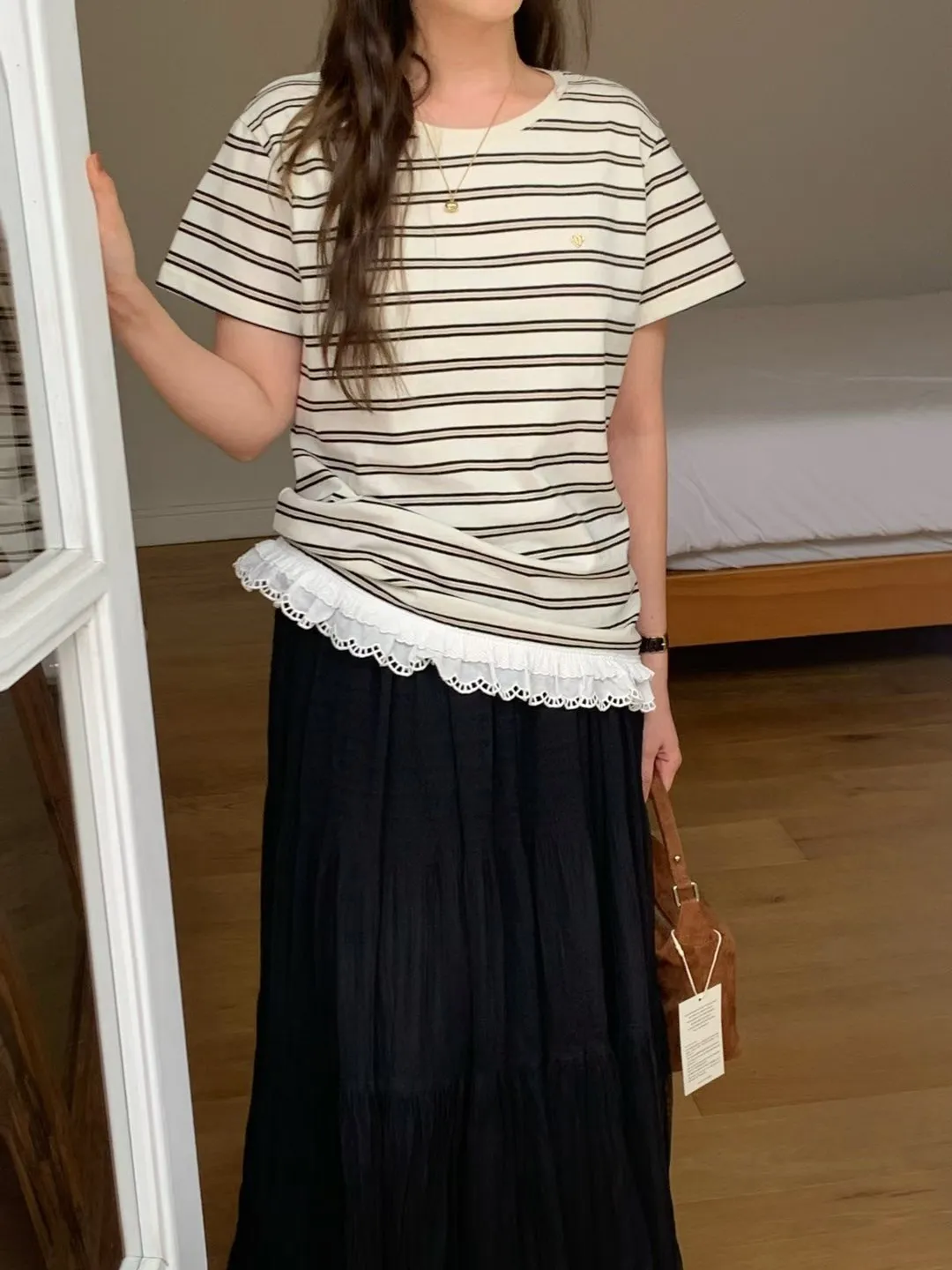 棉,胸前愛心小標 下擺蕾絲 秋天款