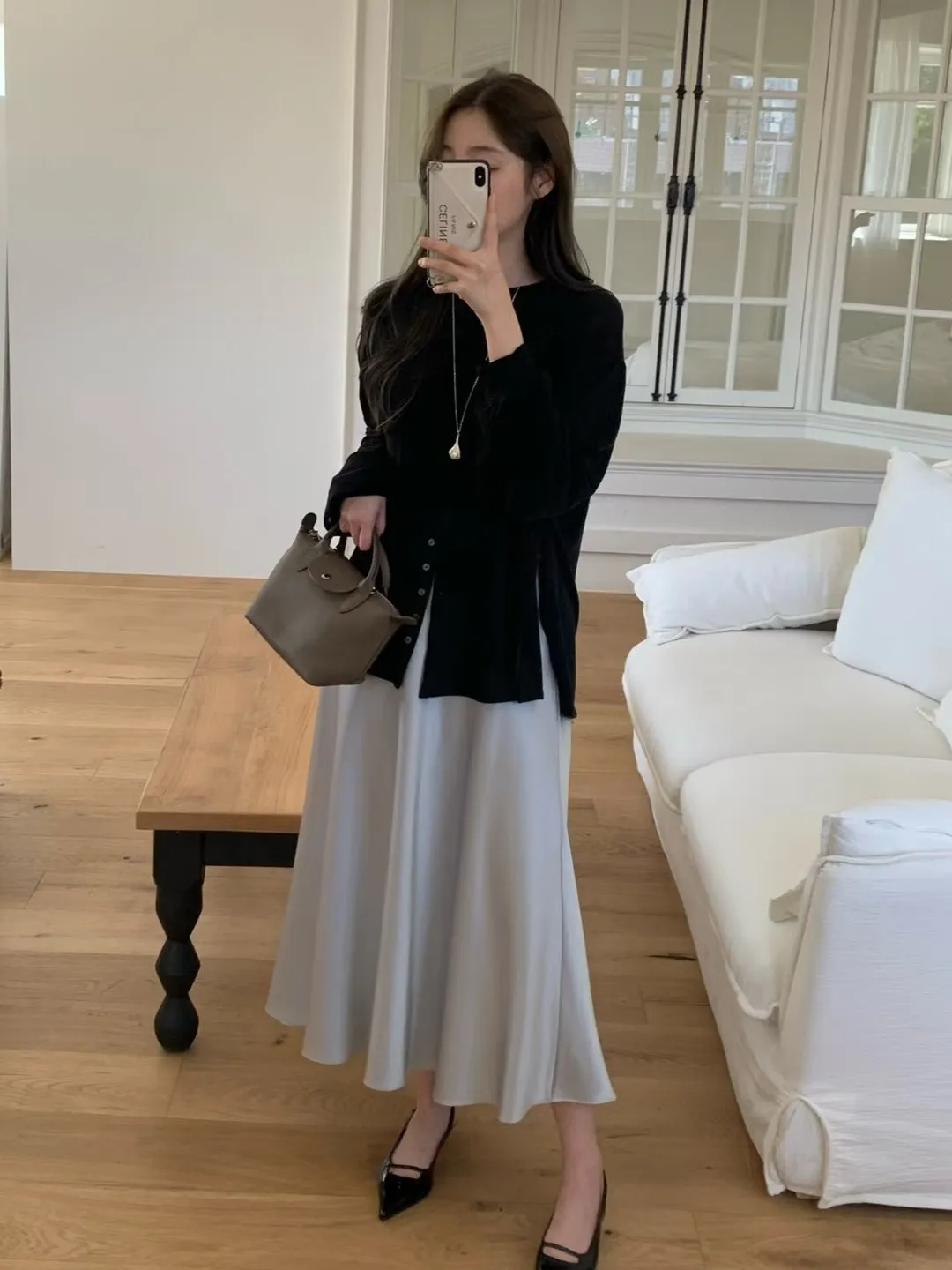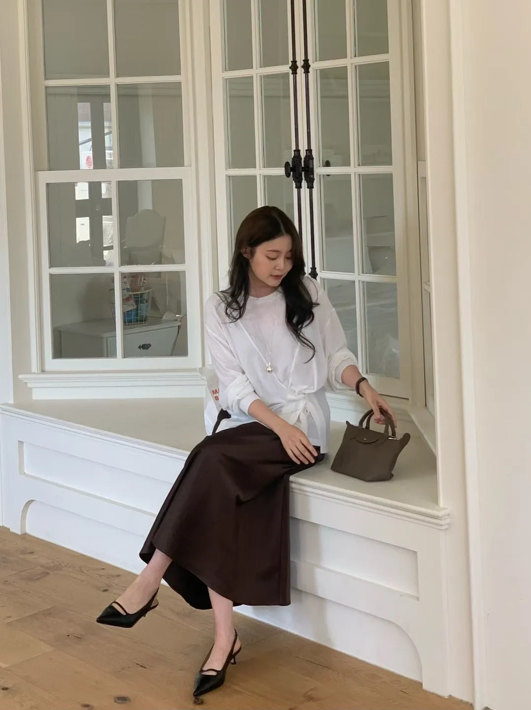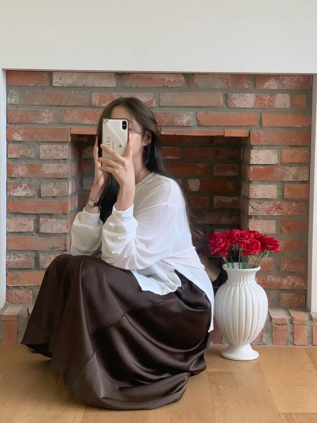聚酯 高級光澤感 腰有鬆緊 垂墜傘擺 側拉鍊 後腰鬆緊