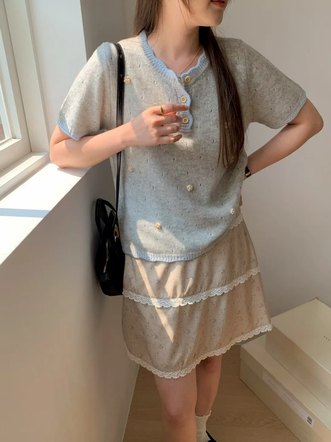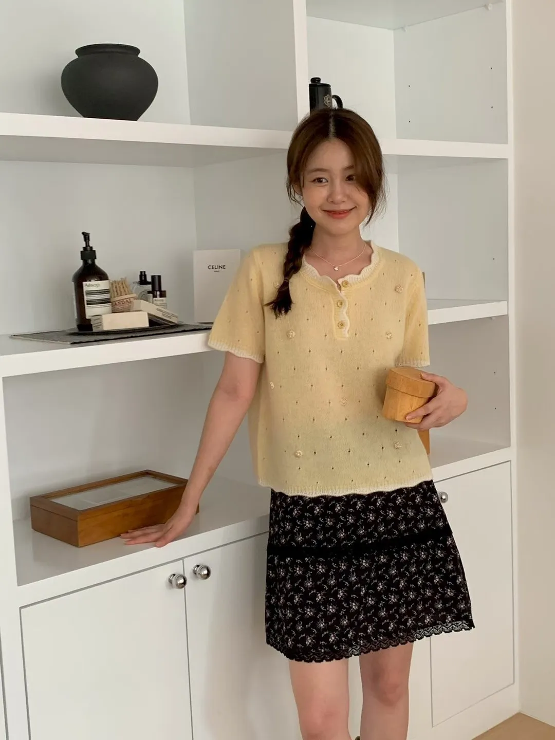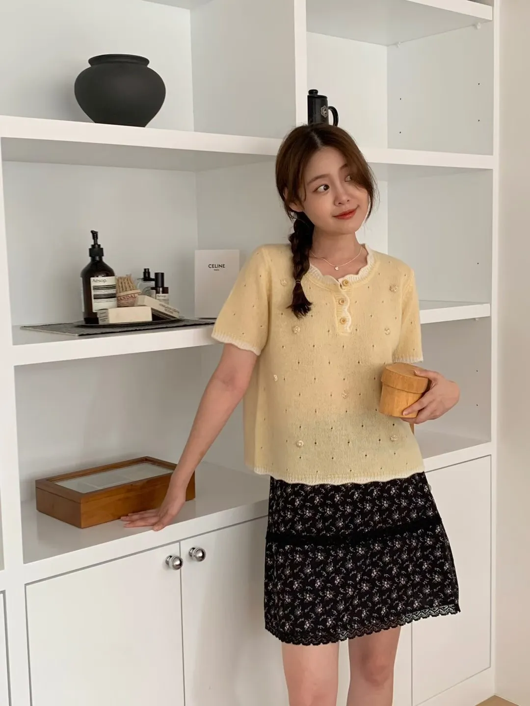 羊毛100%,滾邊配色 可愛釦子 立體小花