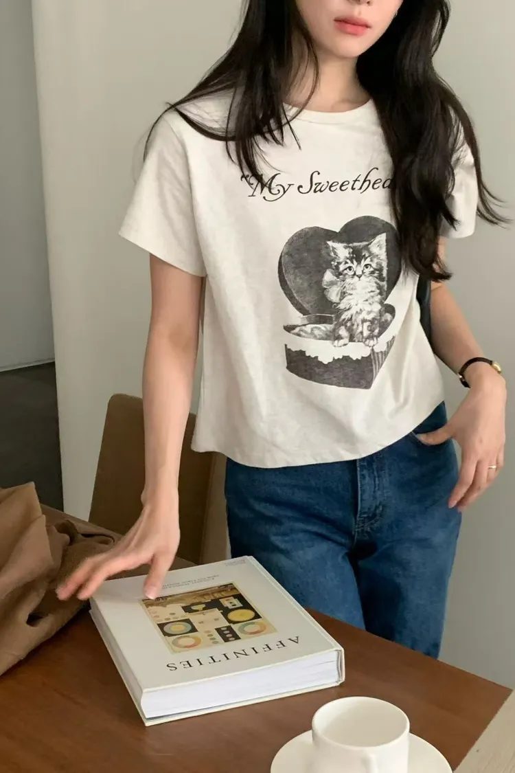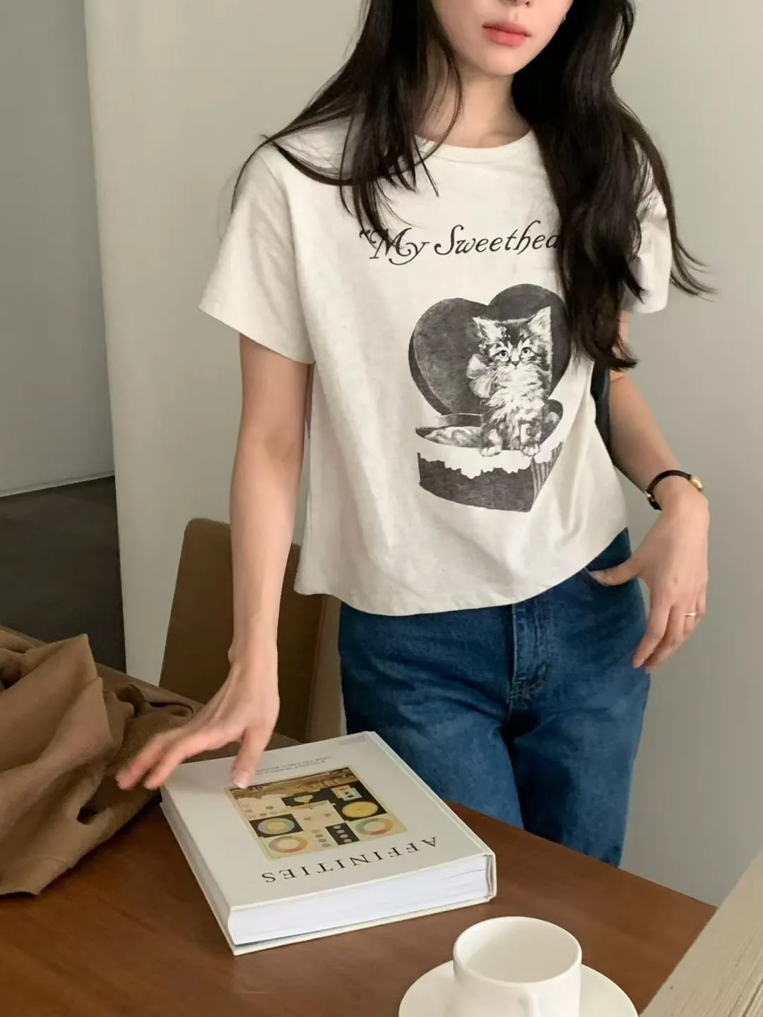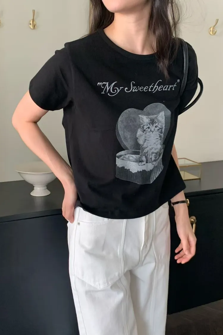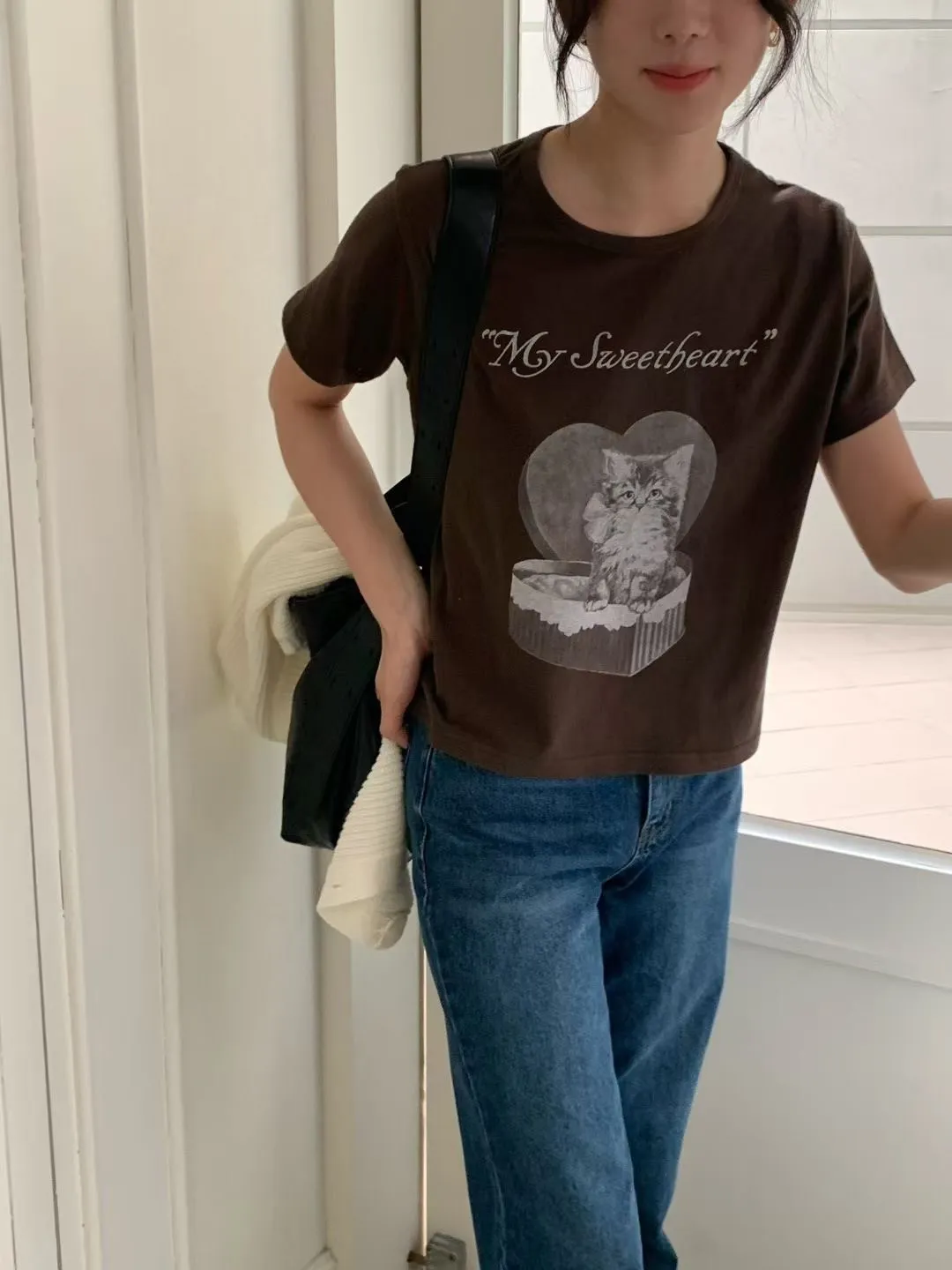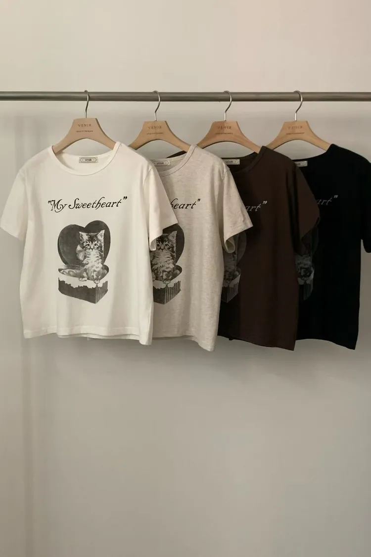 CY741加開款小貓愛心Tshirt(venir) 米 燕麥 咖 黑 台灣最甜價$560 棉,肩寬40胸寬50-62臂寬21袖長20全長52 此商品無直播,多人許願,直接圖片代購 以下顏色,米>燕麥>咖>黑