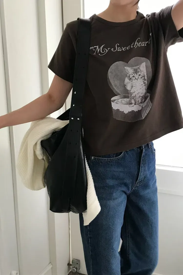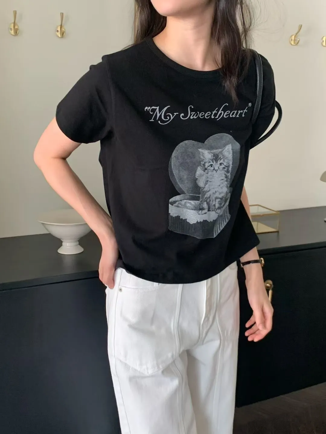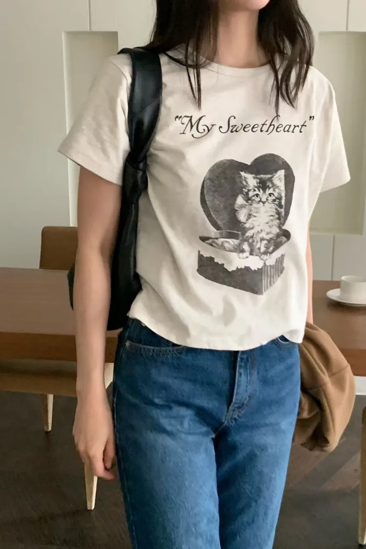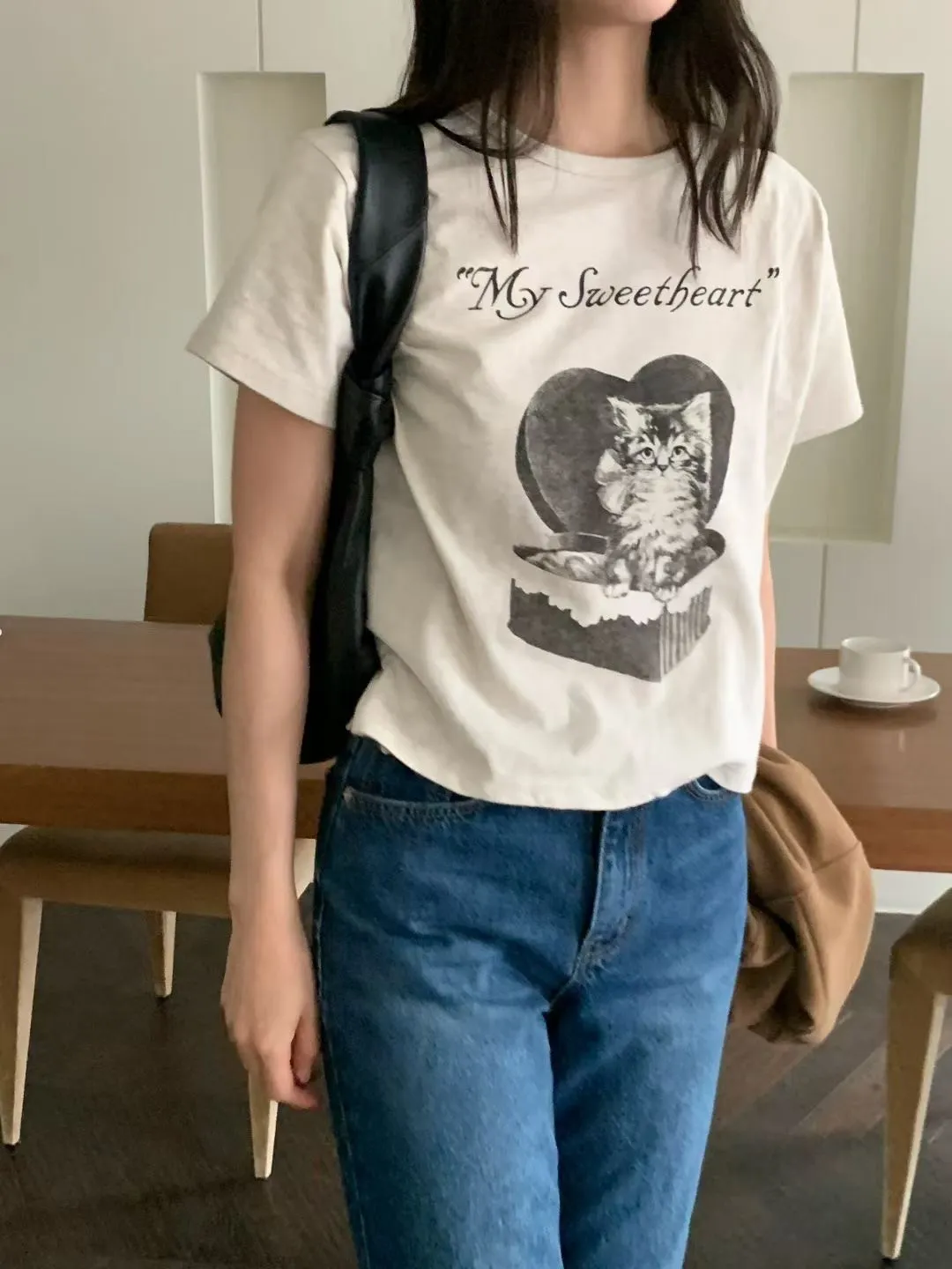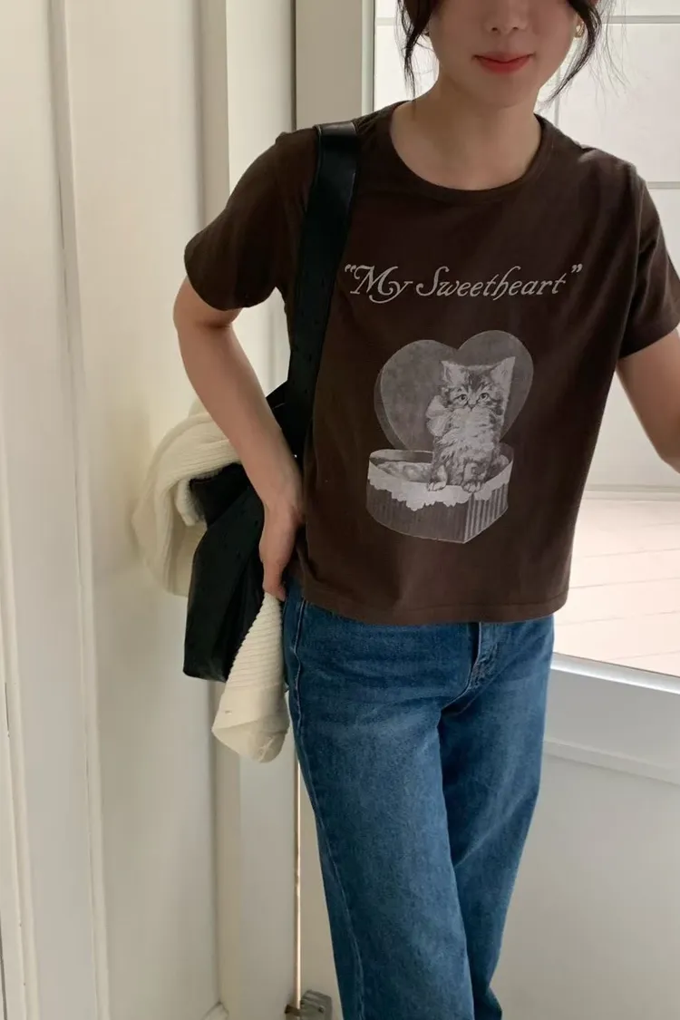 CY741加開款小貓愛心Tshirt(venir) 米 燕麥 咖 黑 台灣最甜價$560 棉,肩寬40胸寬50-62臂寬21袖長20全長52 此商品無直播,多人許願,直接圖片代購 以下顏色,米>燕麥>咖>黑