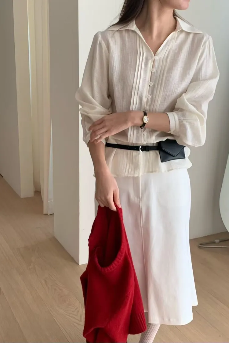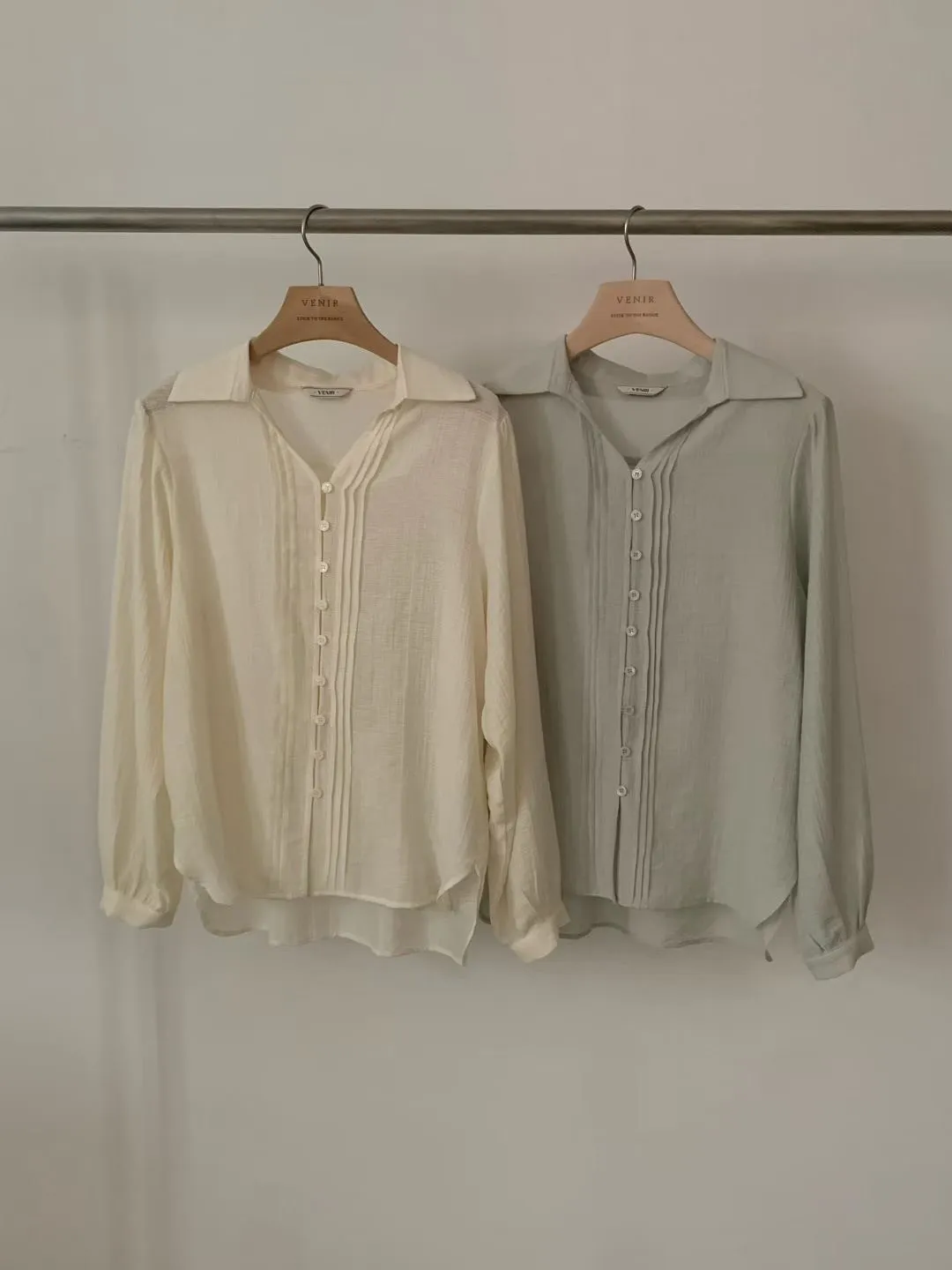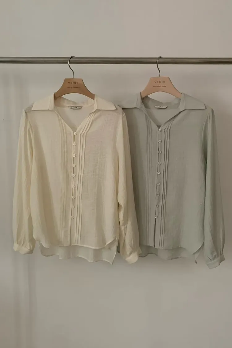 CY746加開款琴弦開襟襯衫(venir) 米 綠 台灣最甜價$1190