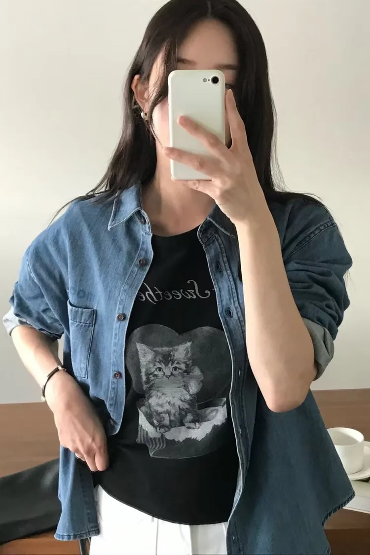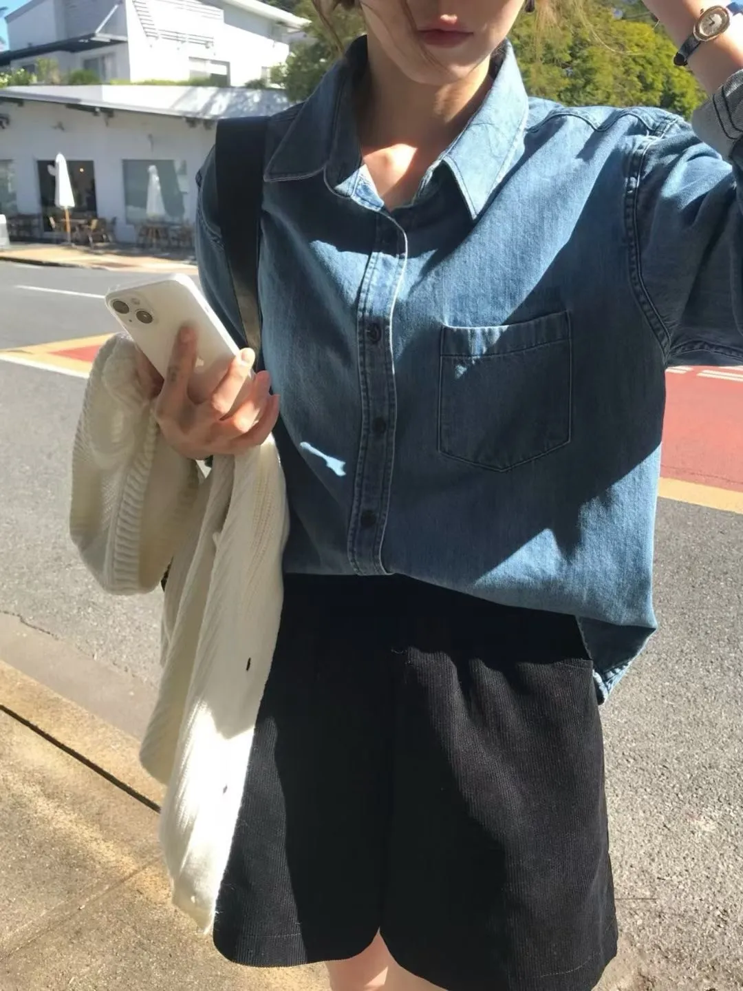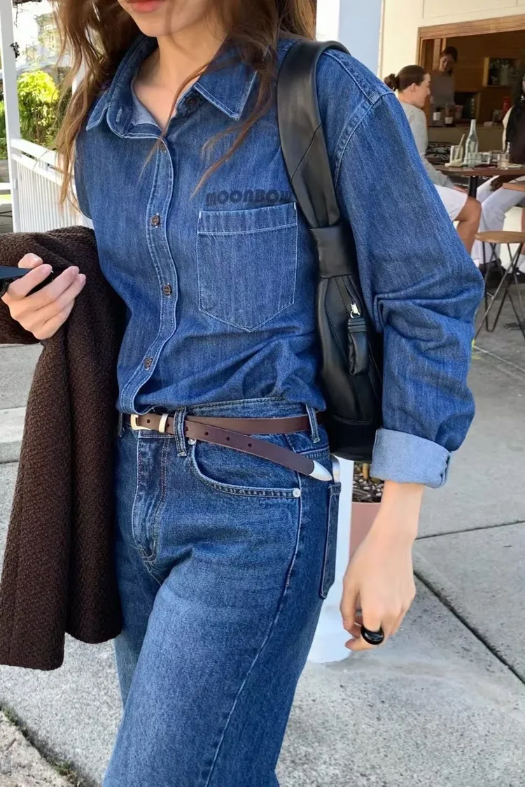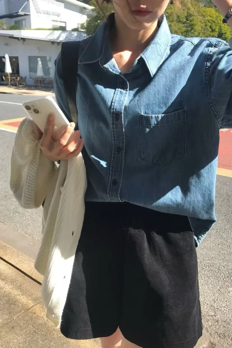 CY747加開款百搭丹寧襯衫(venir) 淺藍 深藍 台灣最甜價$1150 棉,肩寬46胸寬58臂寬23袖長62全長62 此商品無直播,多人許願,直接圖片代購以下為淺藍穿搭 以下為深藍穿搭 以下顏色,淺藍>深藍