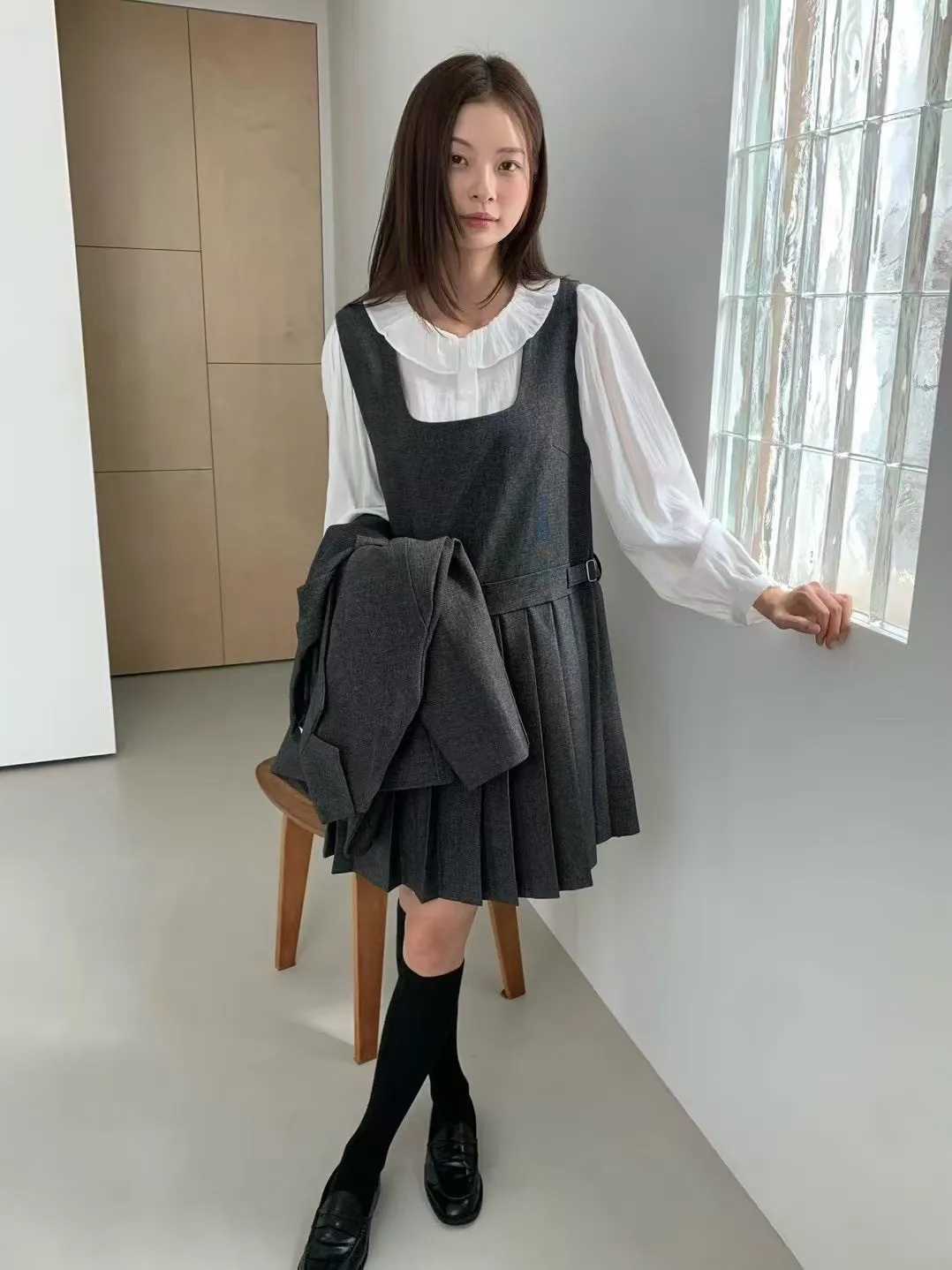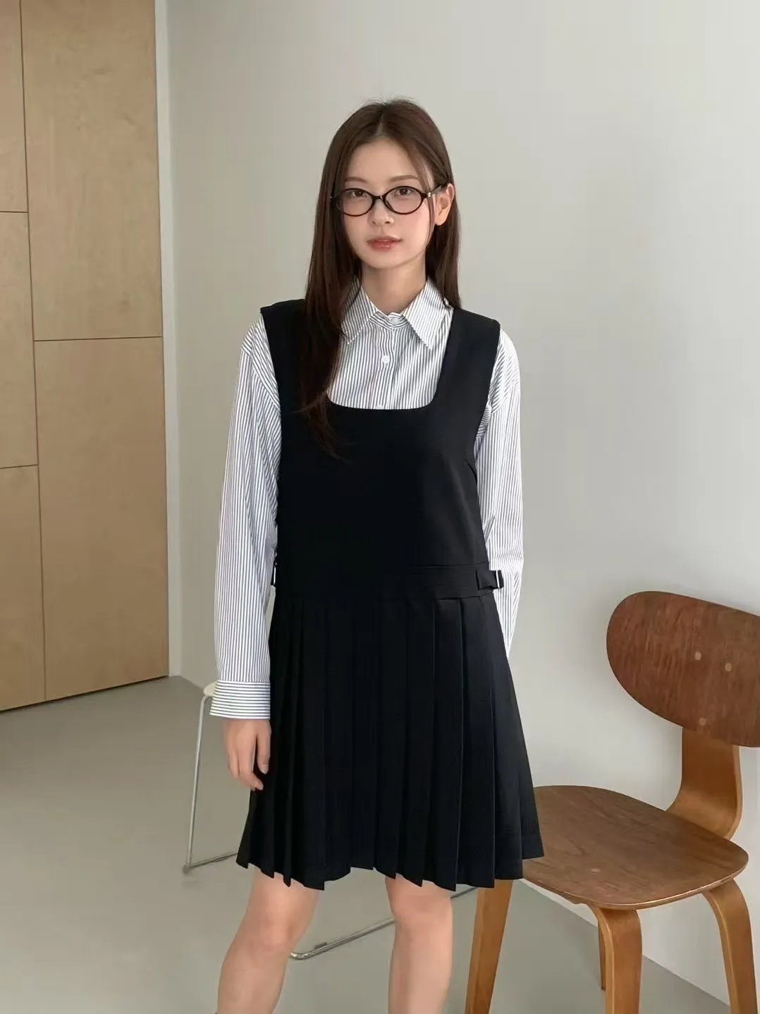CY754加開款百褶裙無袖洋裝(anou) 灰 黑 台灣最甜價$1890