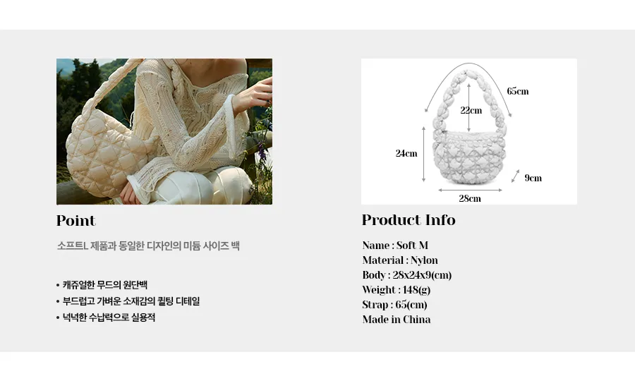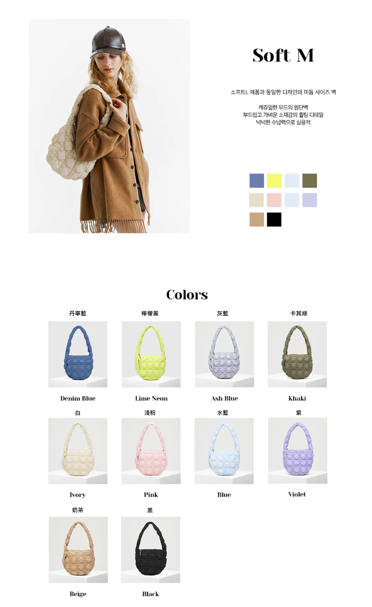 Carlyn002特價經典款雲朵包M號 白 黑 紫 水藍 奶茶 灰藍 淺粉 卡其綠 檸檬黃 丹寧藍耳熟能詳的韓國雲朵包Carlyn☁️✨小編來幫大家上架啦!!在韓國紅到不行,蔓延到整個世界大小又很能裝,非常實用最大特點是很輕盈👍🏻重量只有148g唷此款有分M號跟L號這裡是M號的賣場哦~ 以下顏色,丹寧藍色 以下顏色,檸檬黃色 以下灰藍色穿搭👇🏻 以下顏色,卡其綠色 以下白色穿搭👇🏻 以下顏色,淺粉色 以下水藍色穿搭👇🏻 以下顏色,紫色 以下顏色,奶茶色 以下顏色,黑色 以下顏色如圖所示