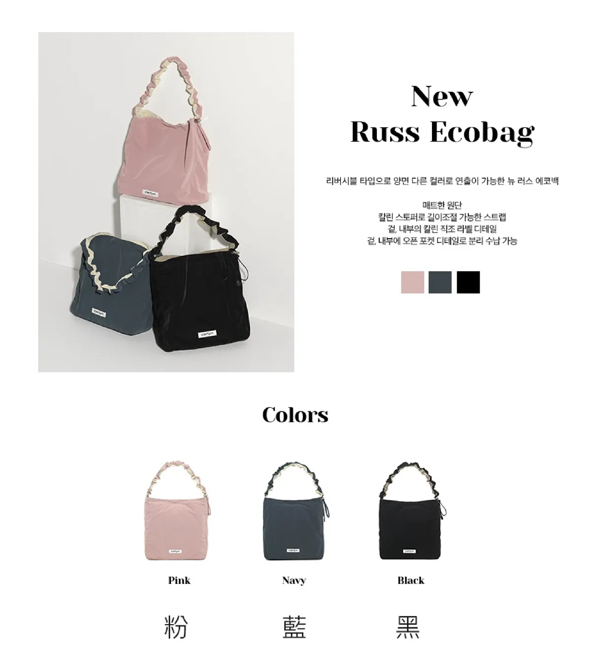 Carlyn007背帶設計正反兩用抽繩大容量通勤包 粉 藍 黑